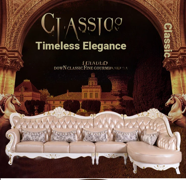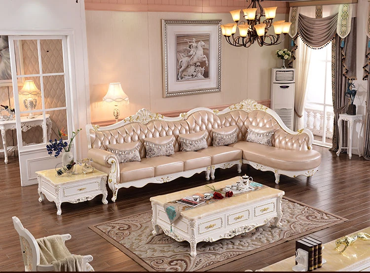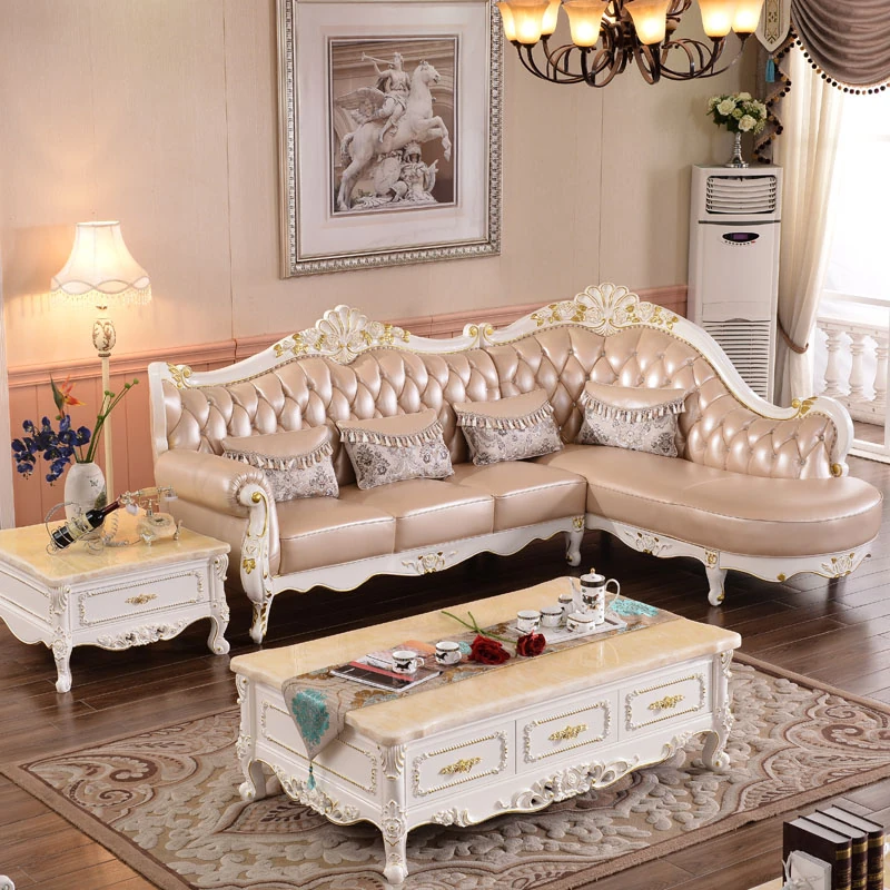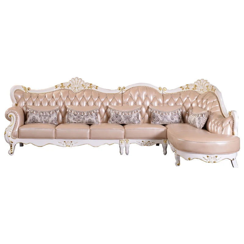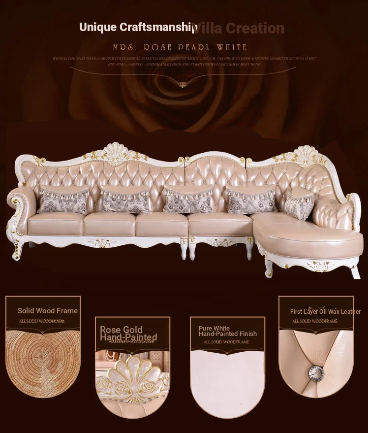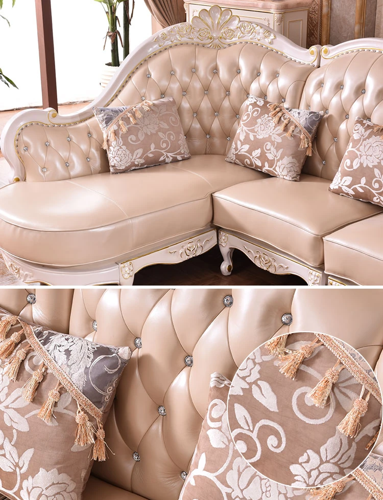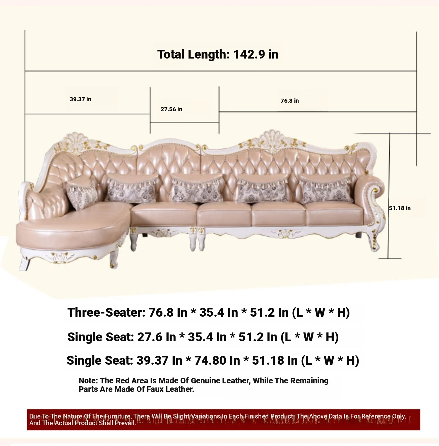 Luxury European Style Corner Sofa - Premium Genuine Leather with Solid Wood Frame for Small Spaces - Elegant and High-End Living Room Furniture