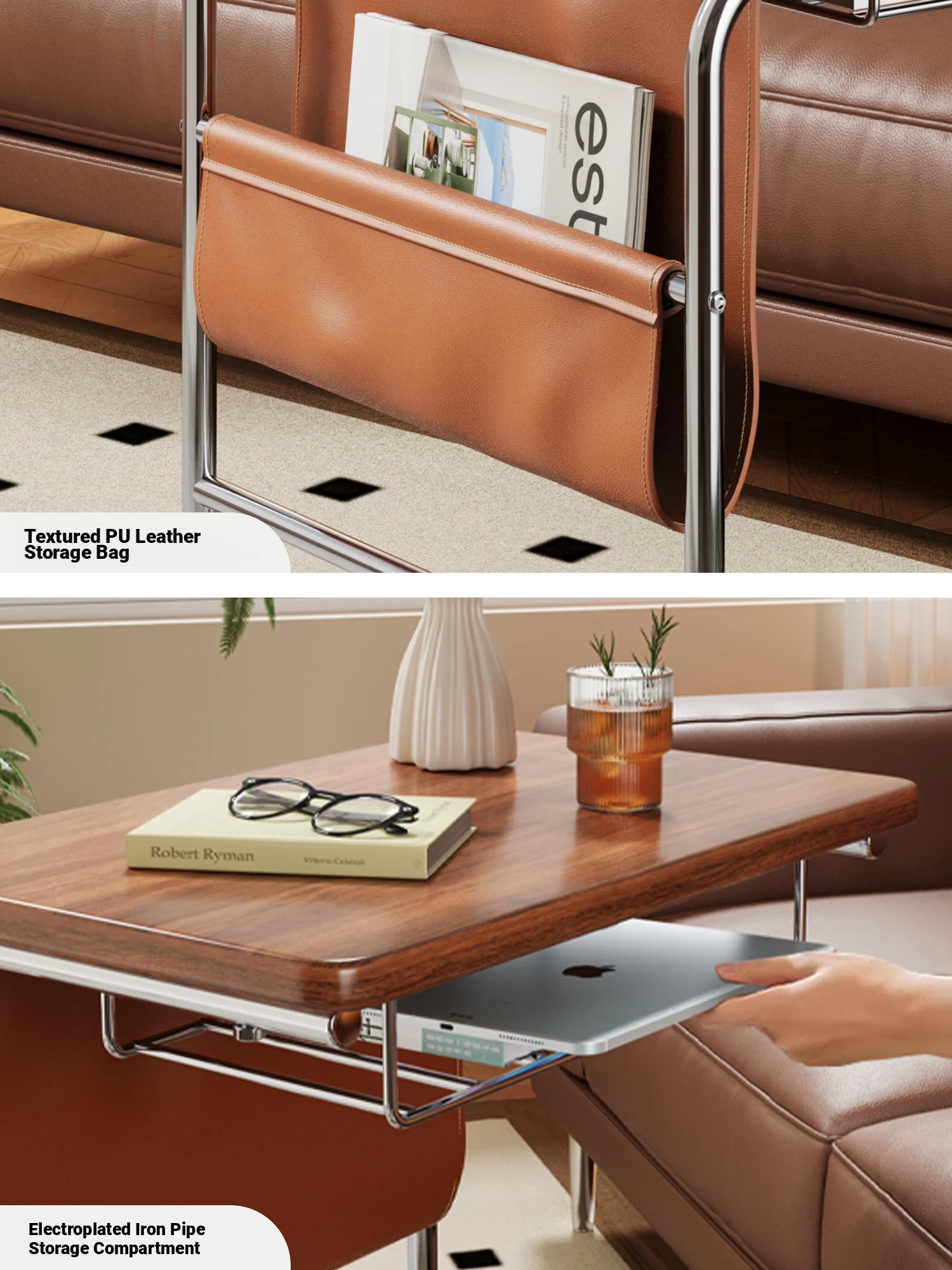 [Walnut color | Shelf | Storage bag | Universal wheel] 2165.36in*1574.80in*2519.69inovable side table