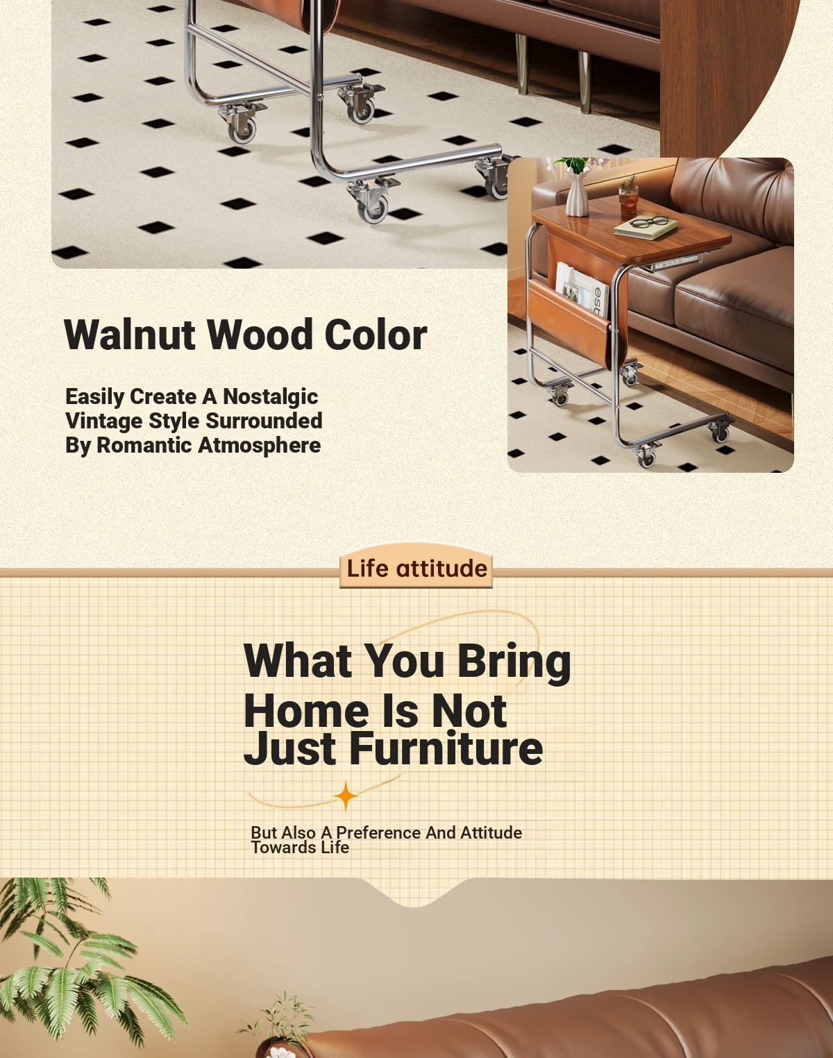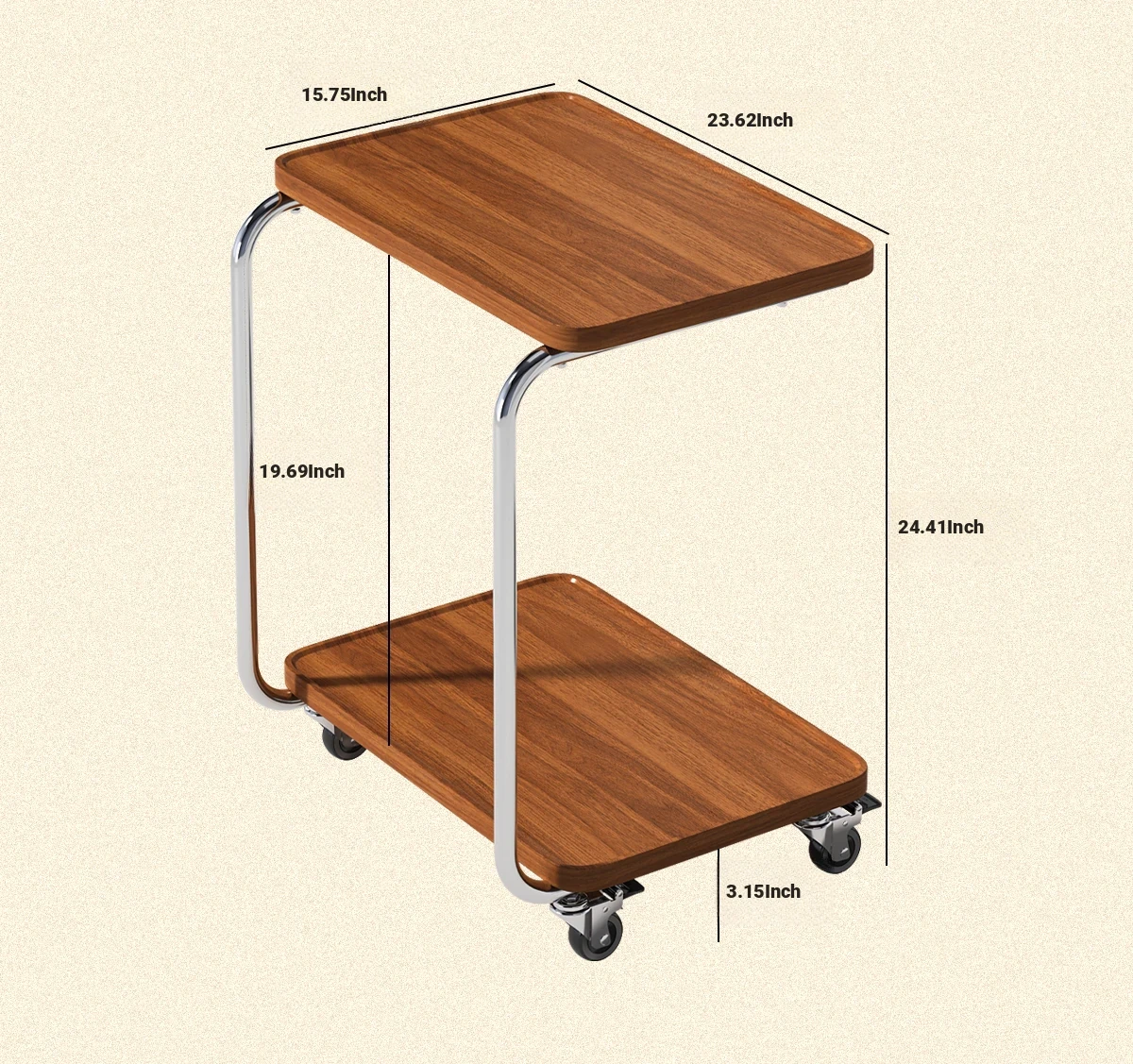 Double-layer [walnut color | Rack | Universal wheel] 2362.21in*1574.80in*2440.95inovable side table