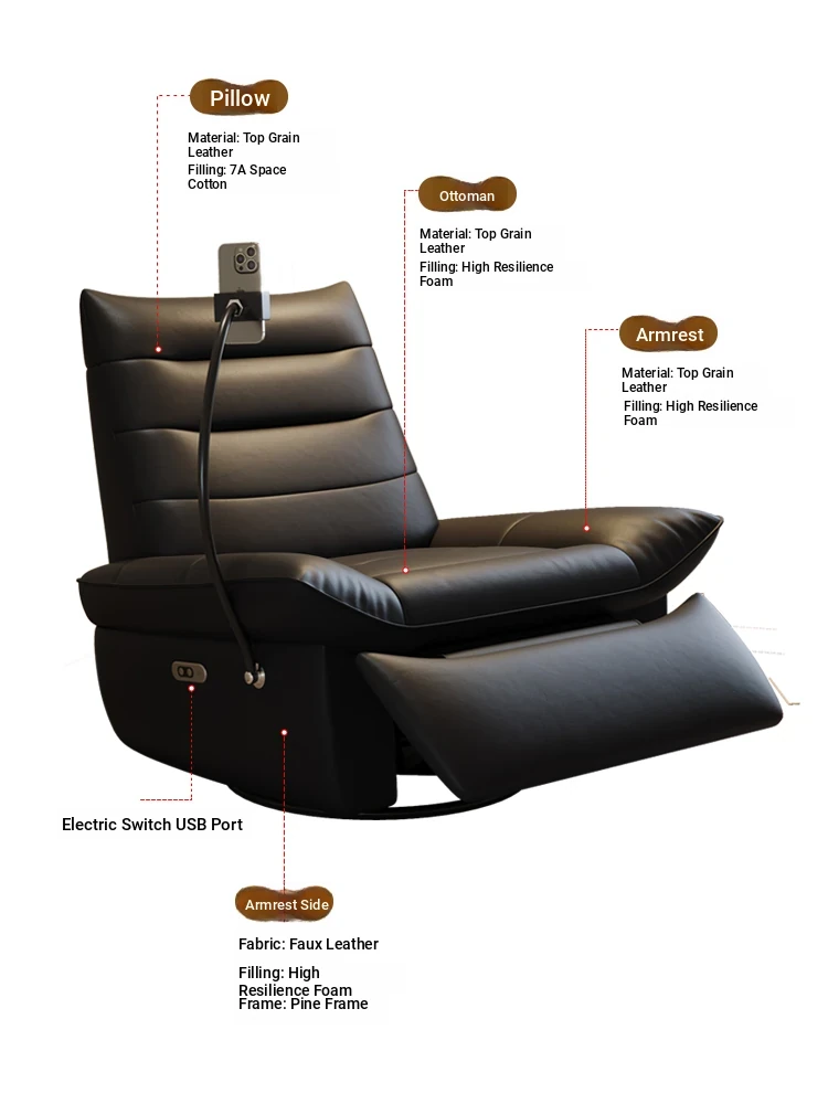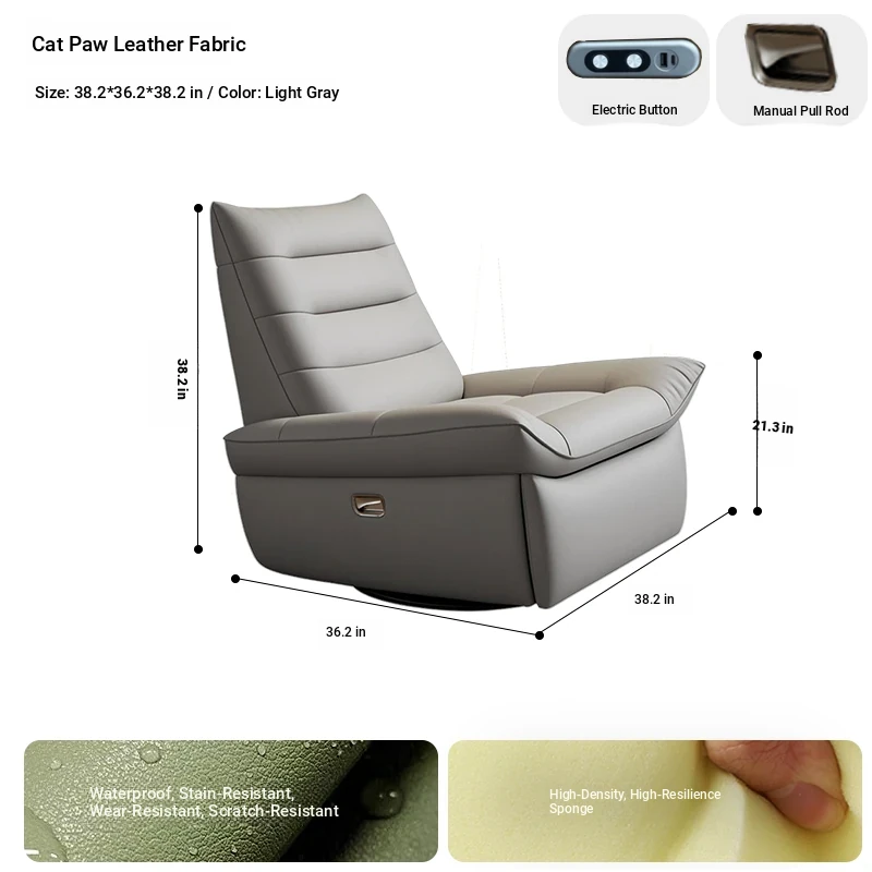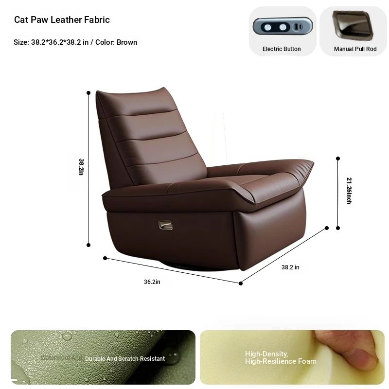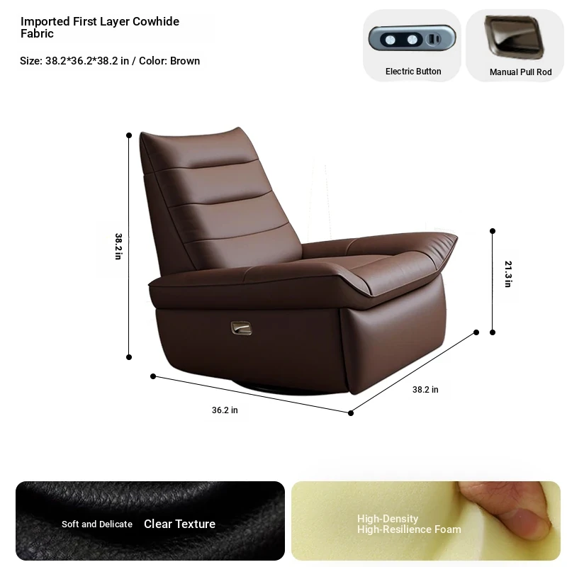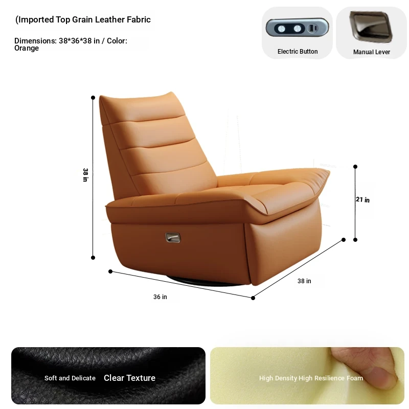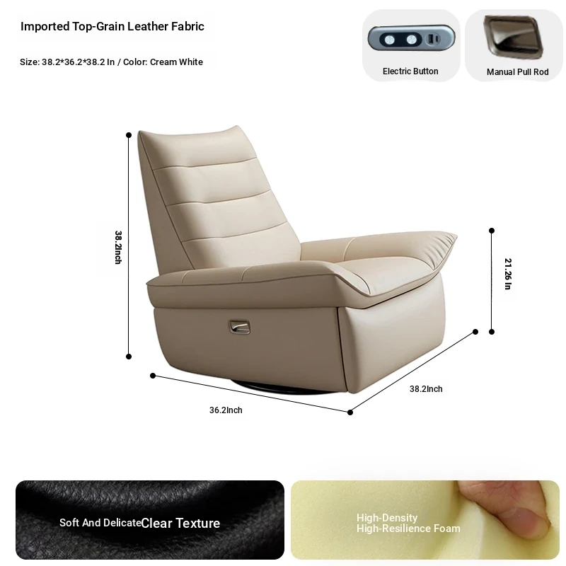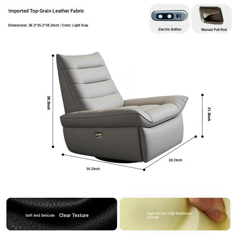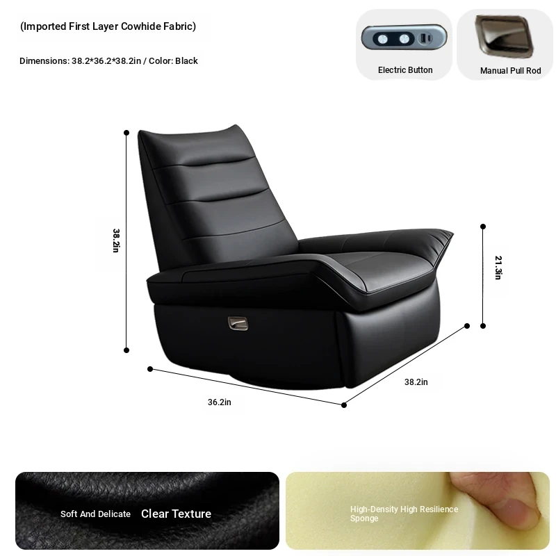 Modern Electric Recliner Sofa for Living Room – Minimalist Italian Design, Adjustable, Luxury Quality Genuine Leather, Perfect for Home Use, Single Seat Comfort
