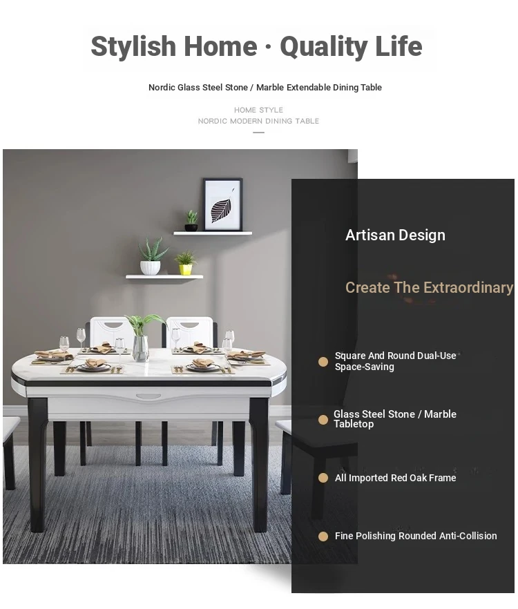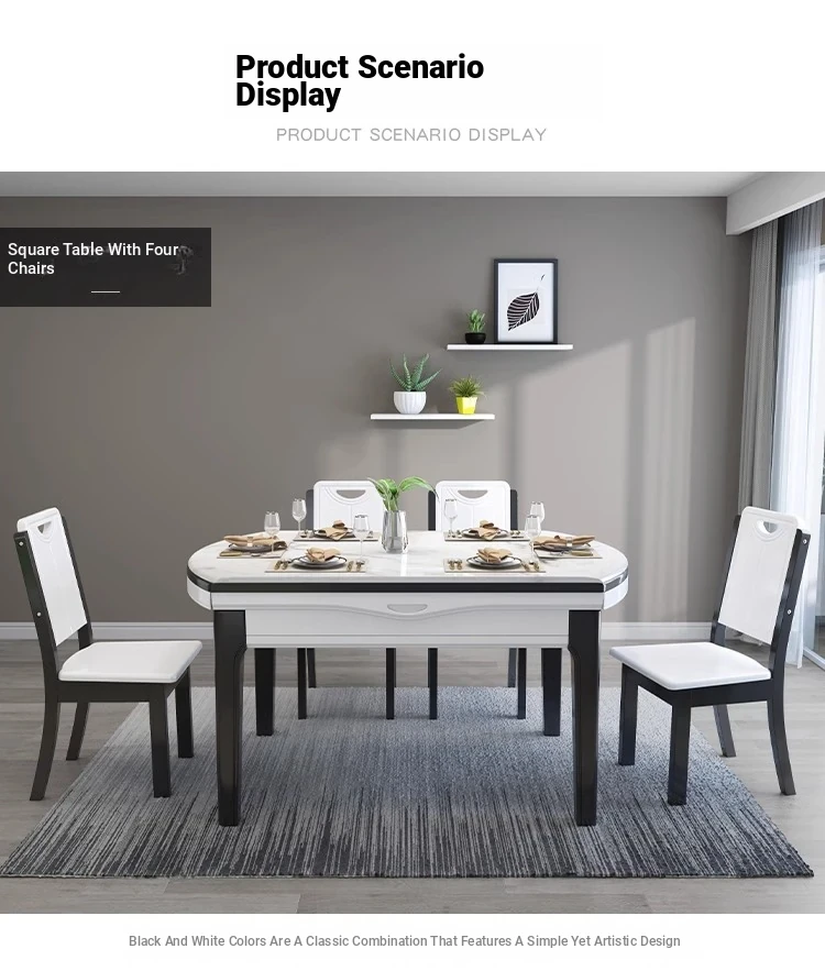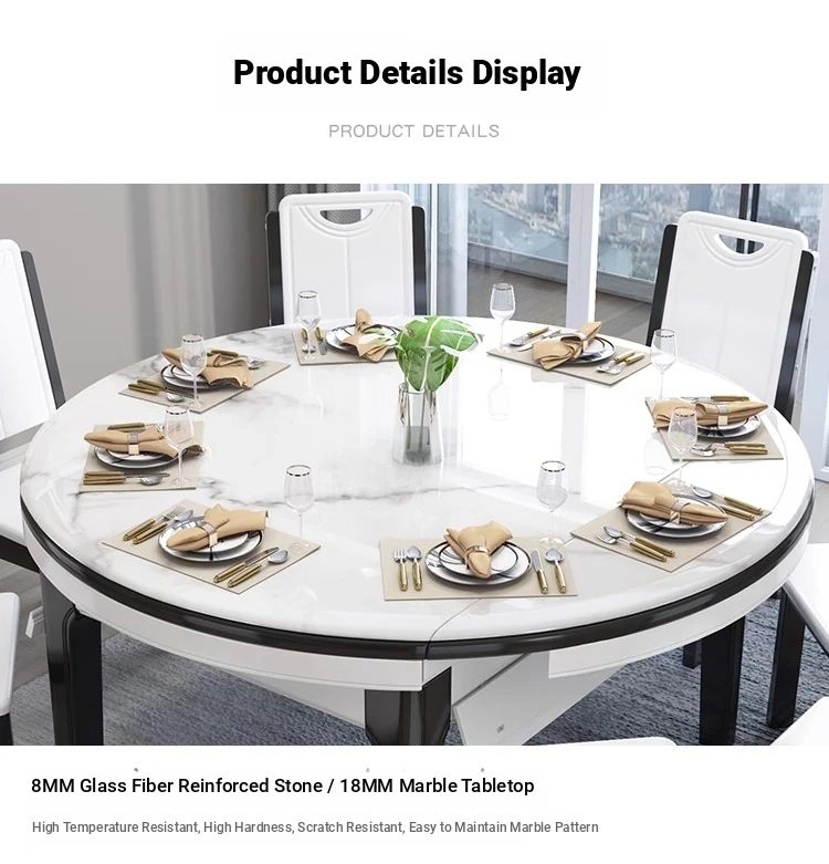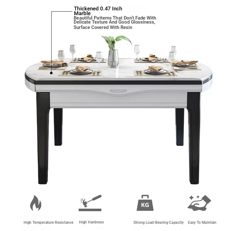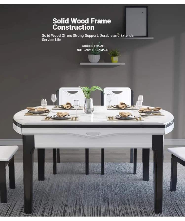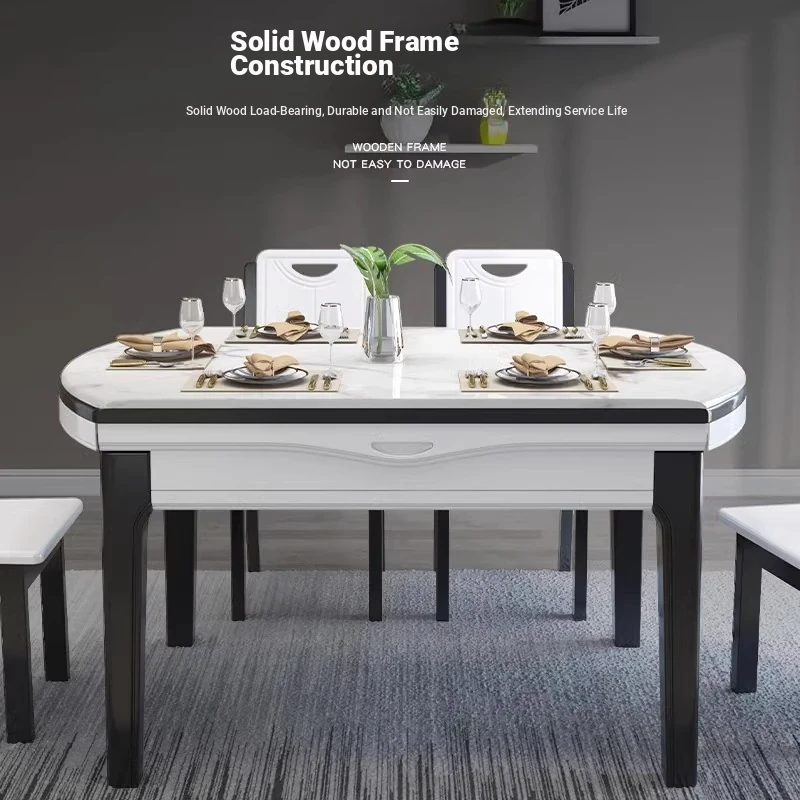 Modern Extendable Round Marble Dining Table Set with Solid Wood Chairs - Space-Saving Design for Small Homes, Perfect for Elegant Dining Experiences