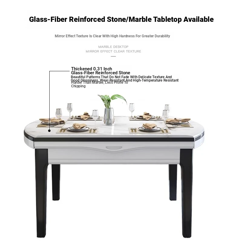 [Rock Plate] 53.15 in Table +6 Chairs