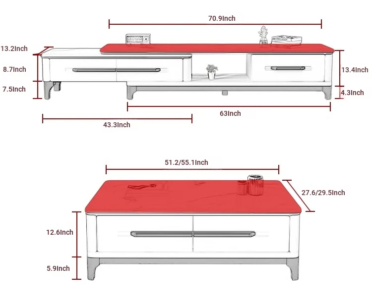 [Full Set] 1.35 table +8 chairs + tea table + TV cabinet