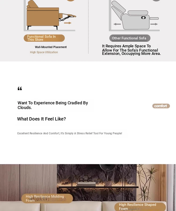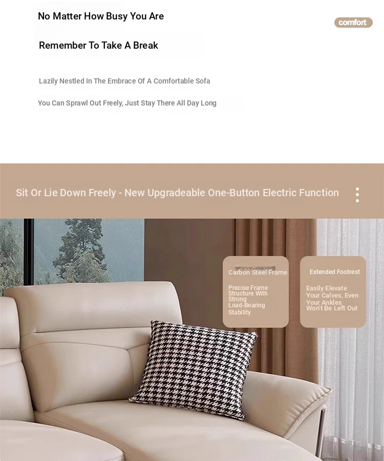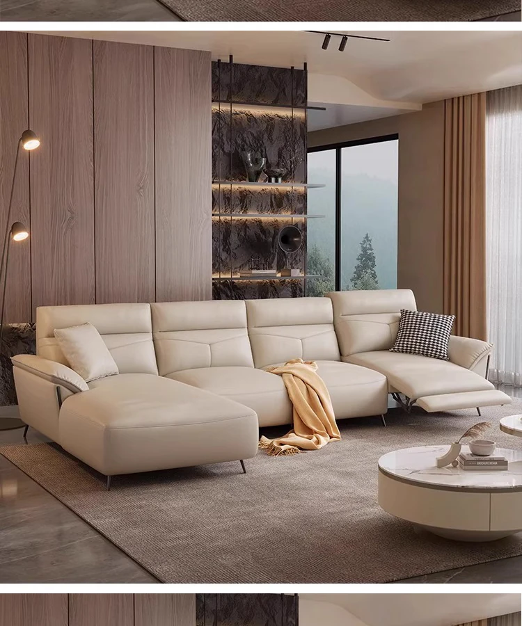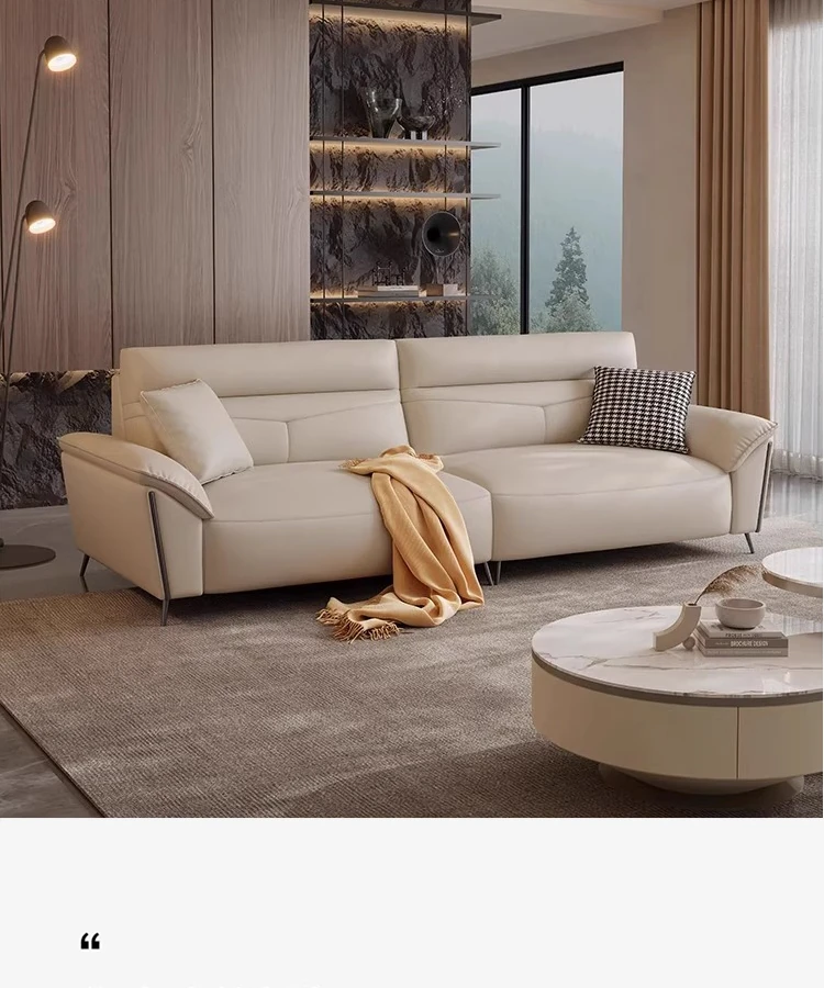 Modern Italian Minimalist Electric Sofa - New Stylish Chaise Lounge with Cat Scratch Resistant Genuine Leather, Multifunctional Design for Small Spaces
