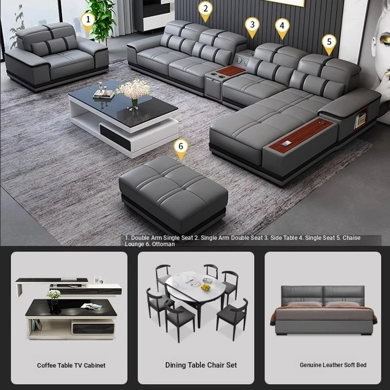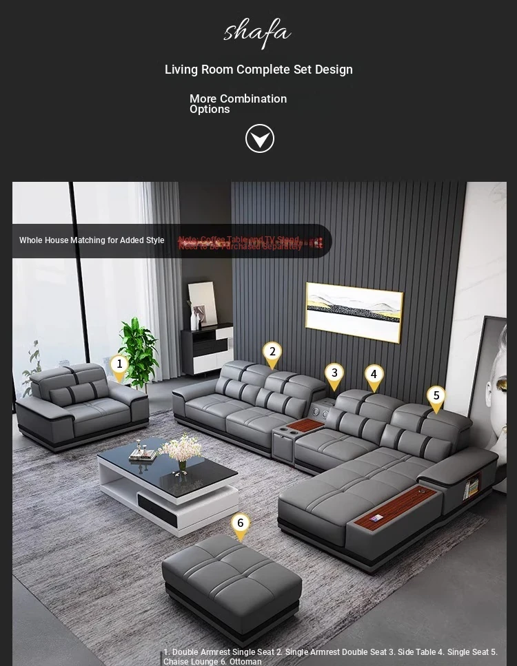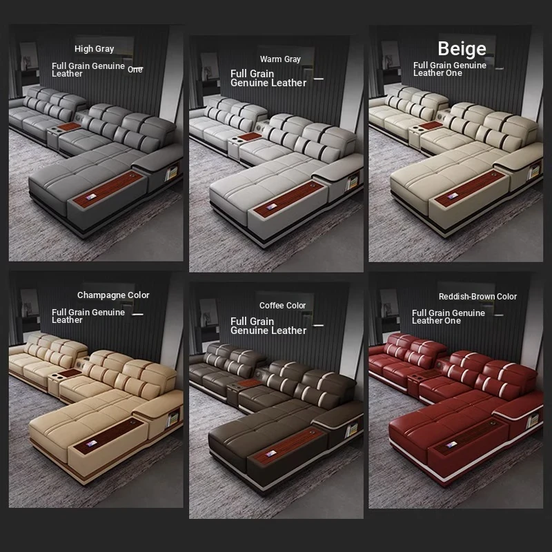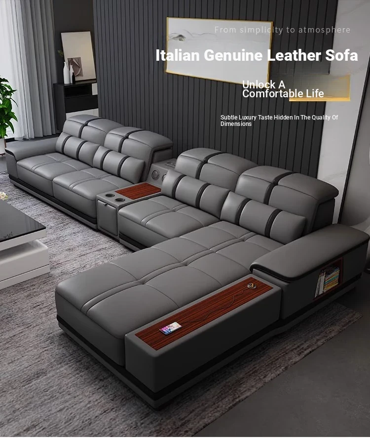 Modern Minimalist Genuine Leather Sofa Set - Top-Grain Cowhide Living Room Furniture for All Room Sizes - Stylish and Comfortable Couch for Your Home