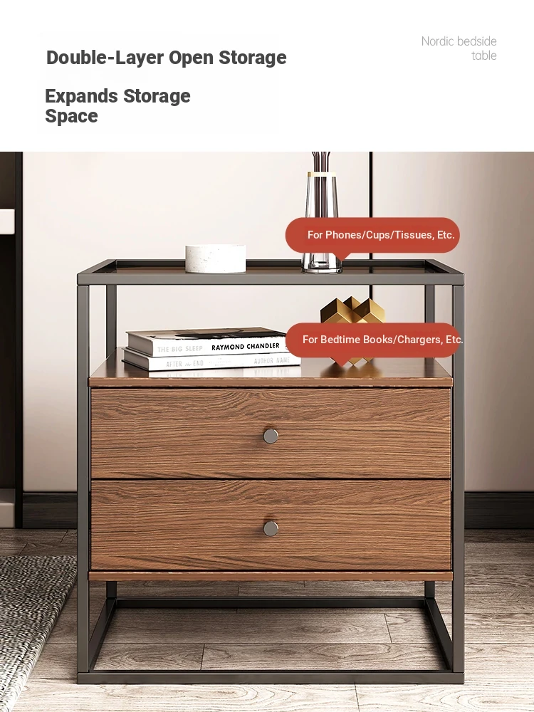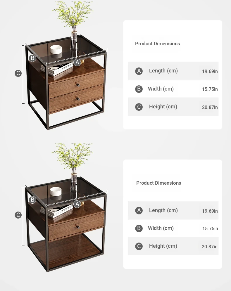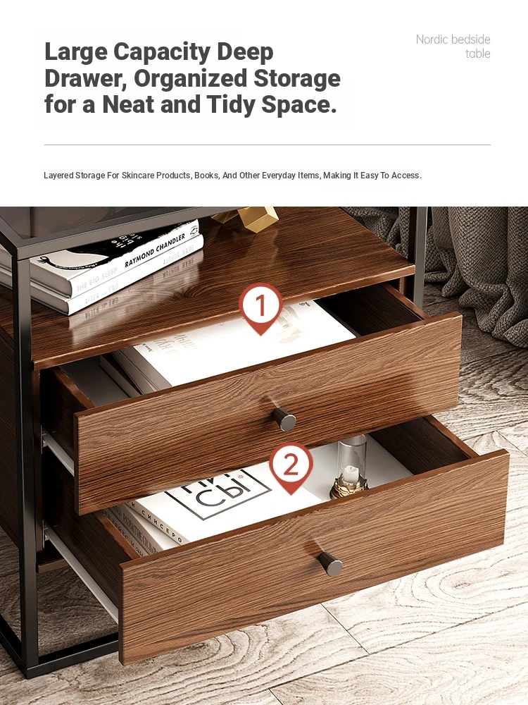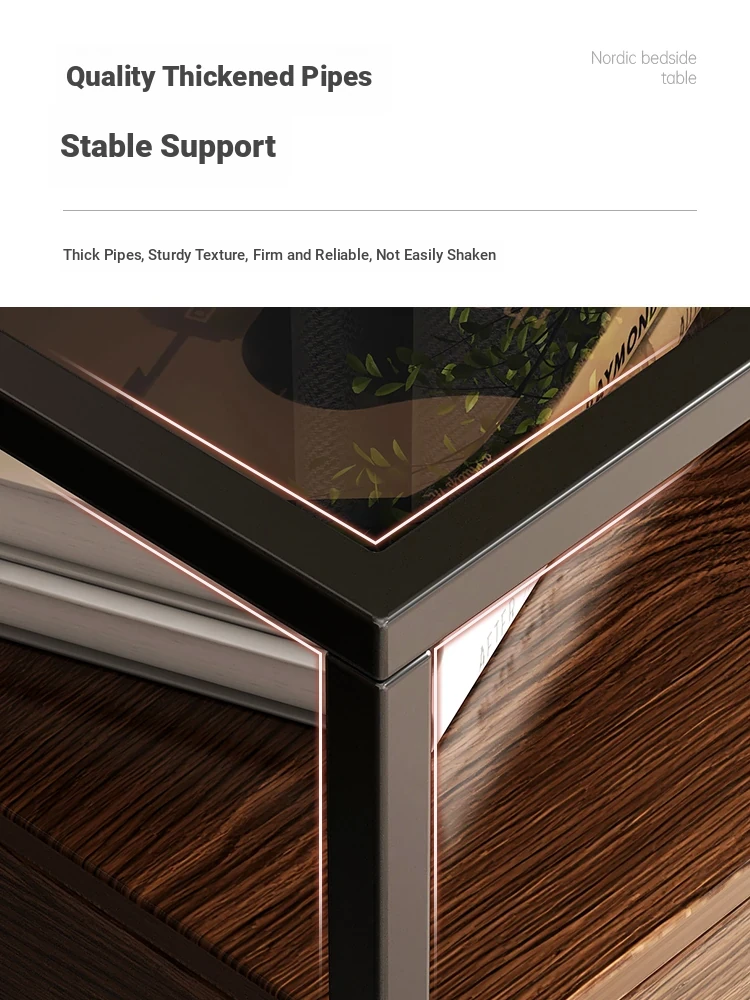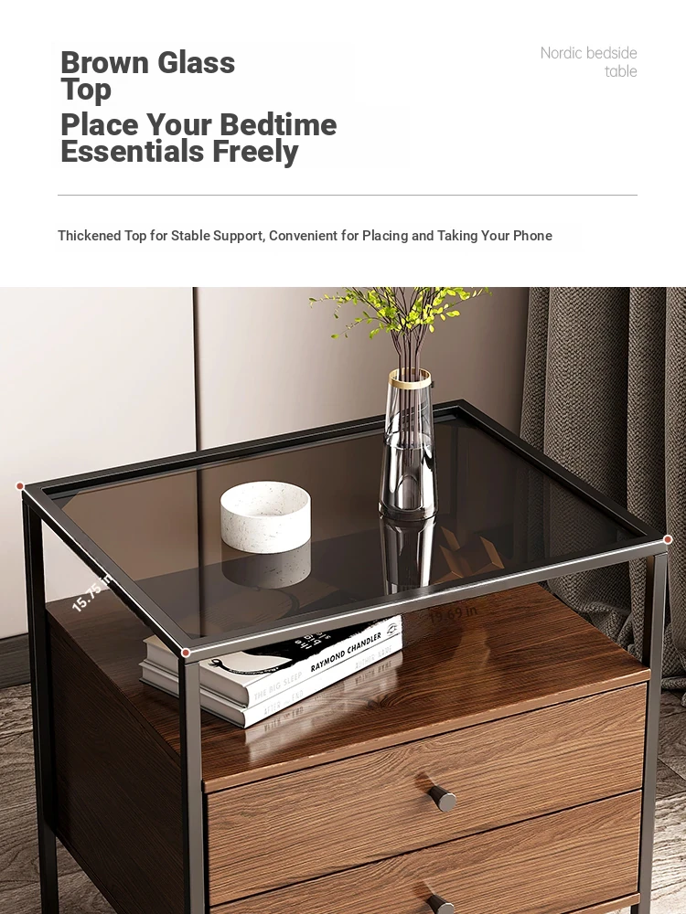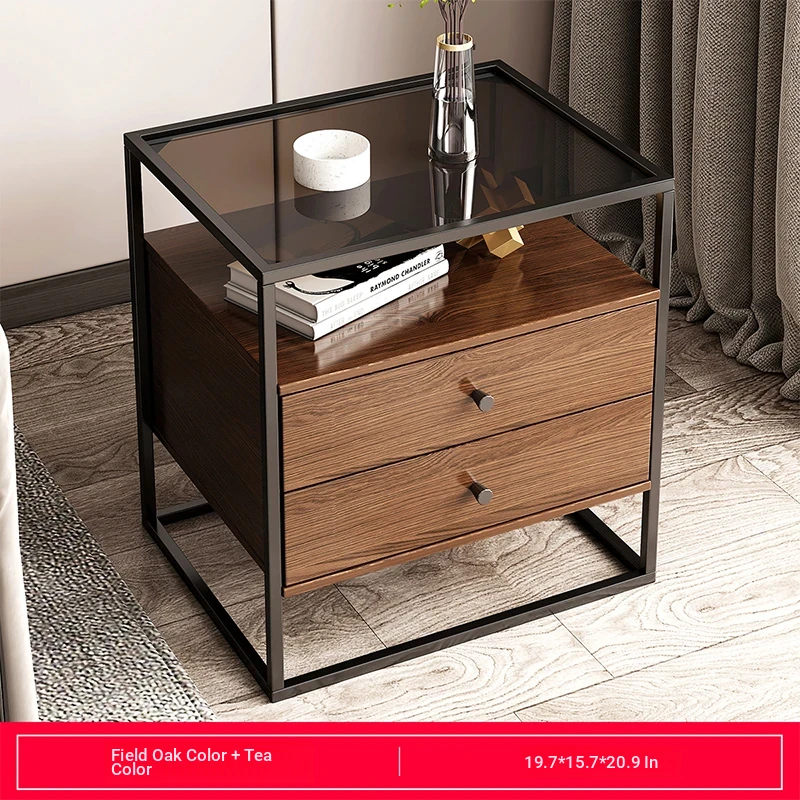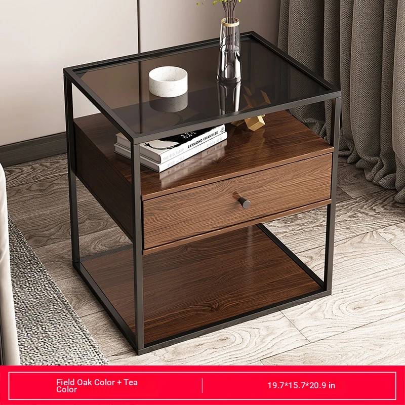Modern Minimalist Iron Bedside Table with Glass Top - Elegant Small Nightstand for Home Bedroom, 2023 New Luxury Design