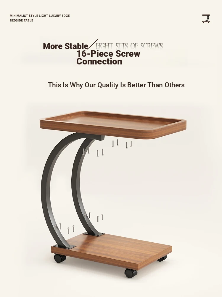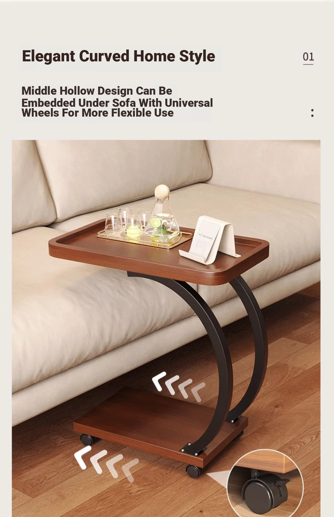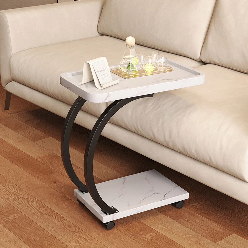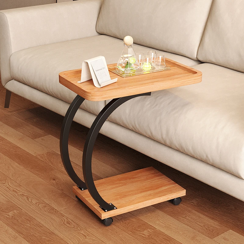 Modern Minimalist Side Table with Wheels - Stylish and Functional Tea Table and Storage Rack for Living Room, Perfect for Sofa Side Use.
