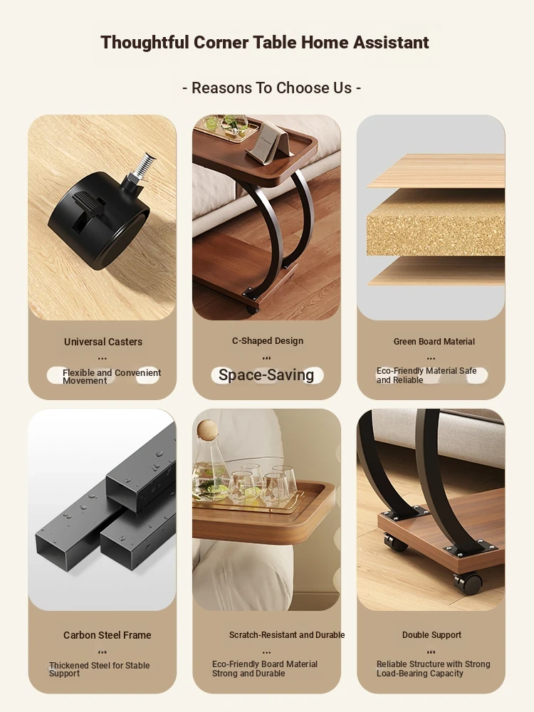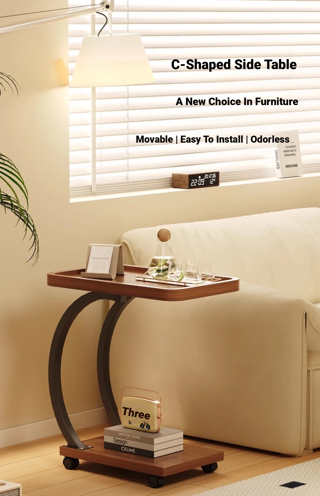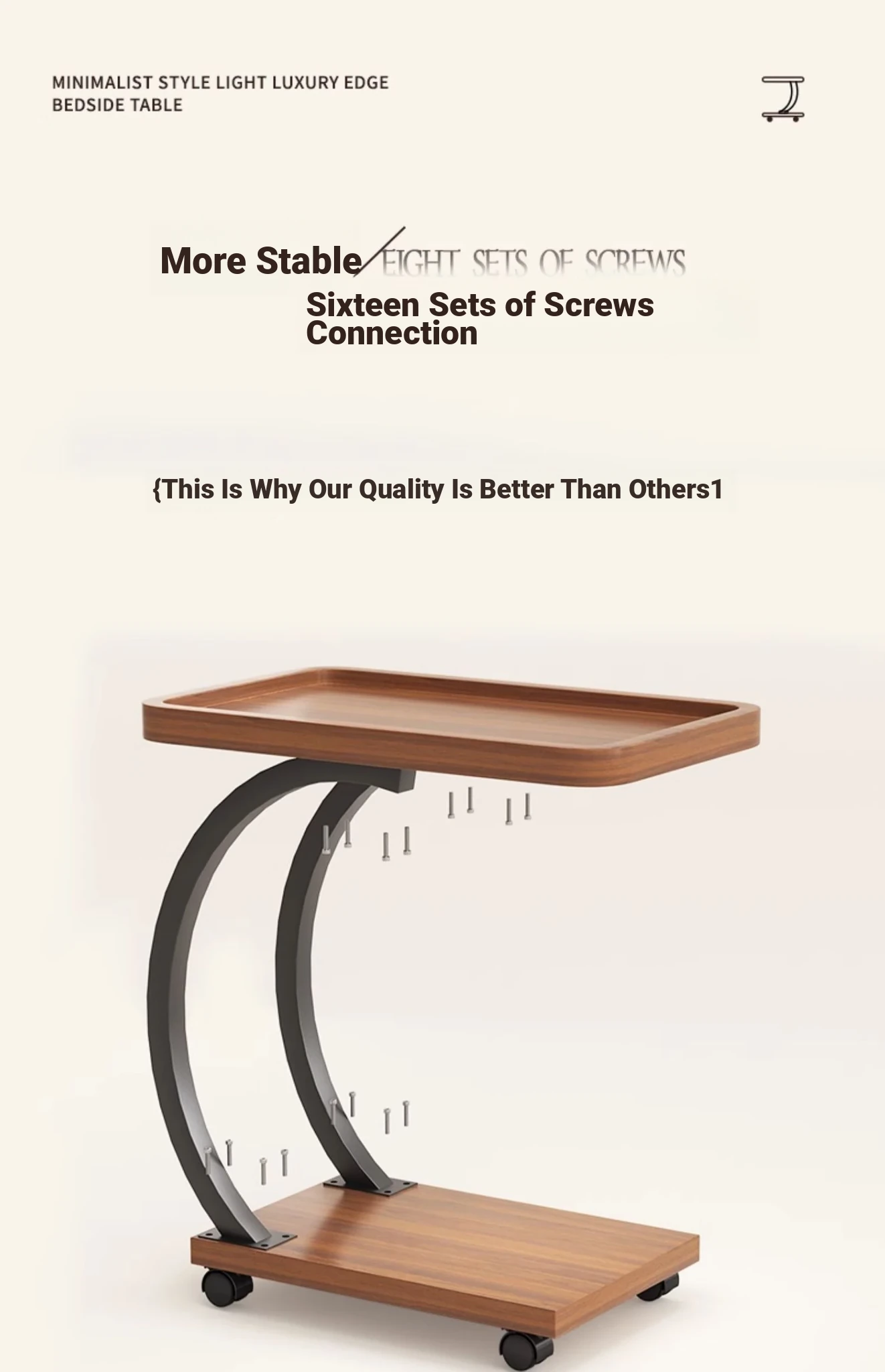 Modern Minimalist Side Table with Wheels - Stylish and Functional Tea Table and Storage Rack for Living Room, Perfect for Sofa Side Use.