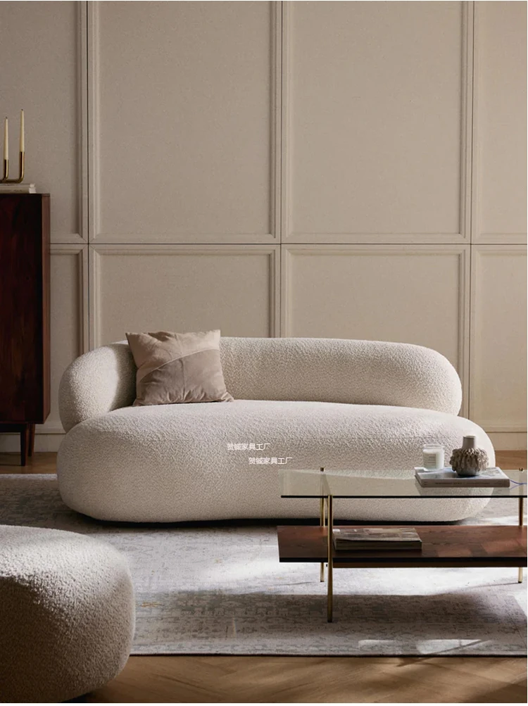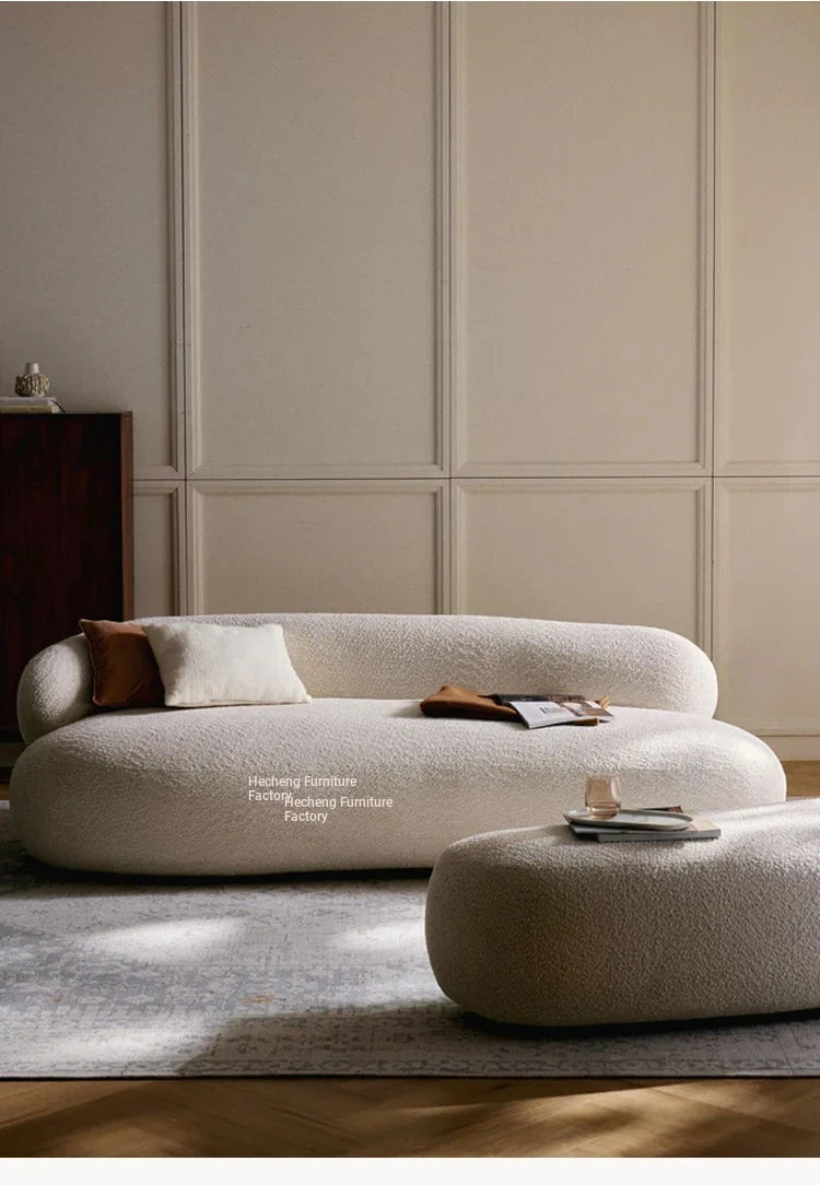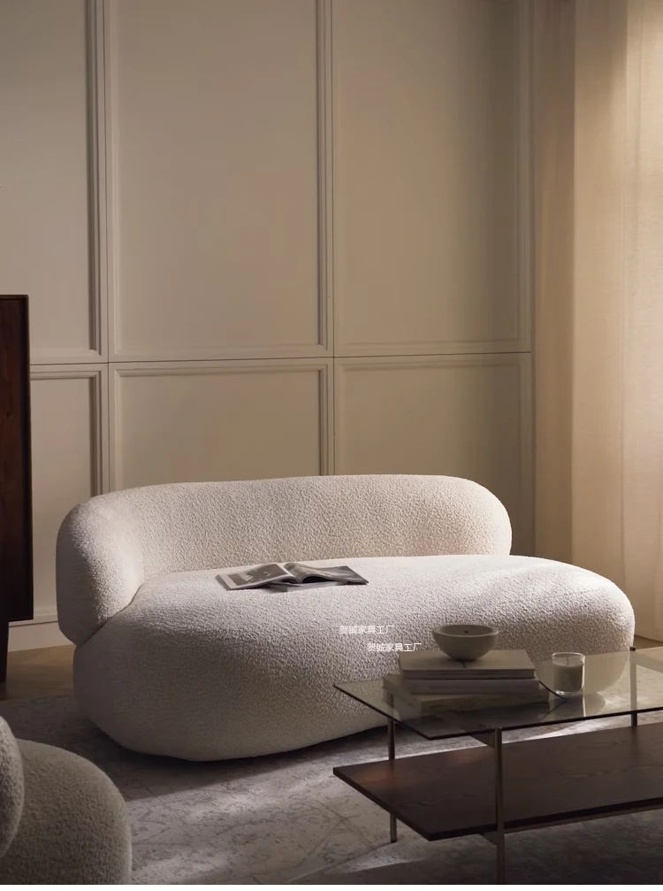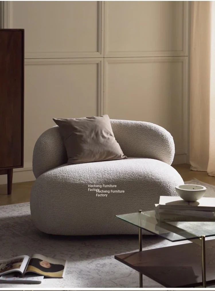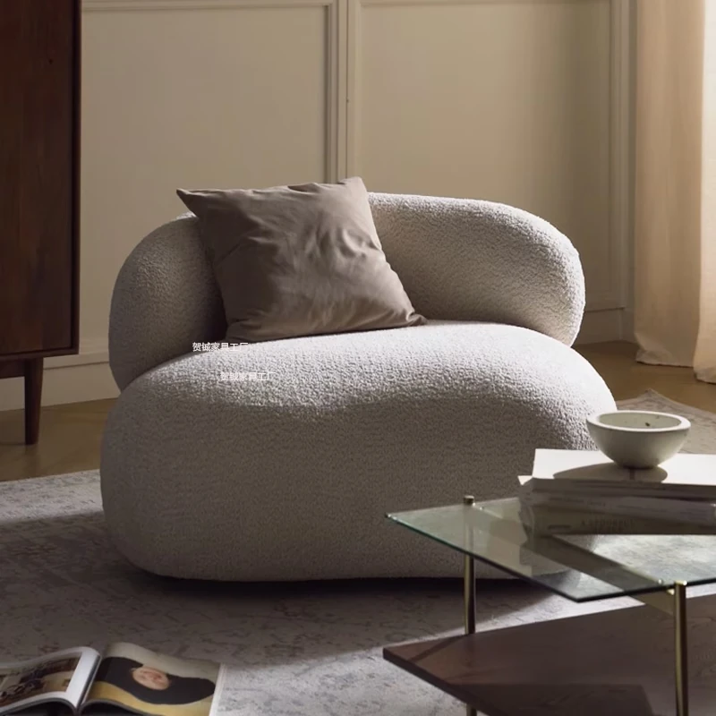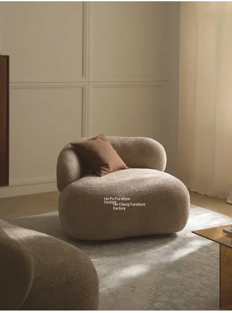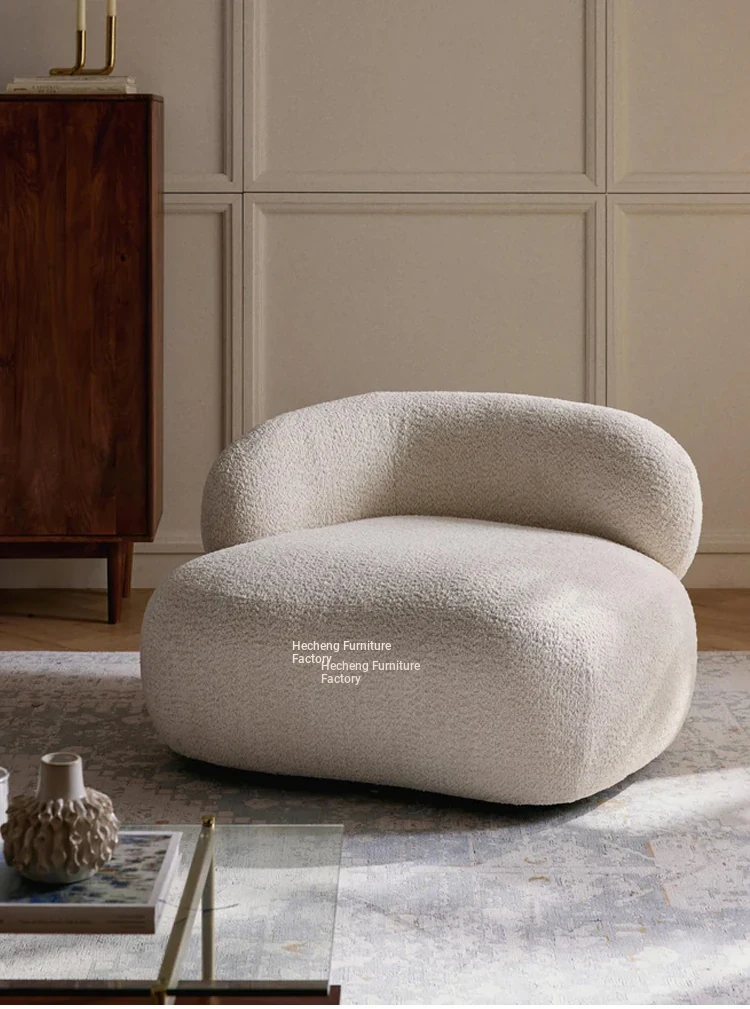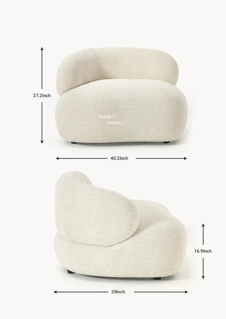 Nordic Creamy Lambswool Curved Lounge Chair - Stylish Italian-Inspired Accent Chair for Living Room, Hotel, and Relaxation Spaces - Cozy Fabric Recliner for Ultimate Comfort