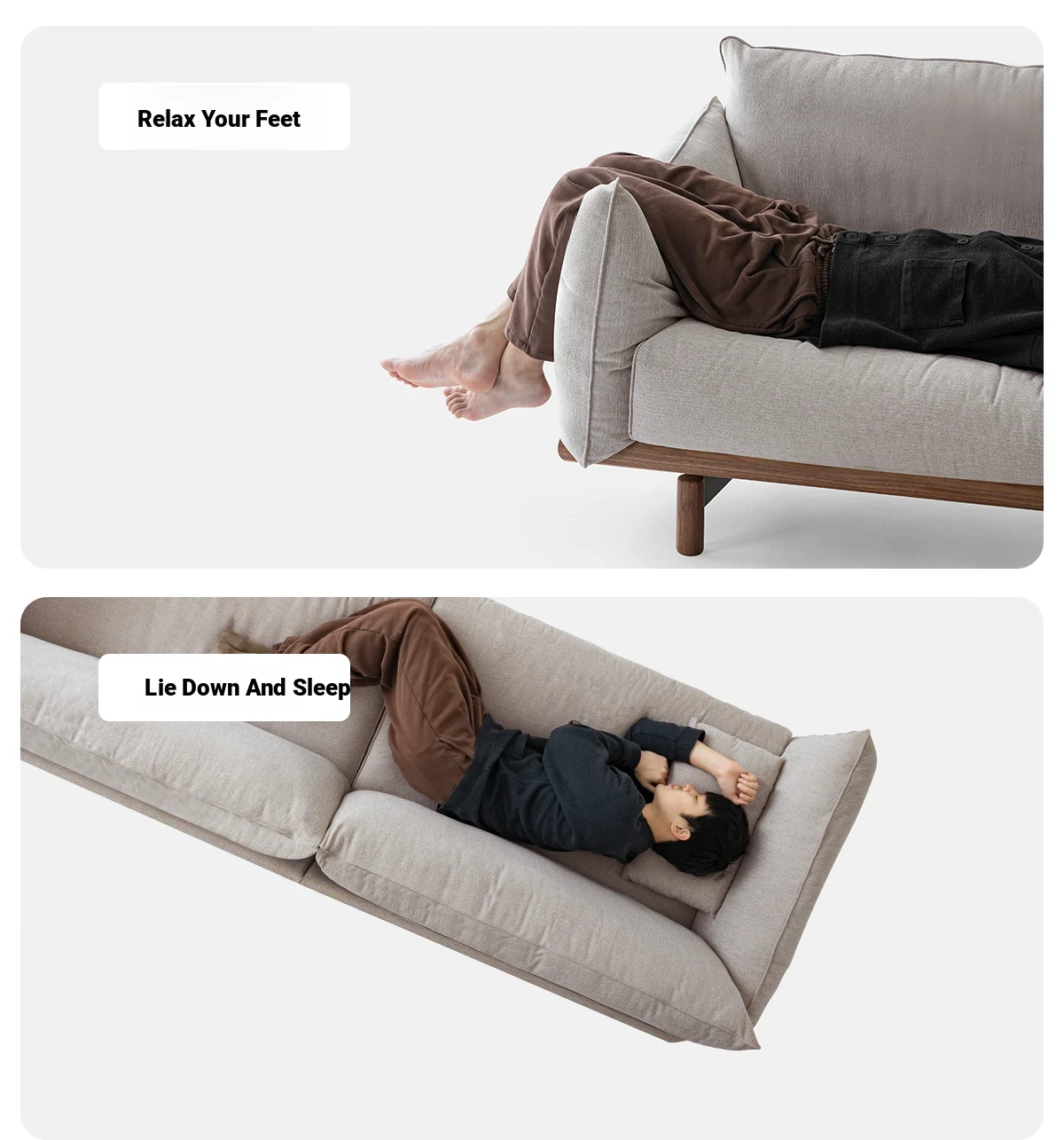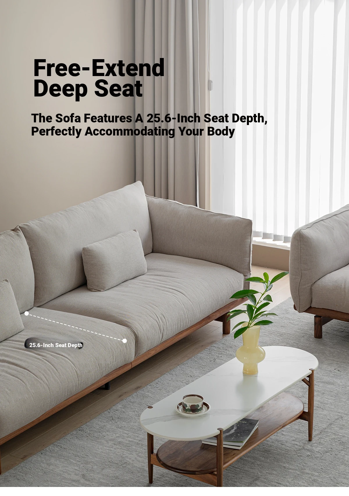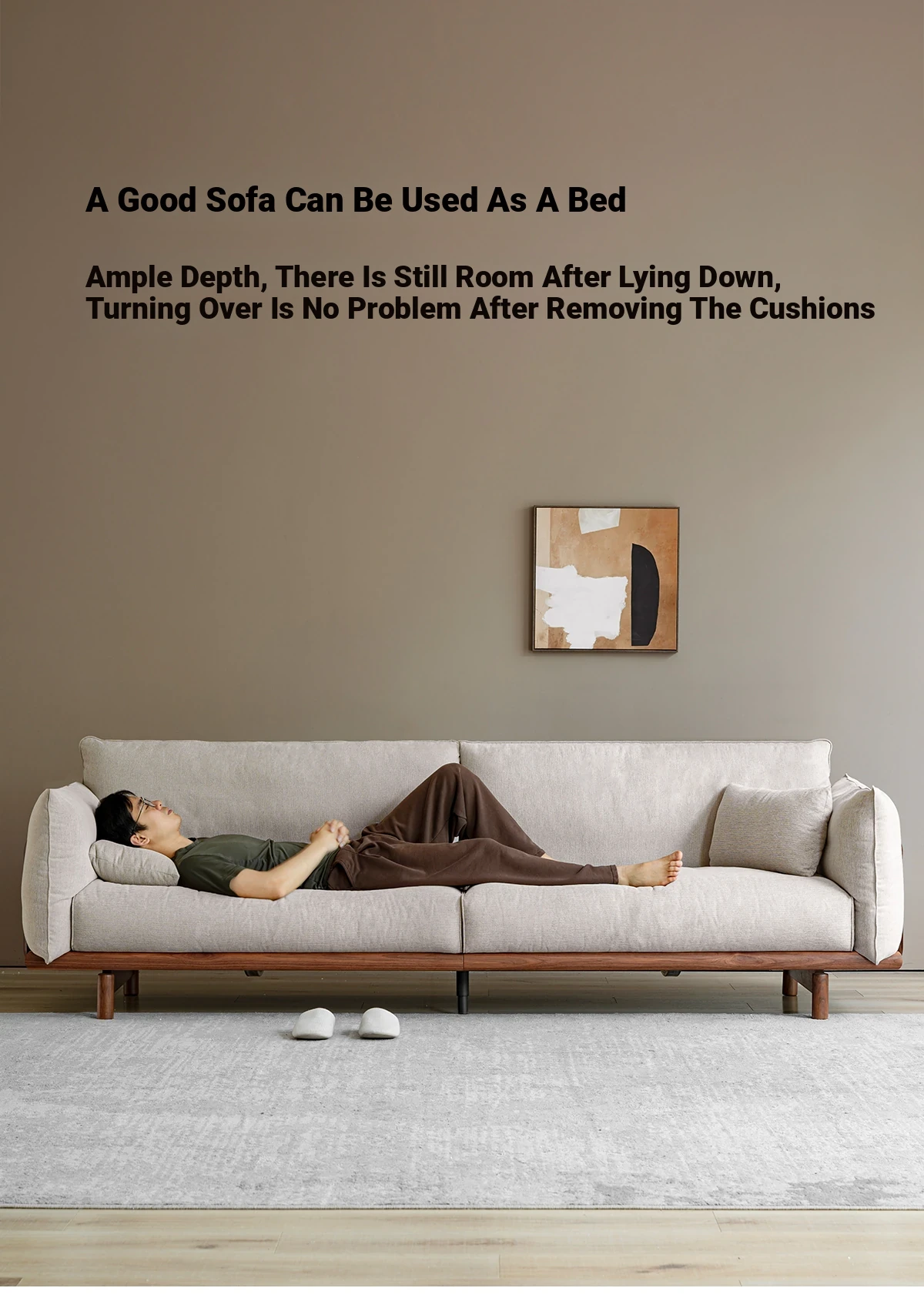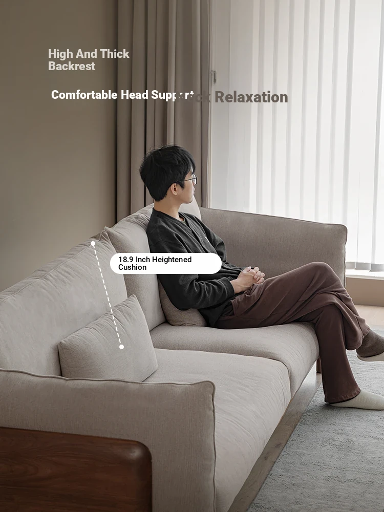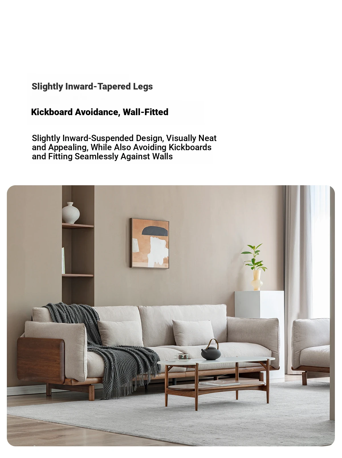 Nordic Style Solid Wood Fabric Sofa - Walnut Finish, Minimalist 3-Seater Living Room Combination by Liangnian Furniture - Perfect for Modern Homes