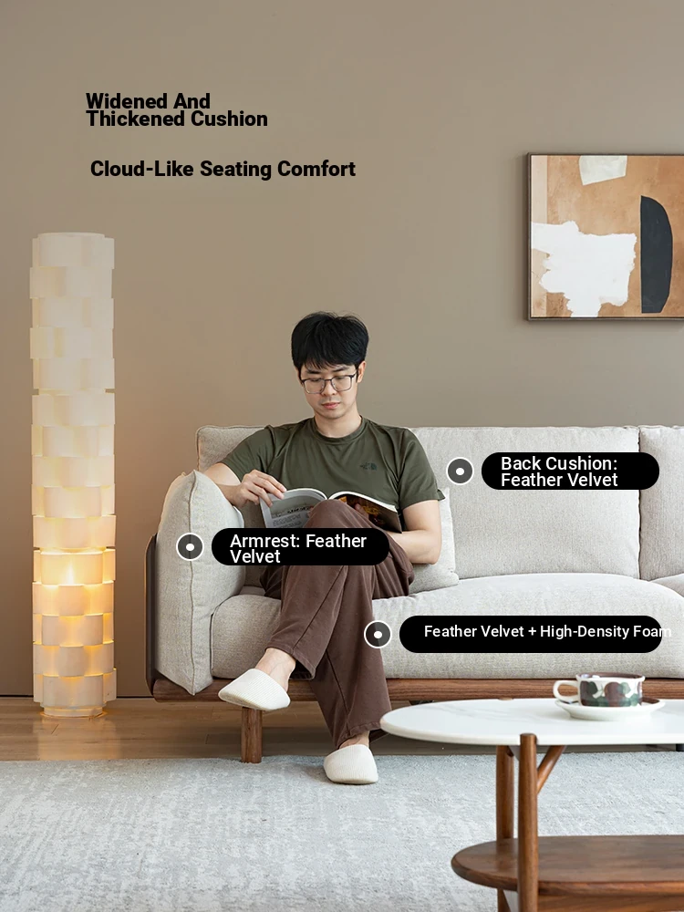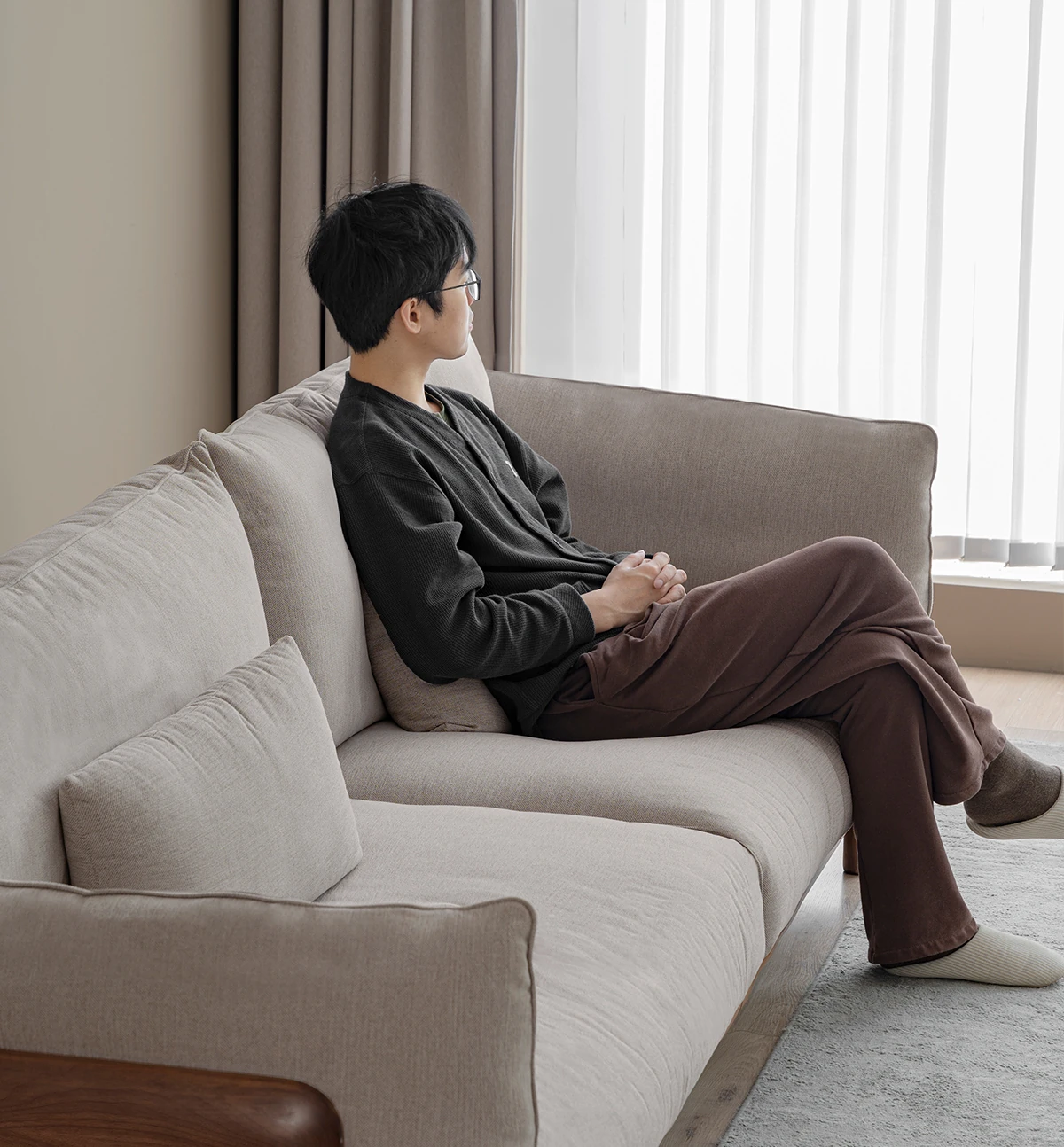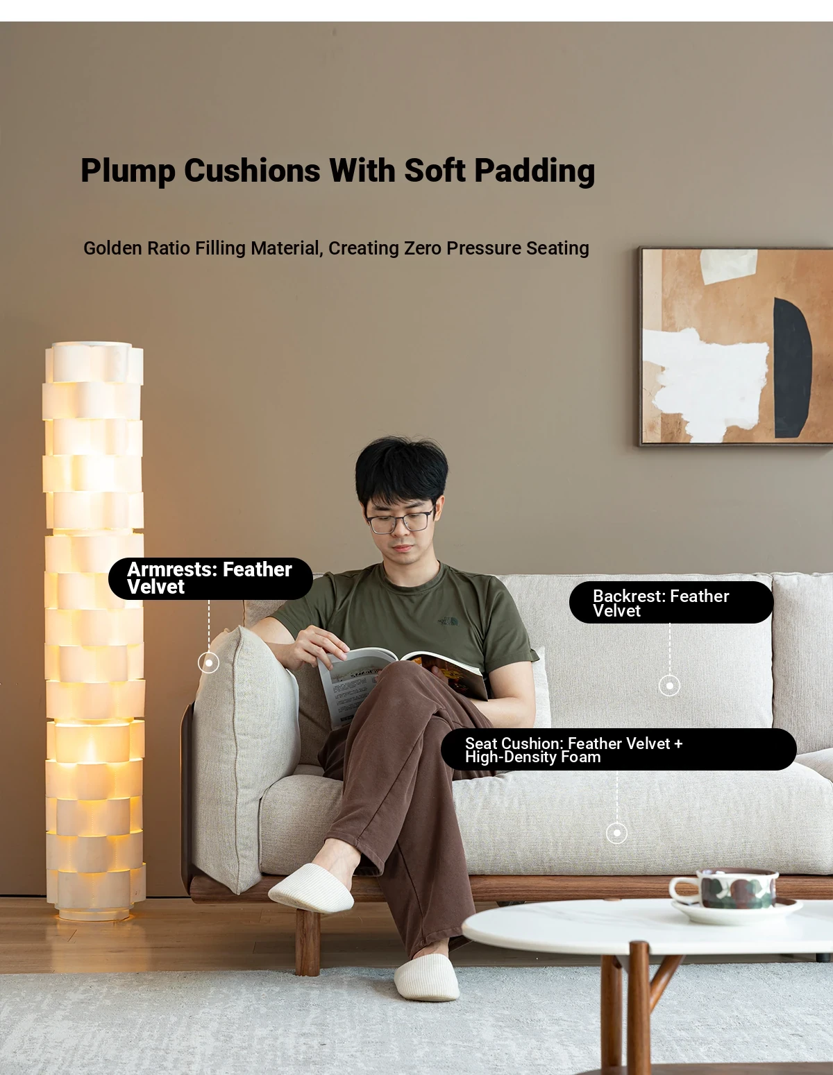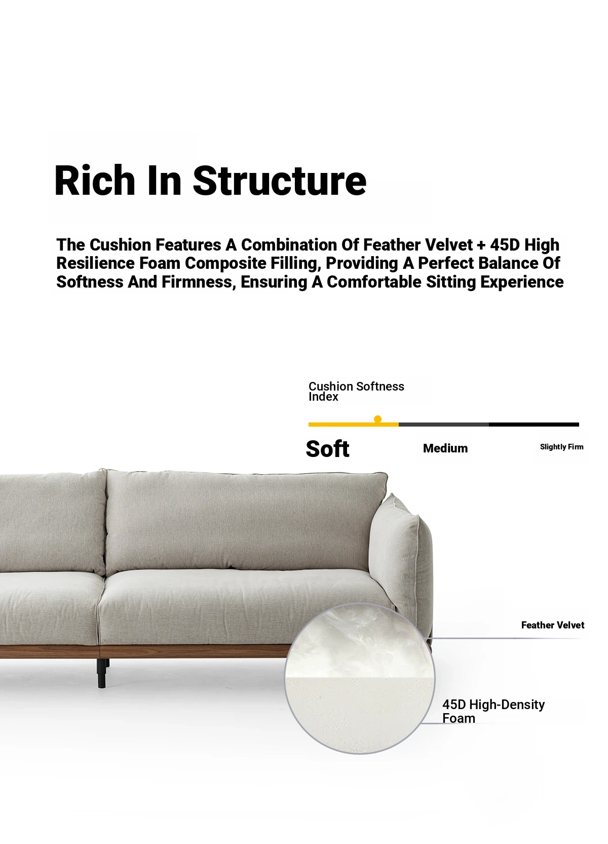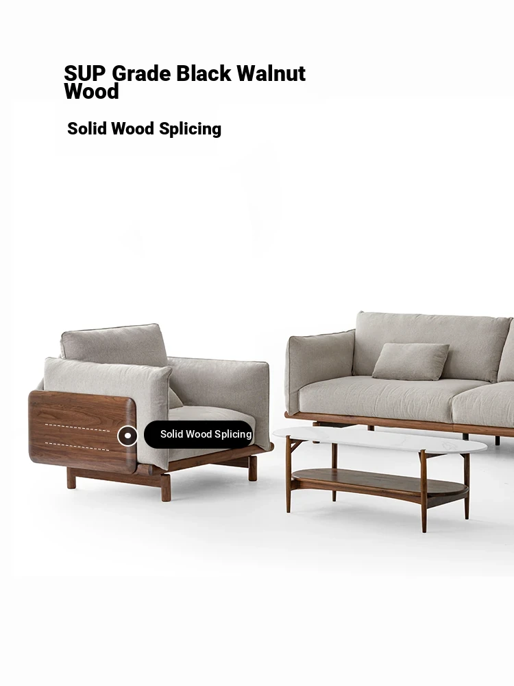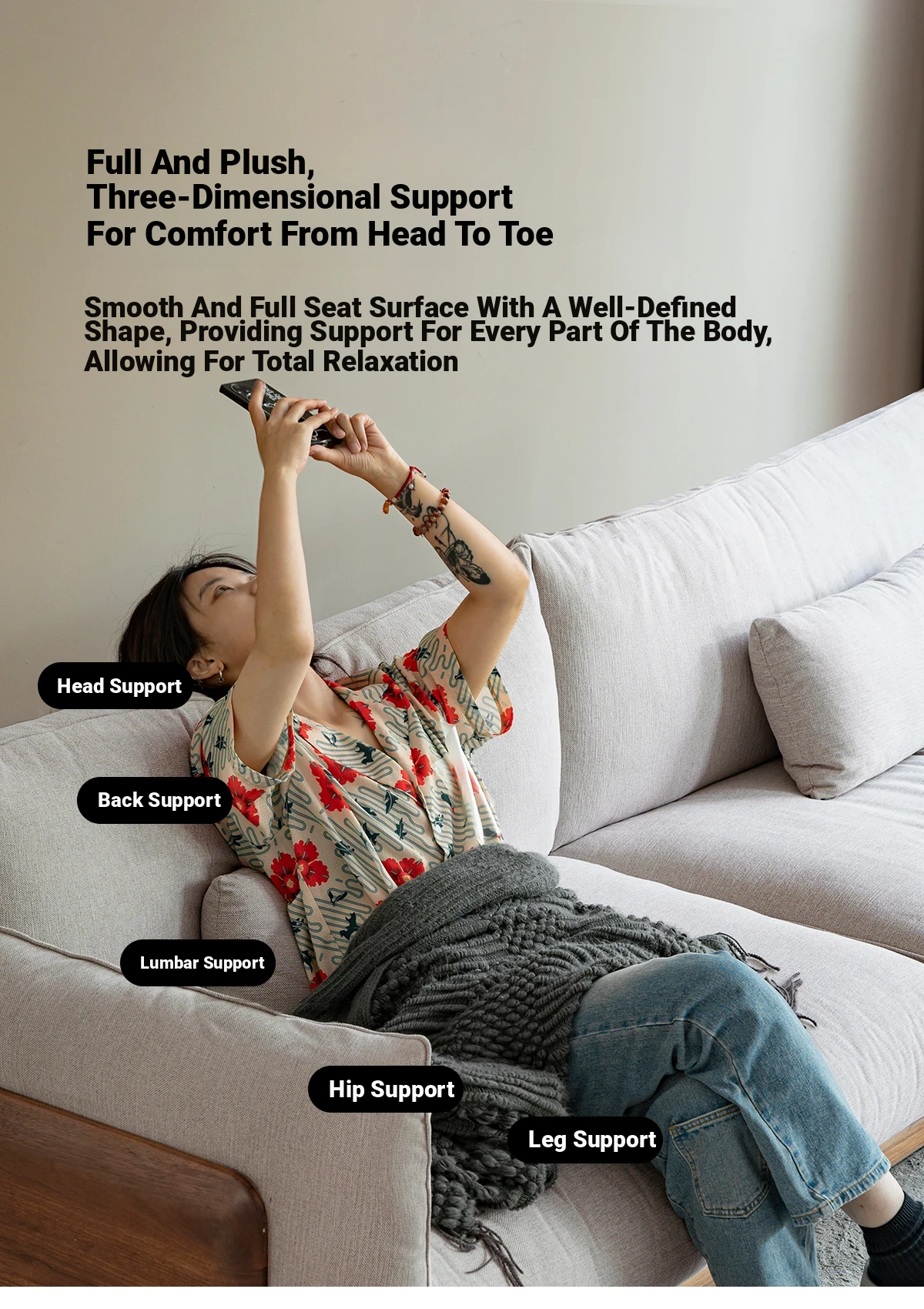 Nordic Style Solid Wood Fabric Sofa - Walnut Finish, Minimalist 3-Seater Living Room Combination by Liangnian Furniture - Perfect for Modern Homes
