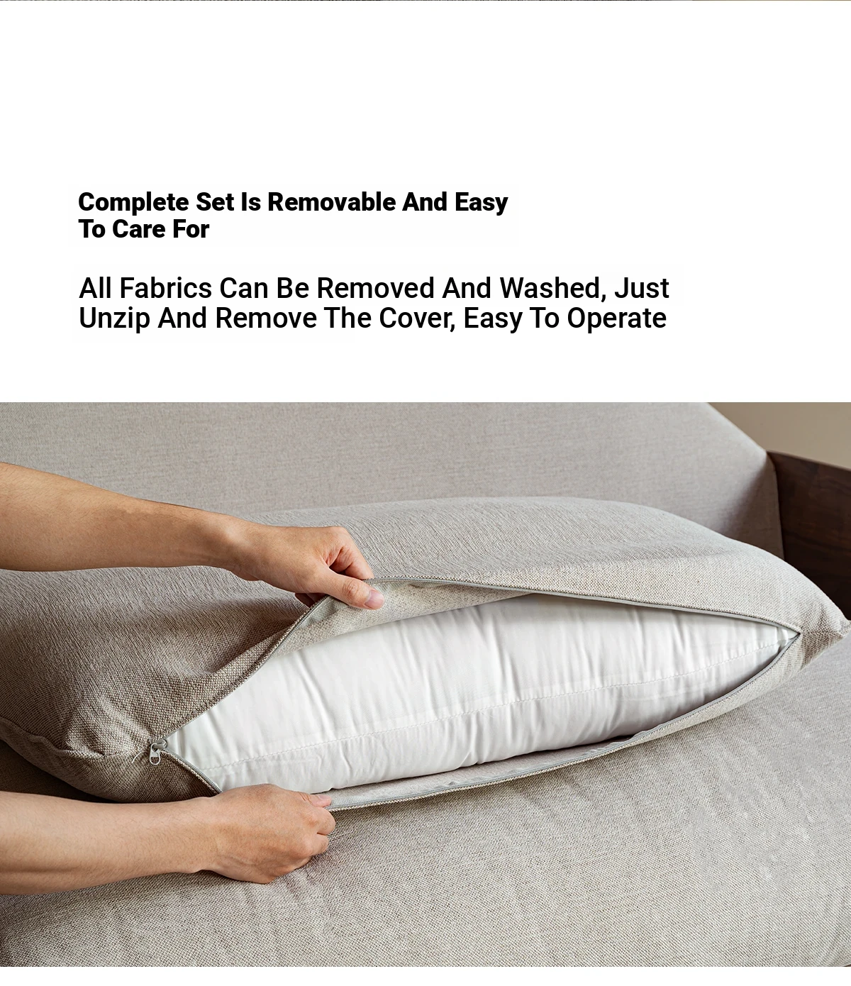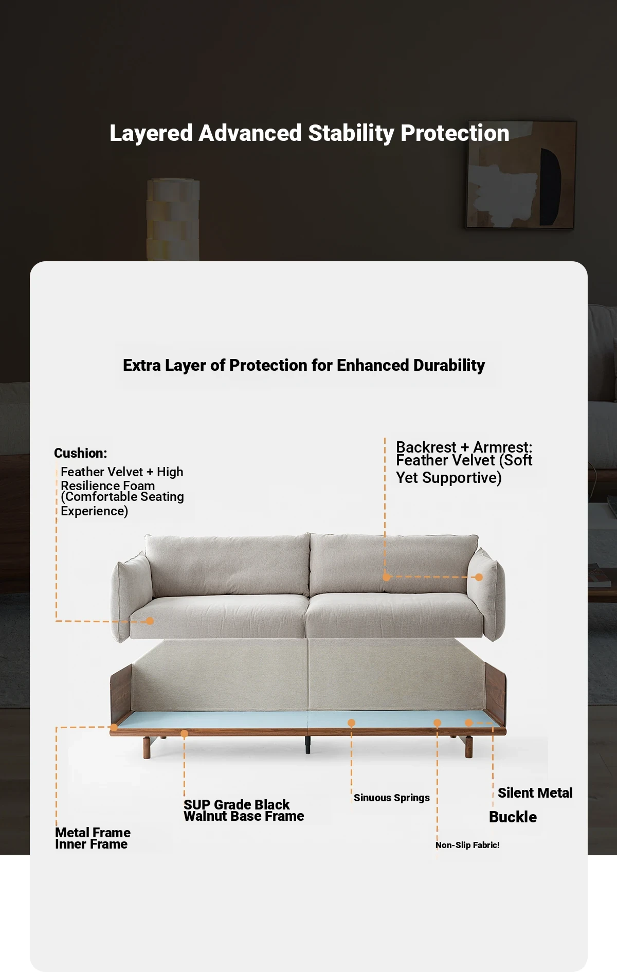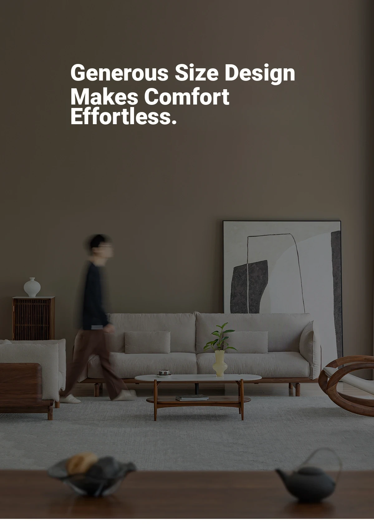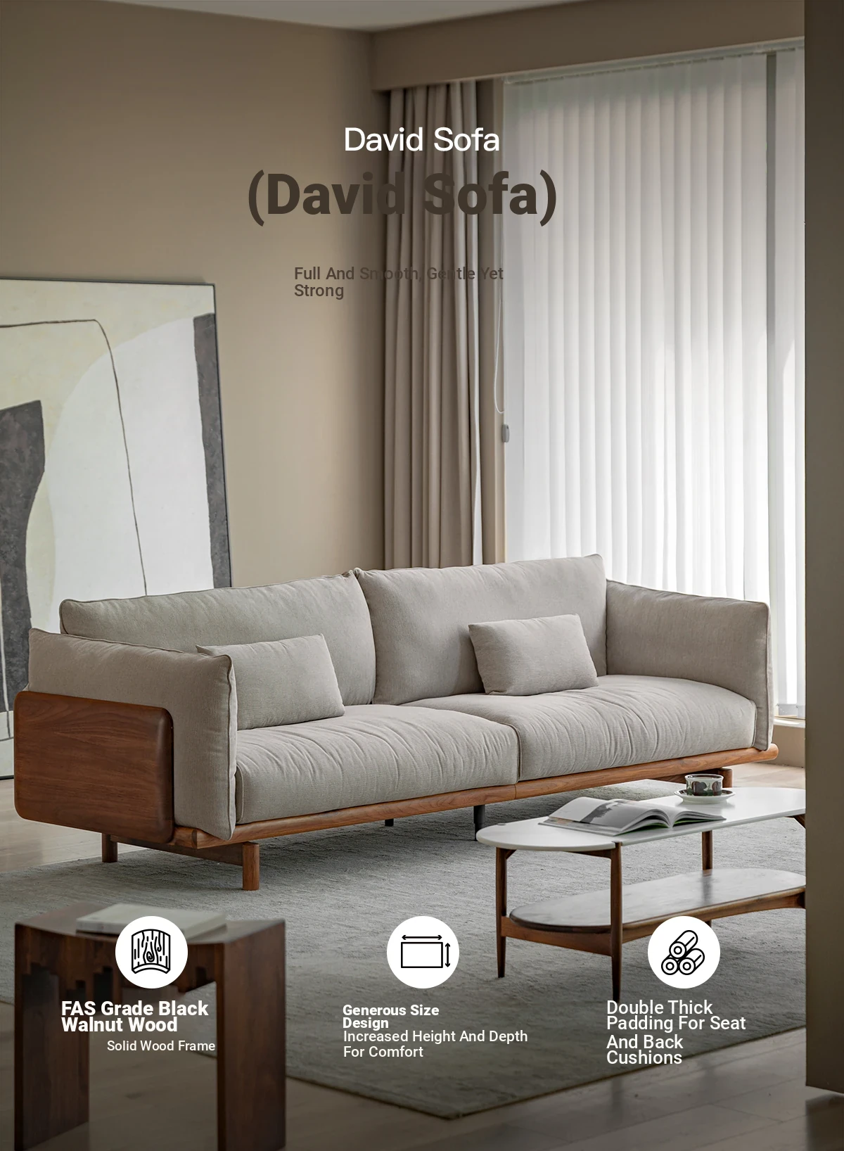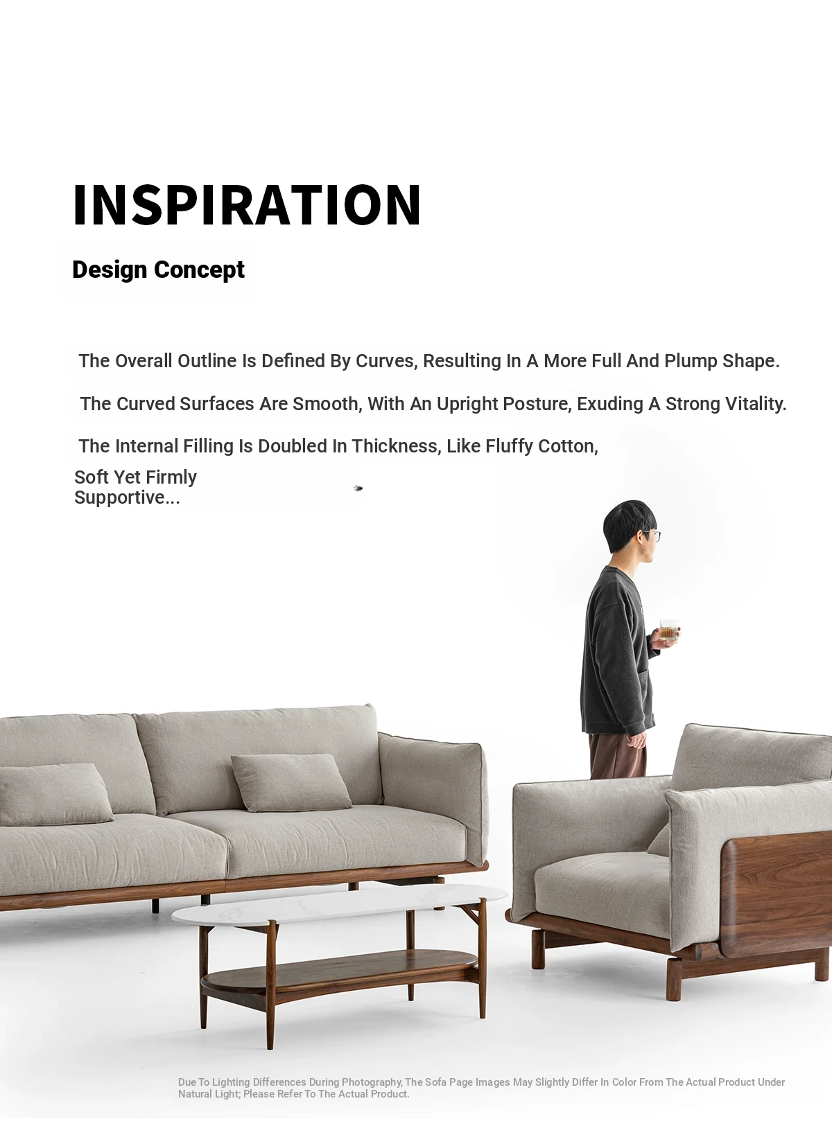 Nordic Style Solid Wood Fabric Sofa - Walnut Finish, Minimalist 3-Seater Living Room Combination by Liangnian Furniture - Perfect for Modern Homes