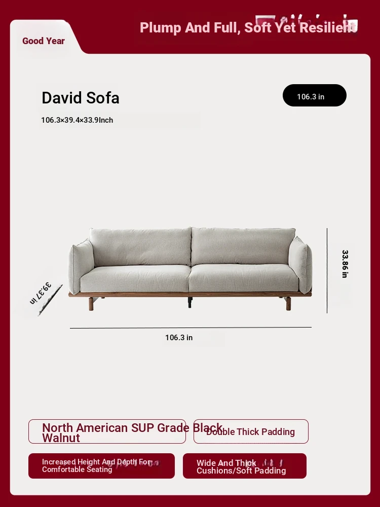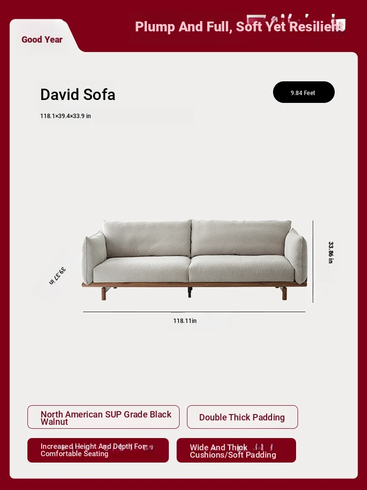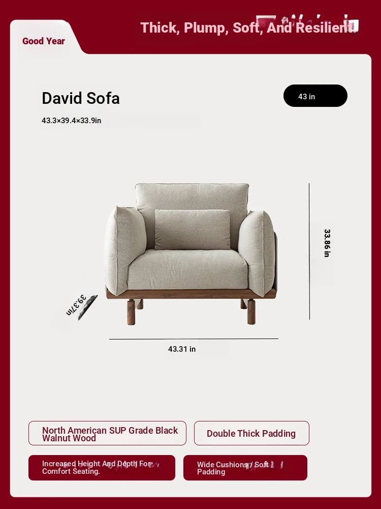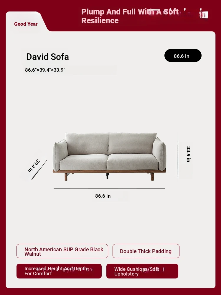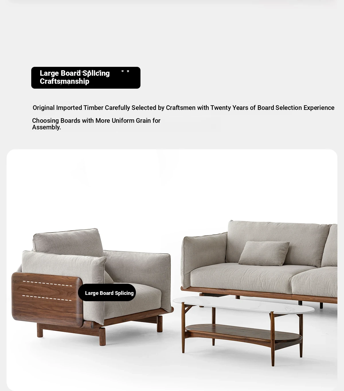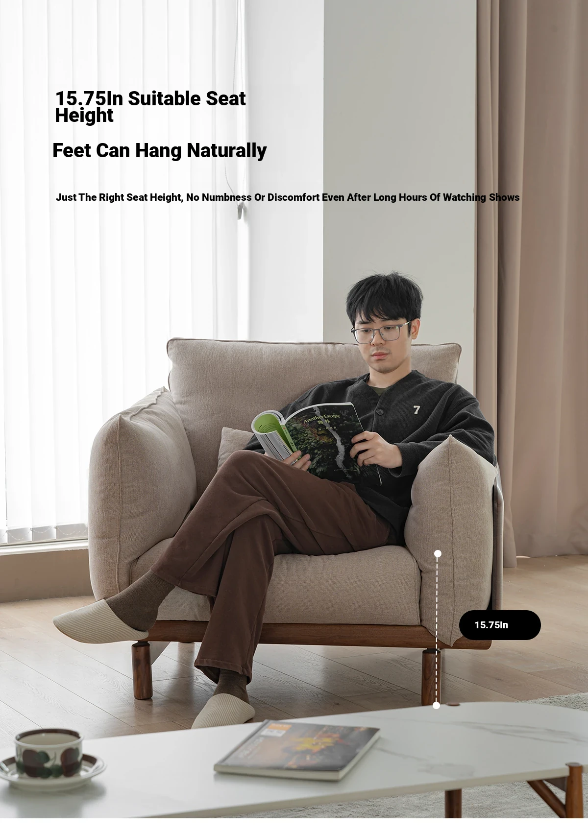 Nordic Style Solid Wood Fabric Sofa - Walnut Finish, Minimalist 3-Seater Living Room Combination by Liangnian Furniture - Perfect for Modern Homes