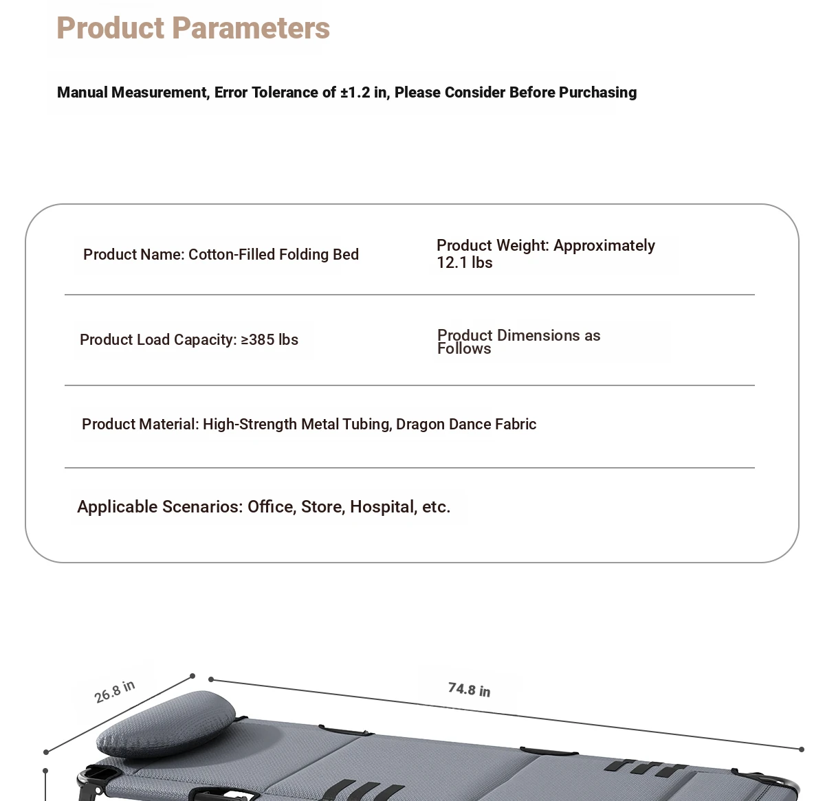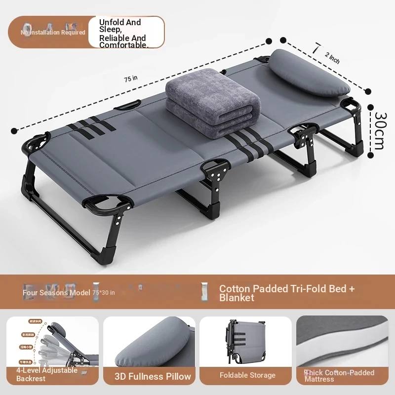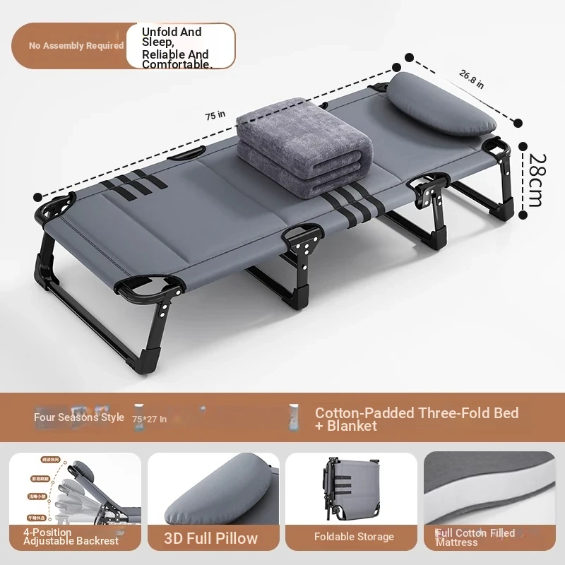 Upgrade "74.80in * 26.77in" three folding bed + blanket