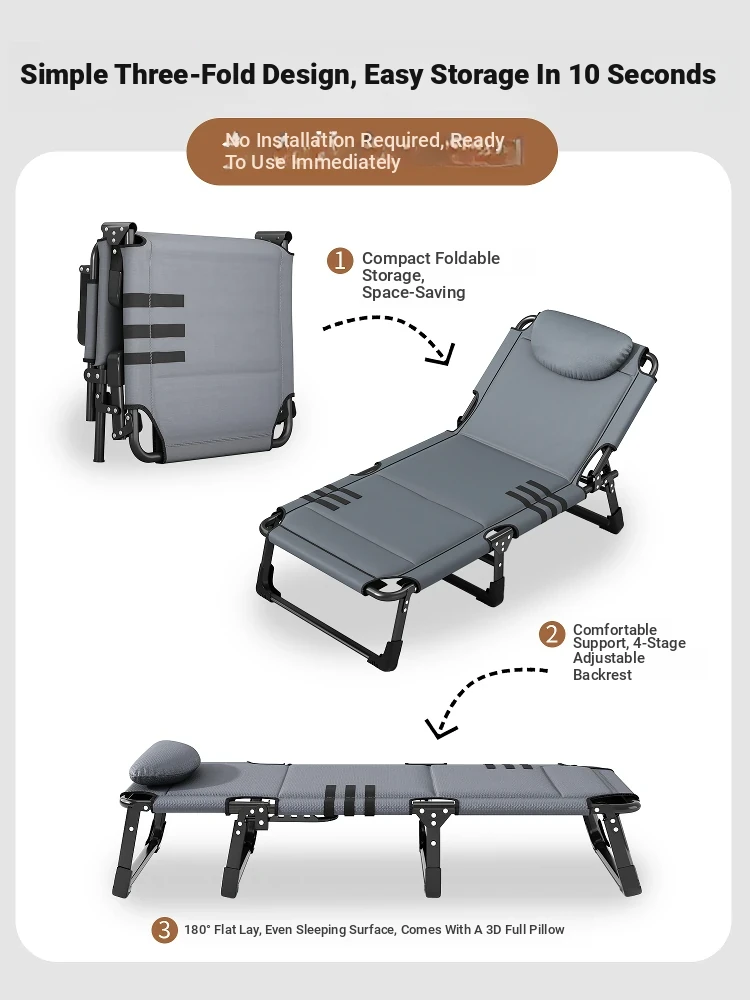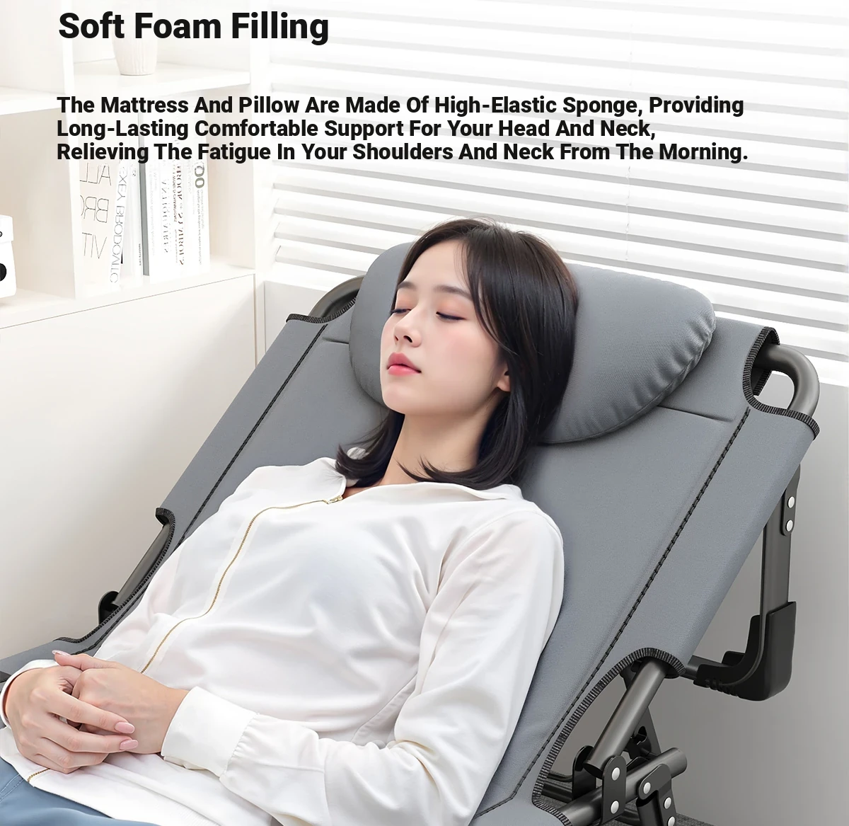 Portable Folding Bed for Office Napping - Lightweight Single Bed Chair for Midday Rest - Perfect Nap Solution for Working Professionals