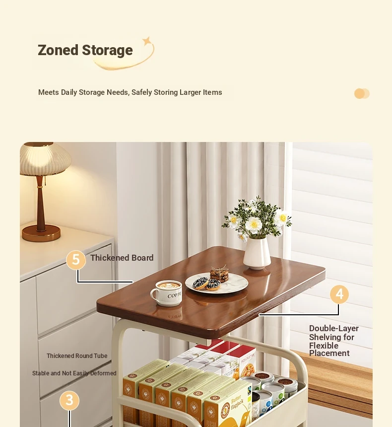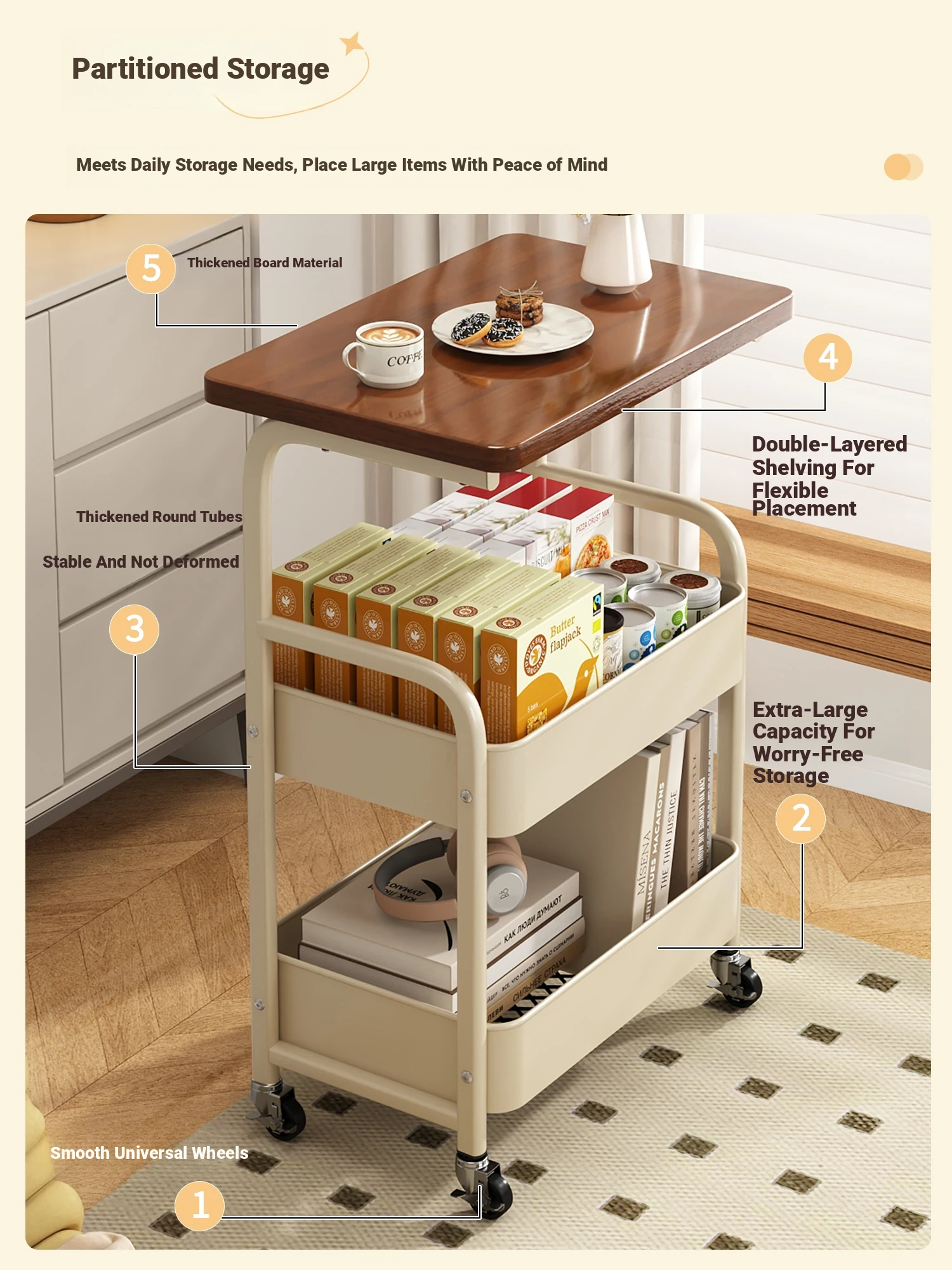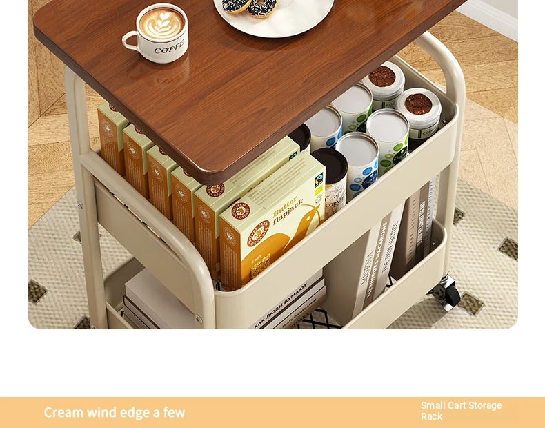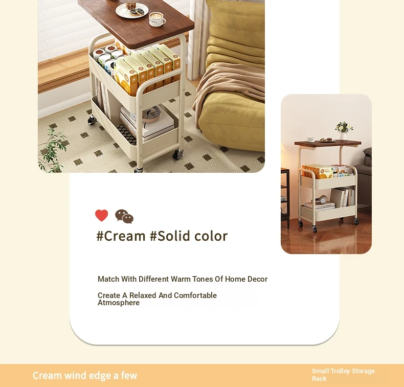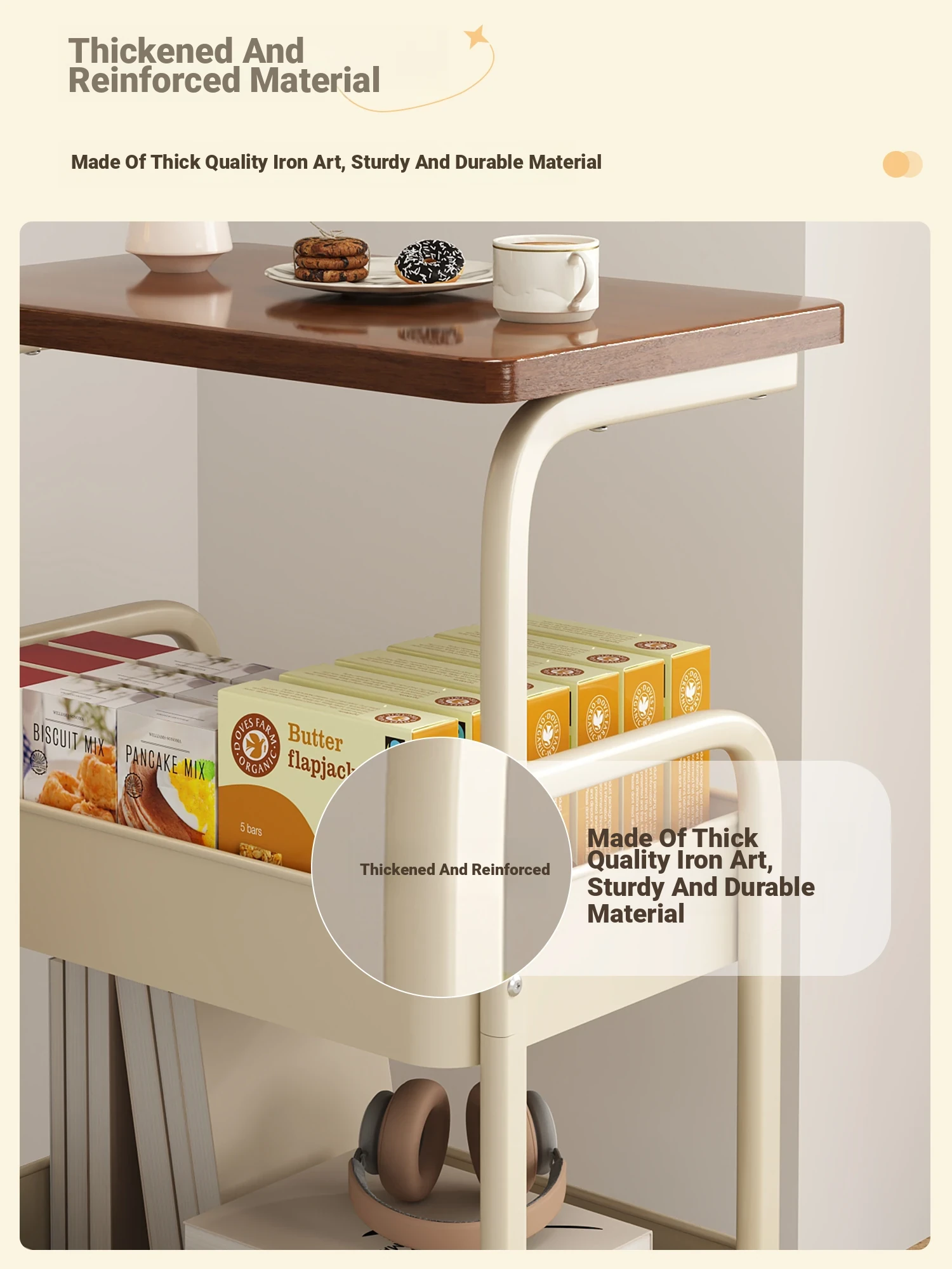 Portable Snack Cart - Stylish Cream Side Table for Living Room, Sofa, or Bedside Storage - Perfect for Organizing Snacks and Essentials!