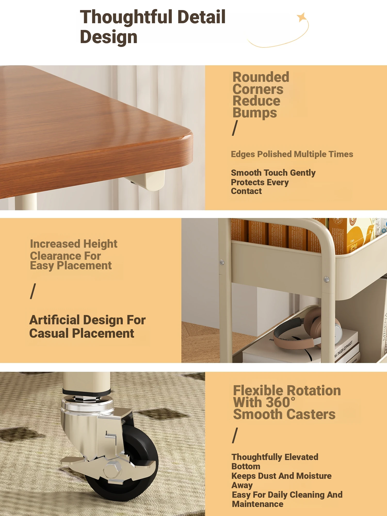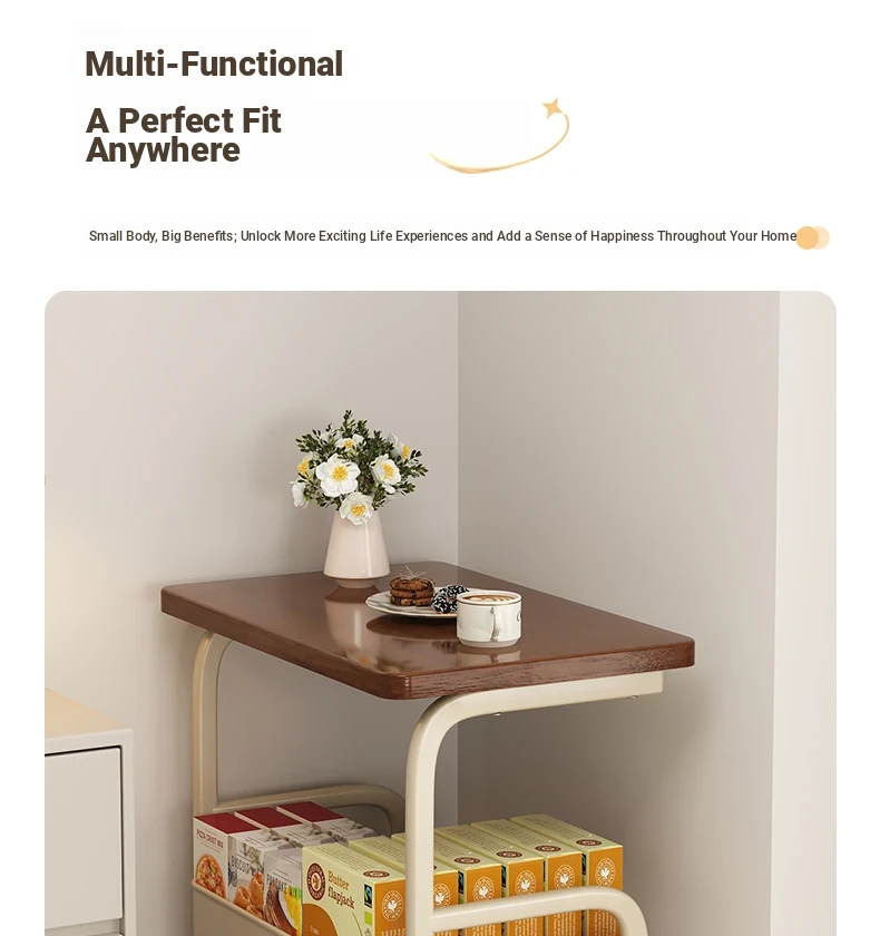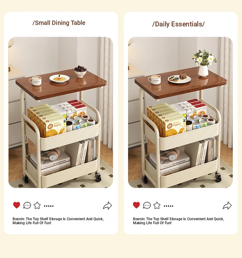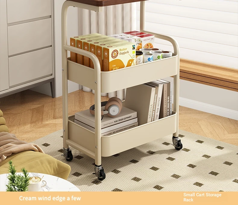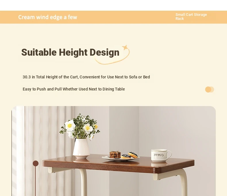 Portable Snack Cart - Stylish Cream Side Table for Living Room, Sofa, or Bedside Storage - Perfect for Organizing Snacks and Essentials!