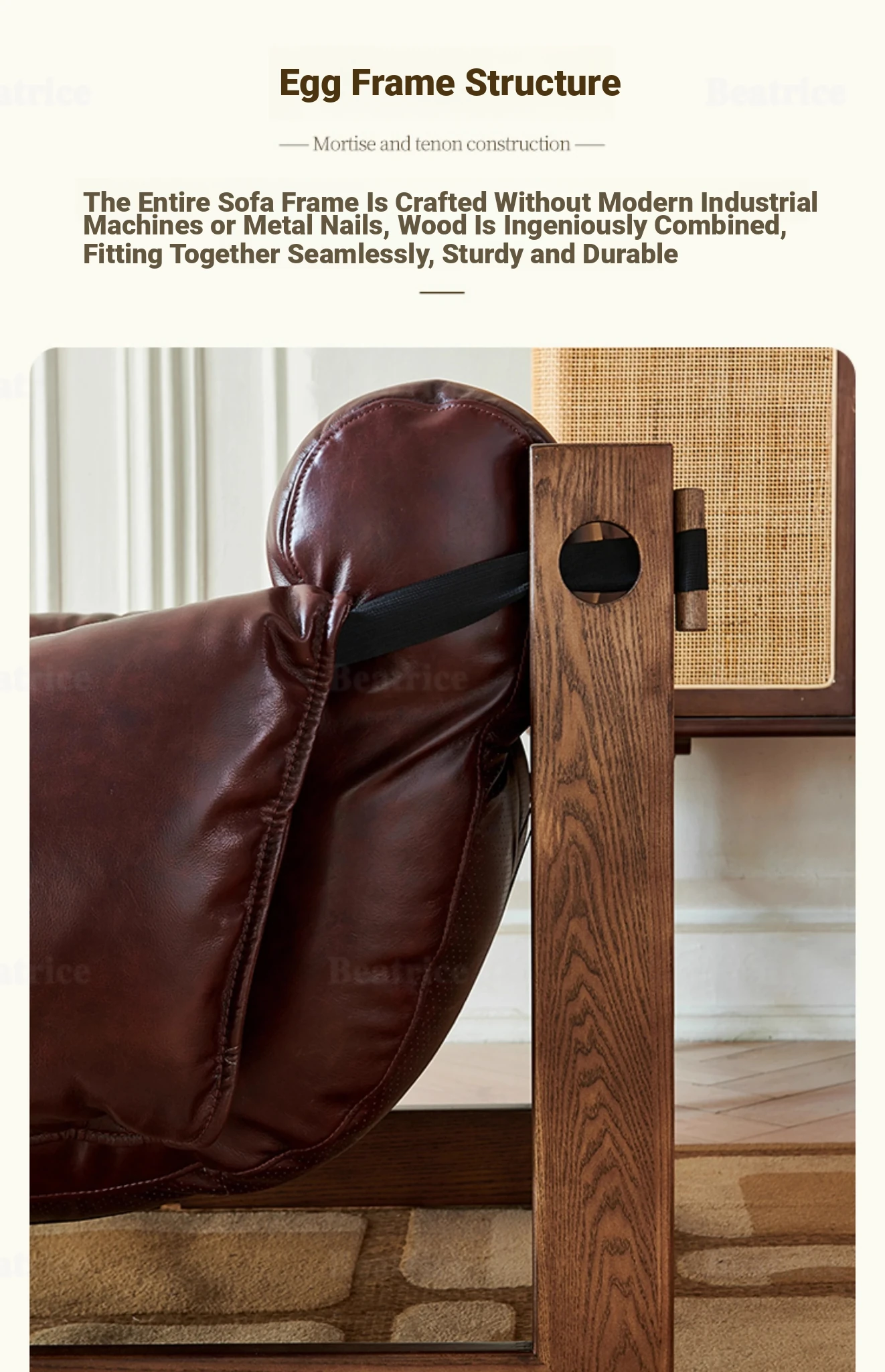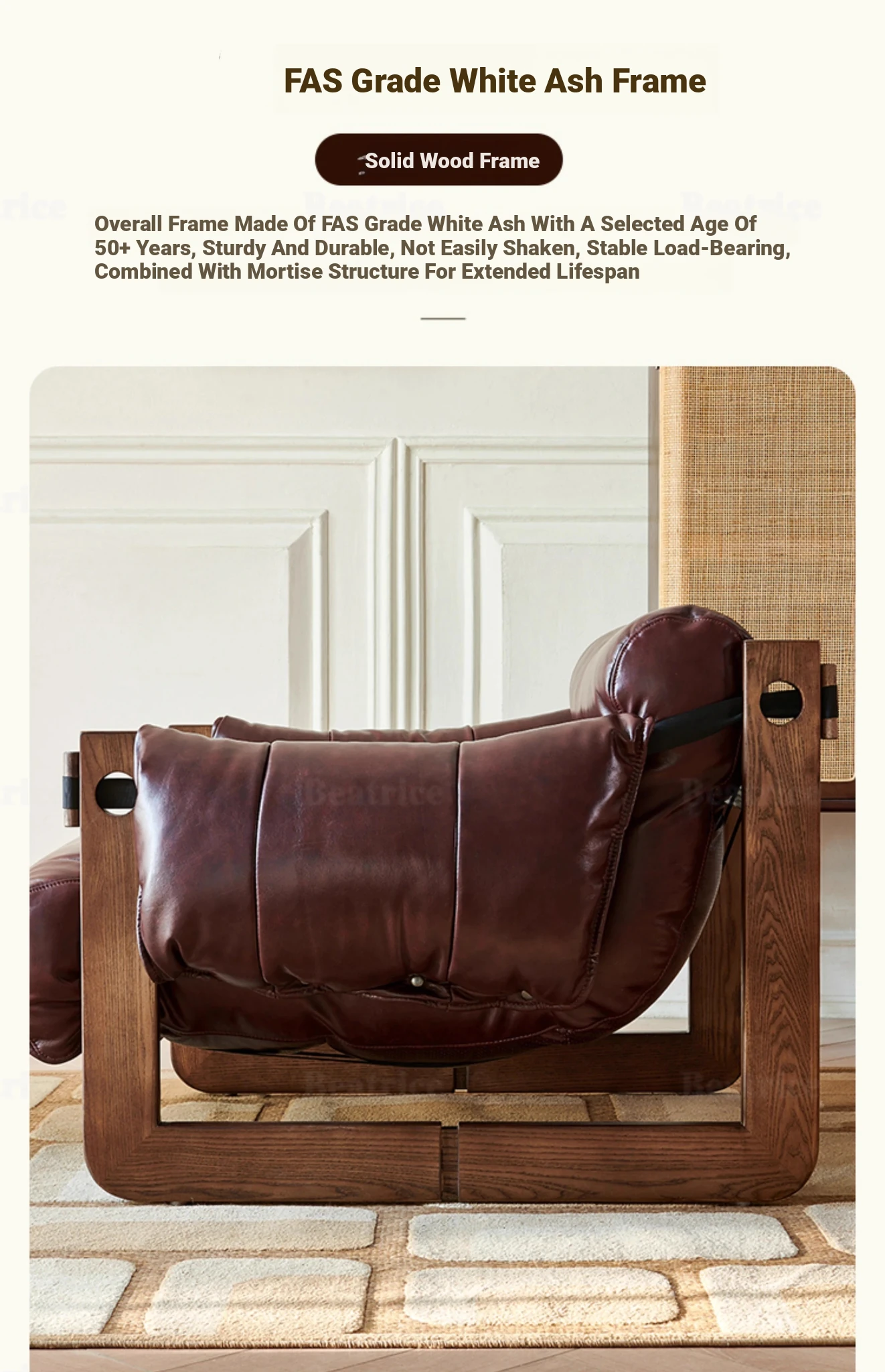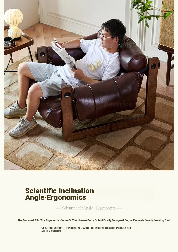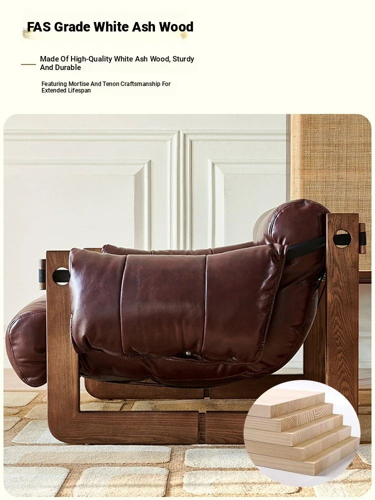 Scandinavian Vintage Jersey Island Armchair - Solid Wood Retro Designer Chair with Genuine Leather for Living Room, Bedroom, and Relaxation