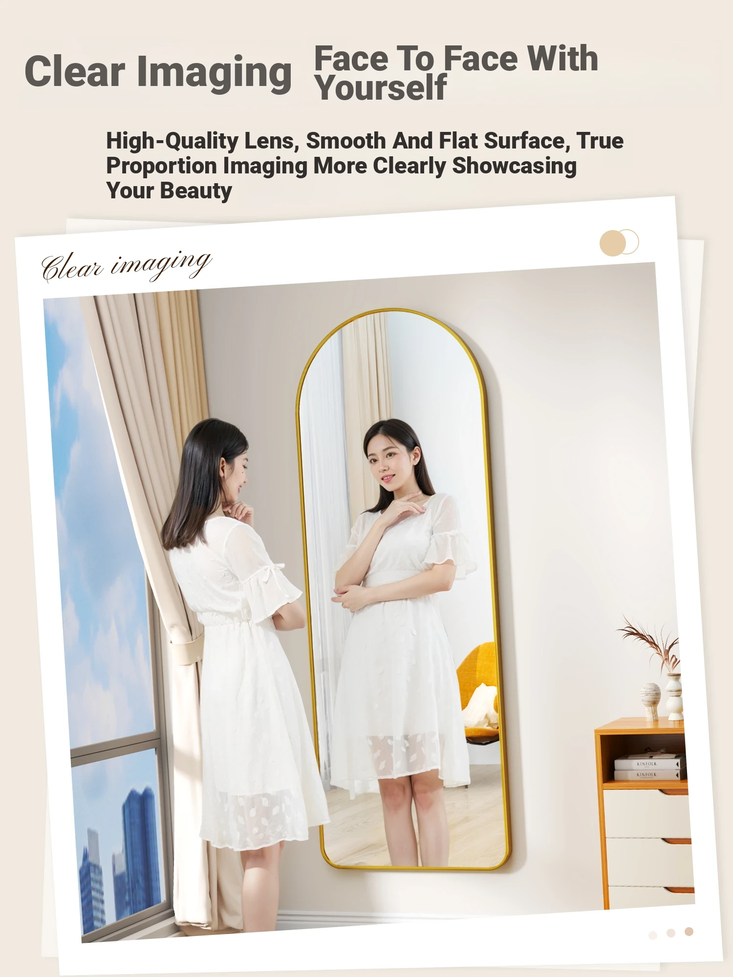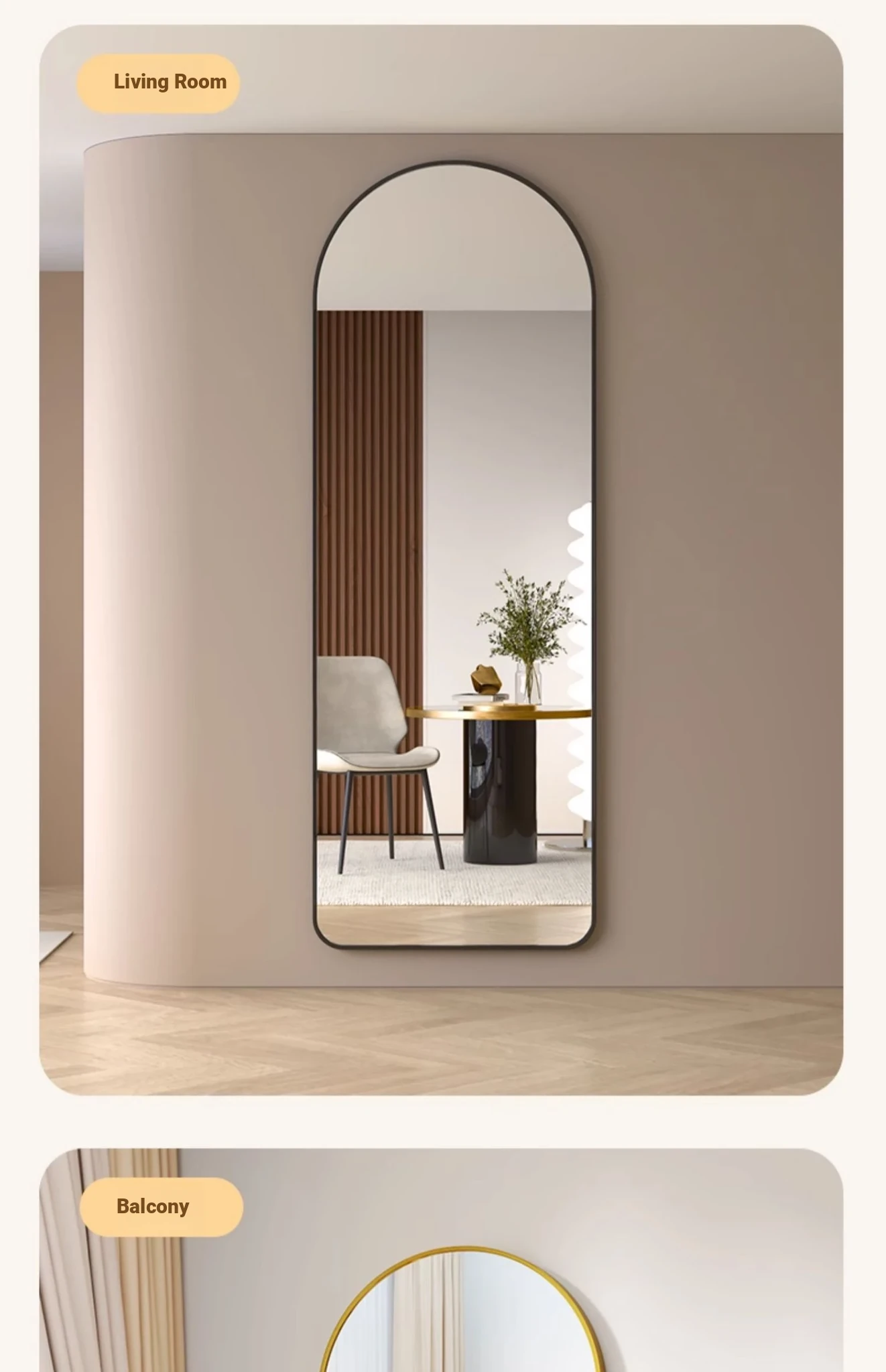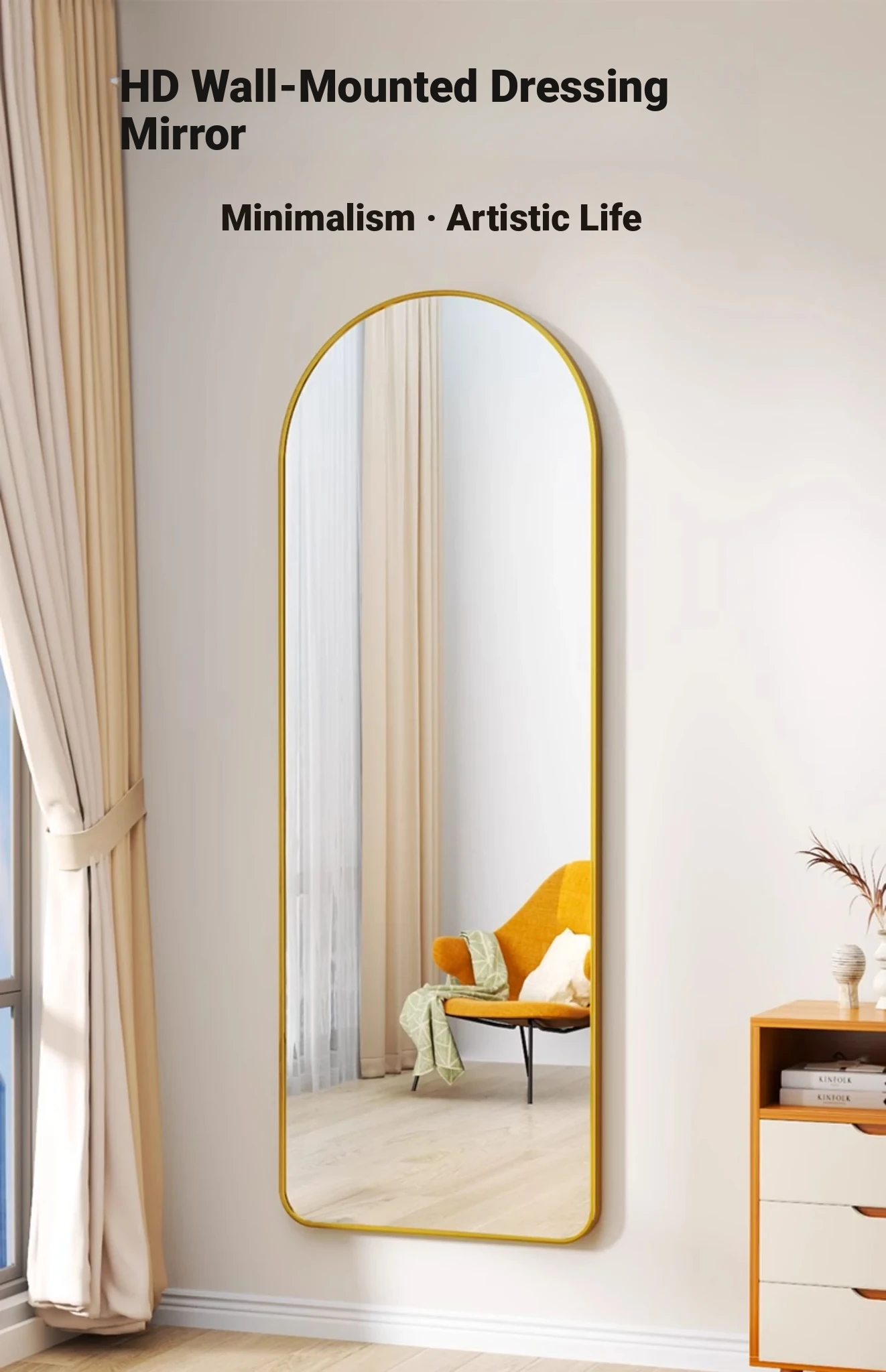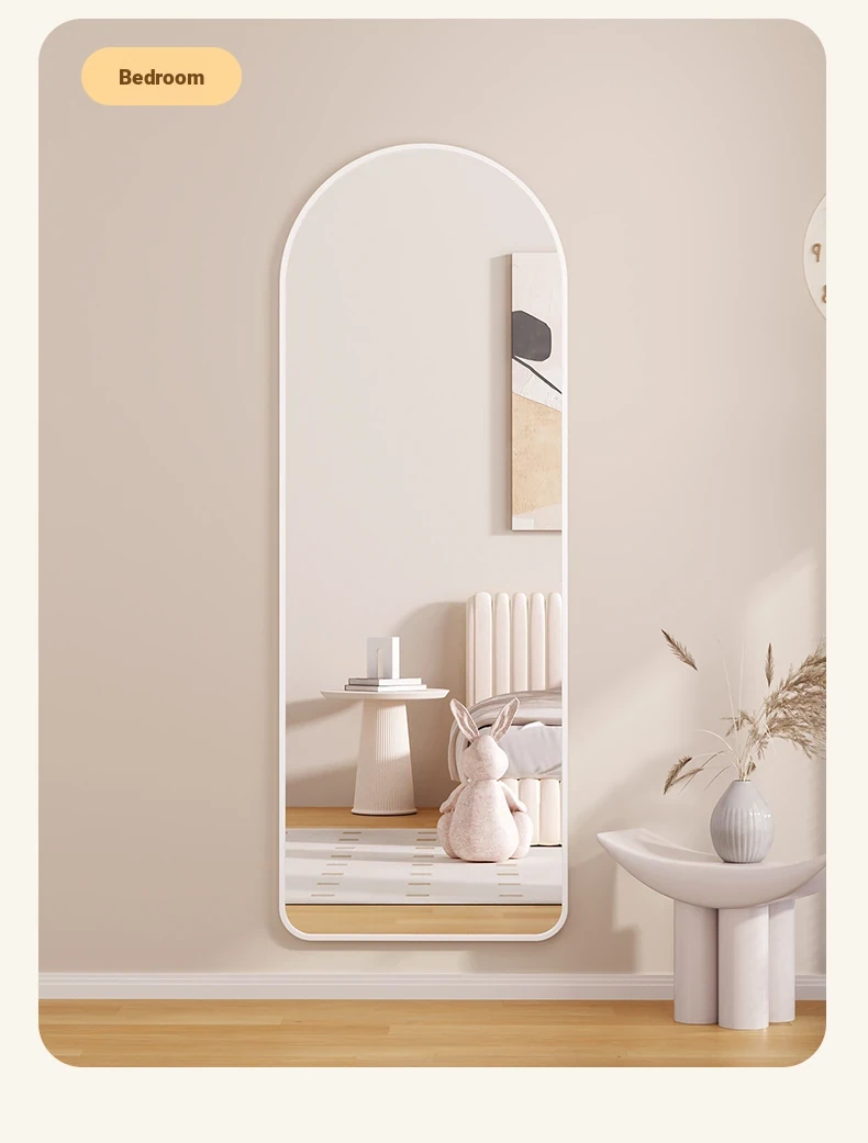 Self-Adhesive Wall-Mounted Aluminum Alloy Full-Length Mirror - No Drilling Required, Arched Design for Home Use, Perfect for Dressing Rooms and Bedrooms, Stylish and Space-Saving!