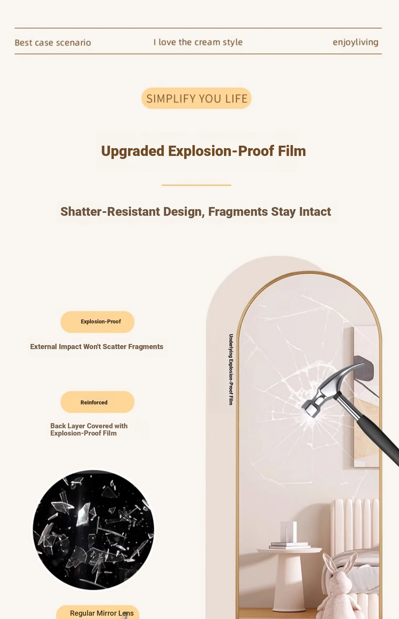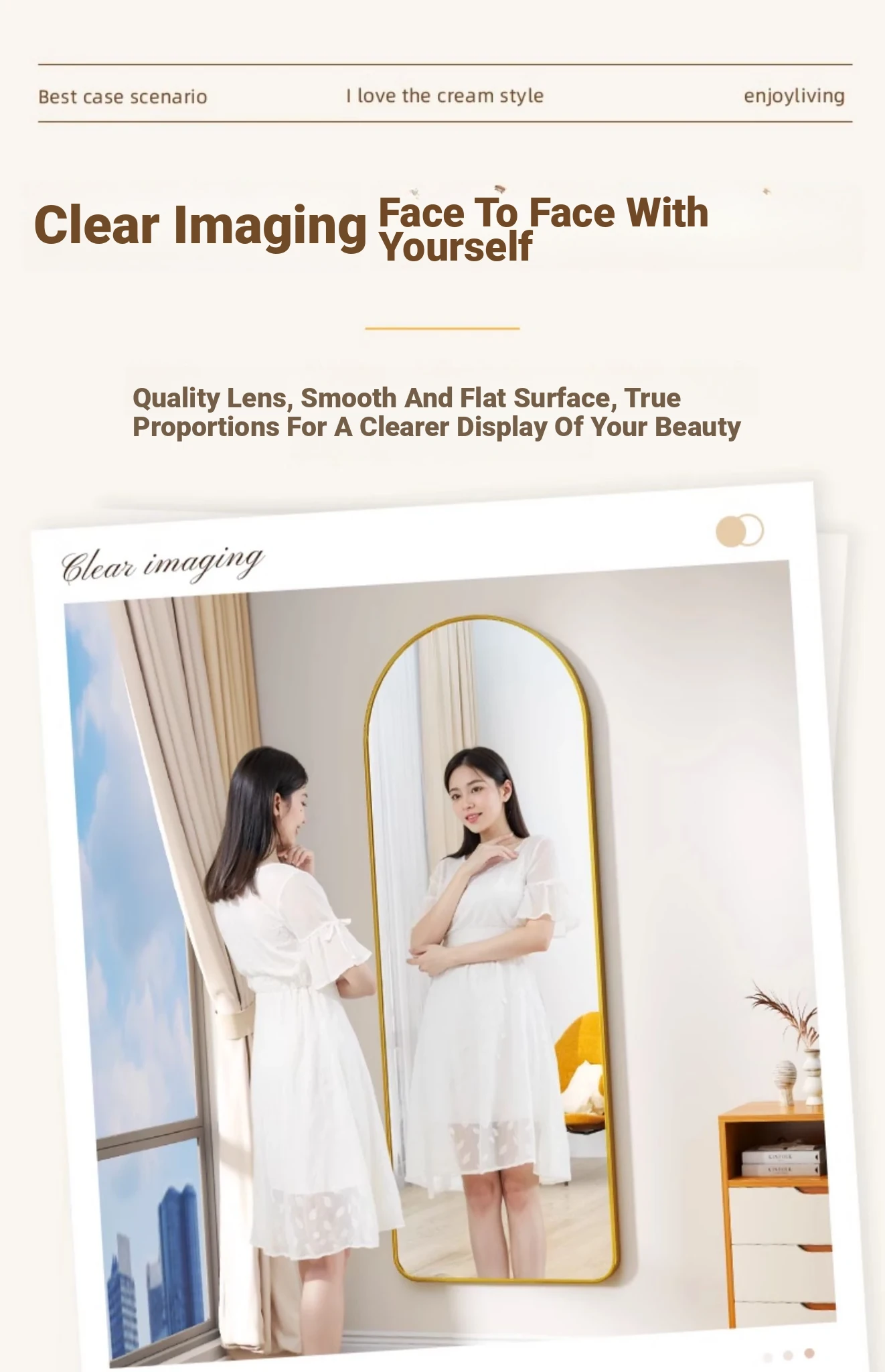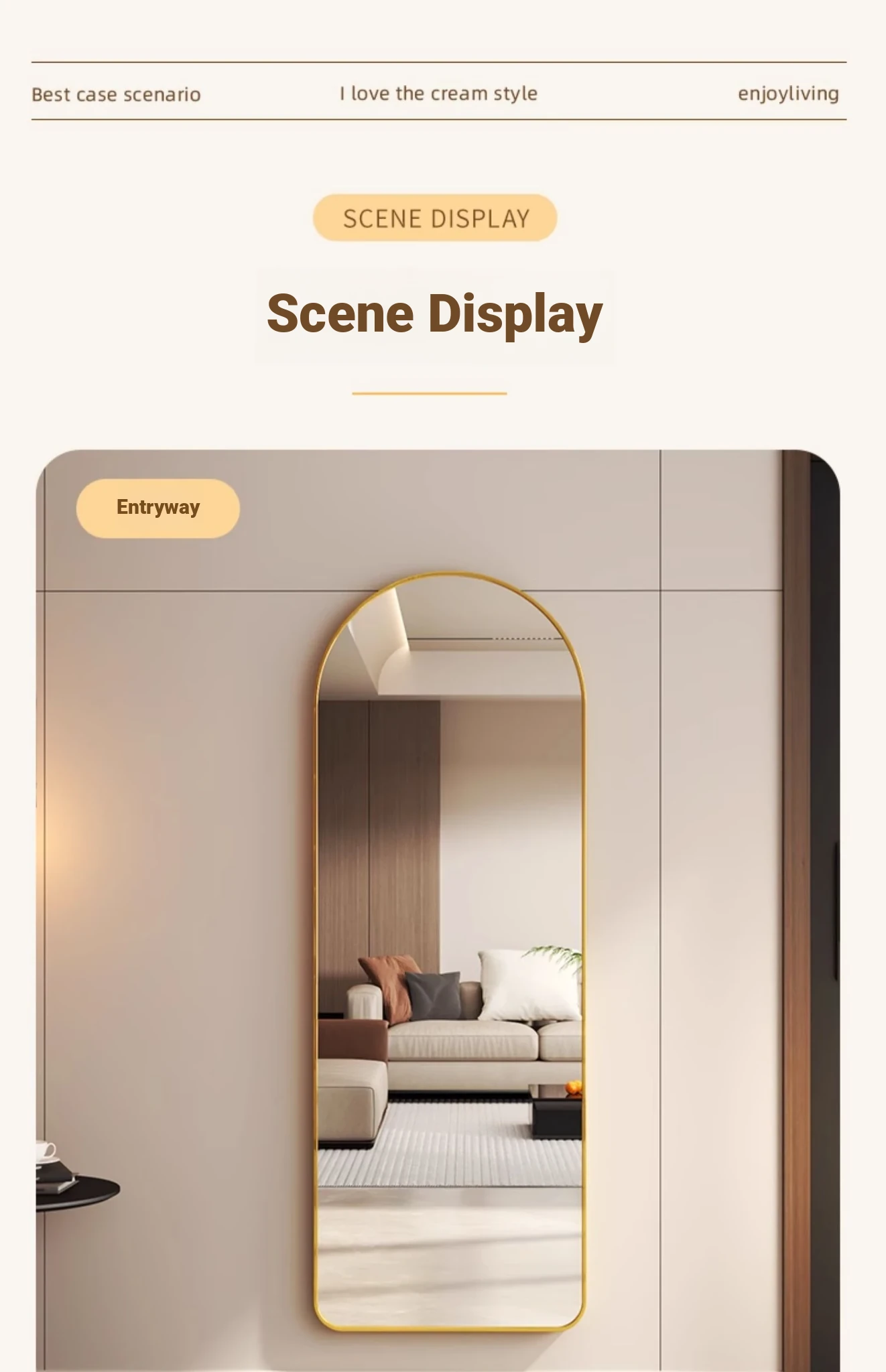 Self-Adhesive Wall-Mounted Aluminum Alloy Full-Length Mirror - No Drilling Required, Arched Design for Home Use, Perfect for Dressing Rooms and Bedrooms, Stylish and Space-Saving!