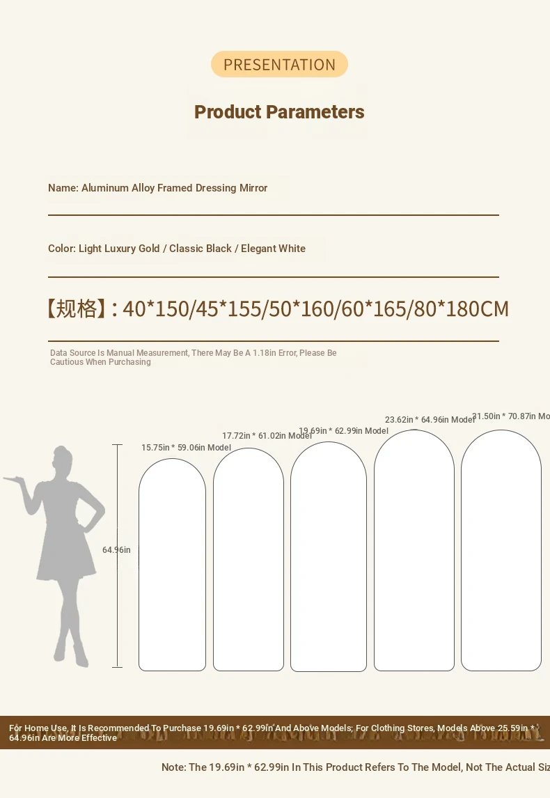 [Aluminum Alloy Frame] Accessible Luxury Gold 60*165 [No Drilling/Wall Hanging Dual Use]]