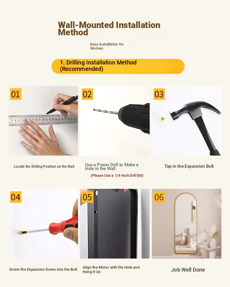 [Aluminum Alloy Frame] Silver 60*165 [No Drilling/Wall Hanging Dual Use]]