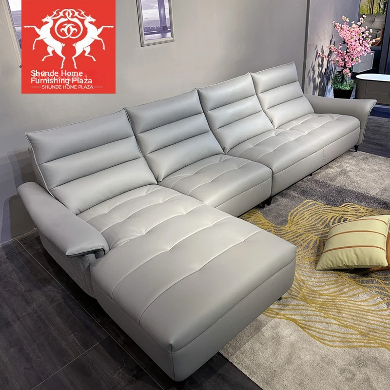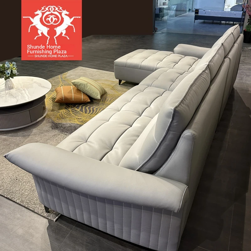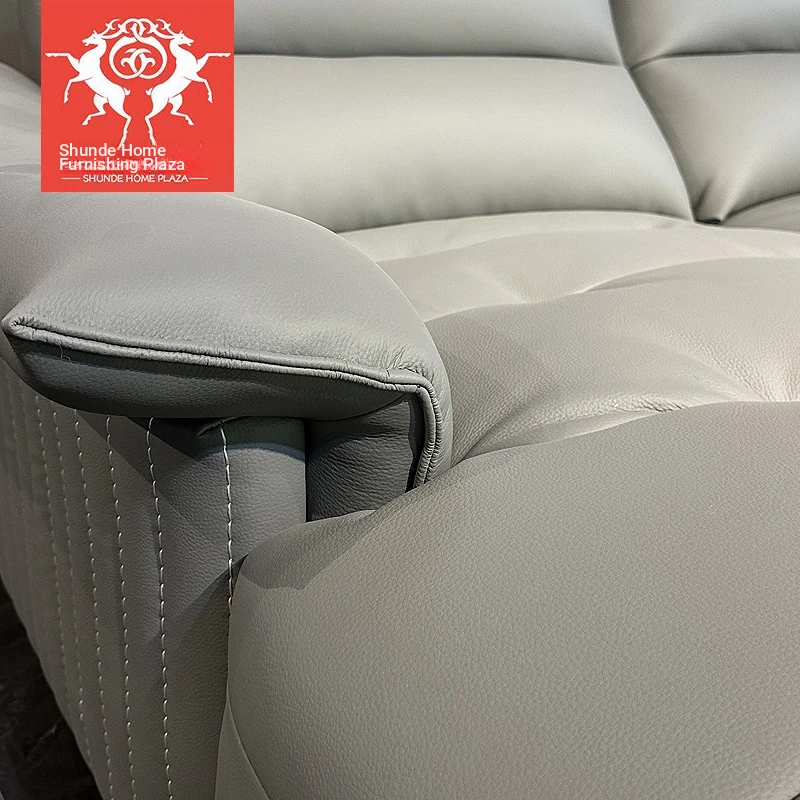 Shunde Home Plaza Modern Top-Grain Leather Sofa - Stylish and Casual Scandinavian-Style Sofa for Small Spaces
