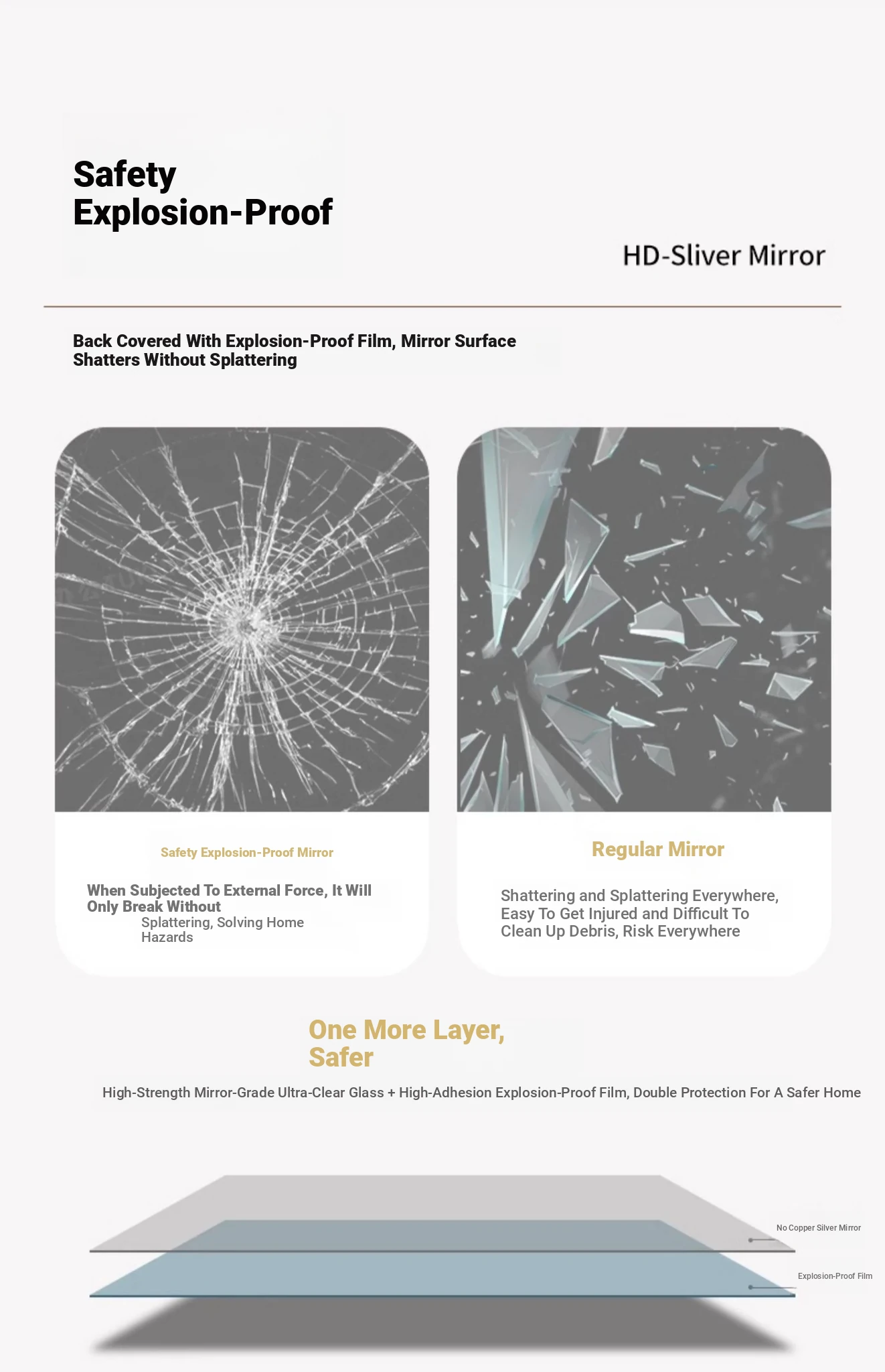 [HD Explosion-proof 0.20in Copper-free Silver Mirror] 35.5*40 [No Punch]]