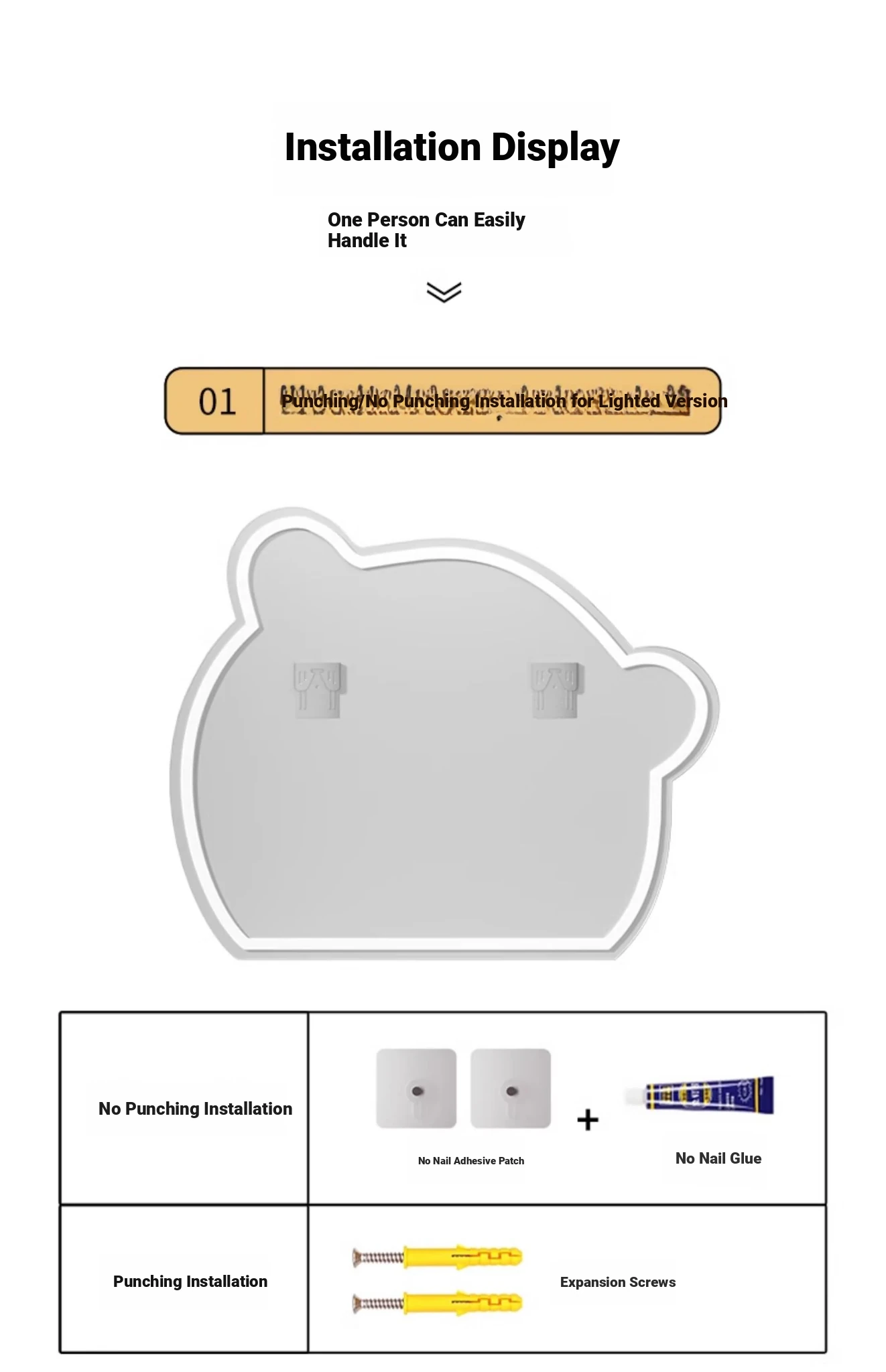 [Three-light color + stepless diining] 29.53in*39.37in [punch-free HD explosion-proof ultra-white]]