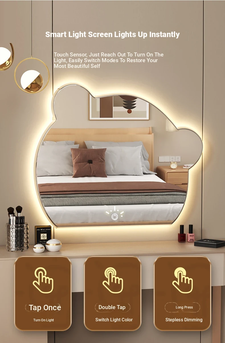 Smart LED Makeup Mirror with Lights - Wall-Mounted or Desktop Vanity Mirror for Home Use, Perfect for Bedroom Grooming and Beauty Routines.