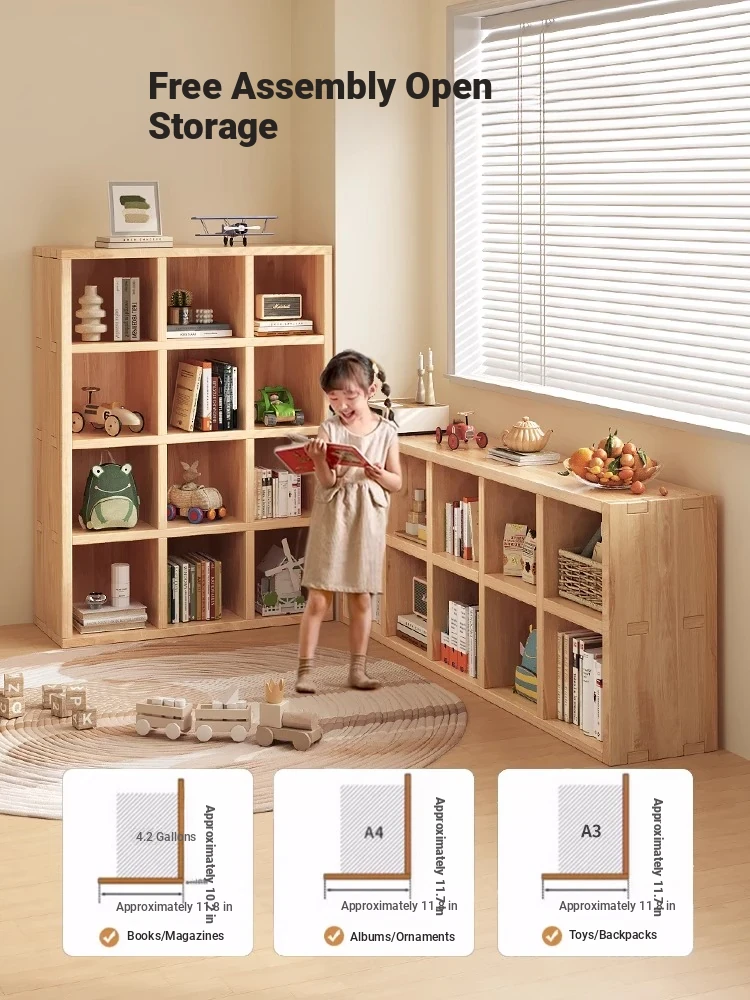 Solid Wood Bay Window Bookshelf - Multi-Layer Floor Storage Rack for Bedroom, Windowsill Organizer with Versatile Cubes - Simple and Stylish Bookcase for Efficient Clutter Management