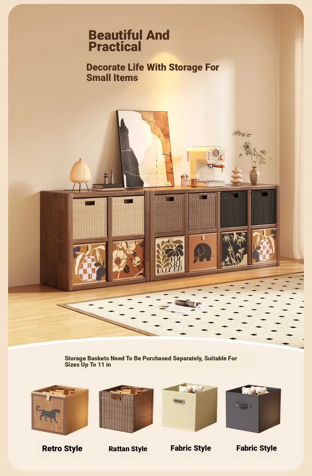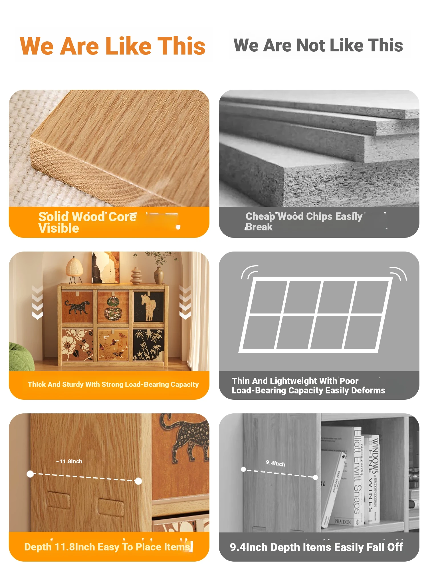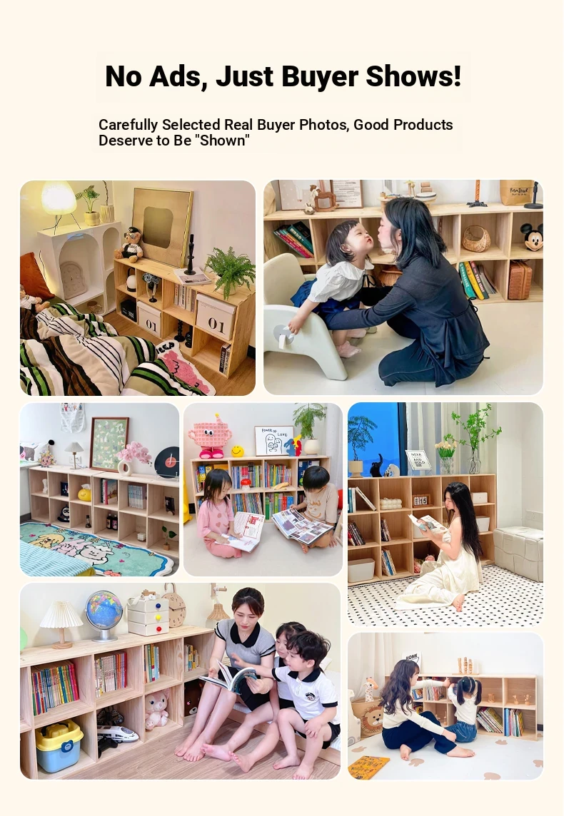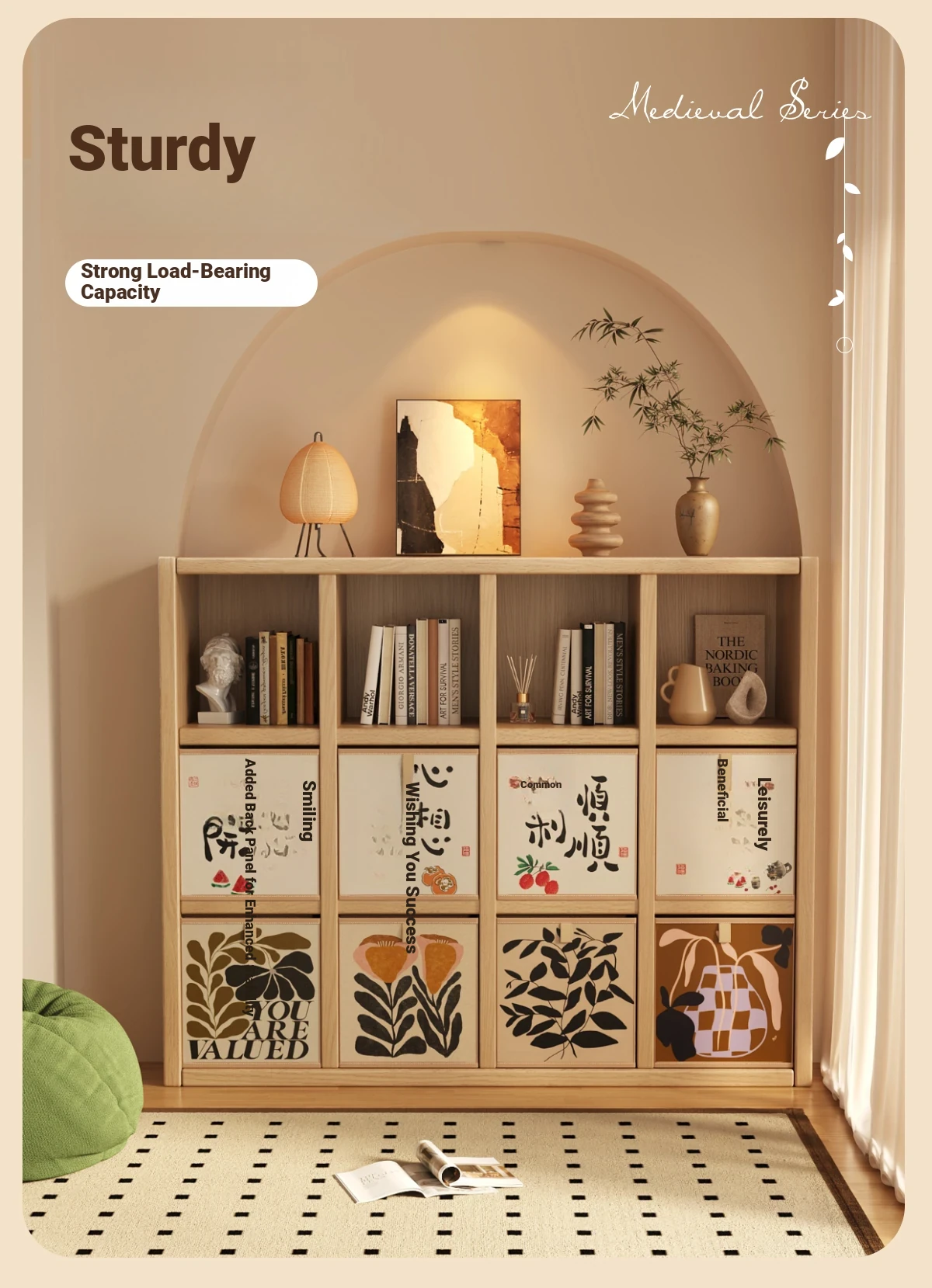 Solid Wood Grid Bookcase - Versatile Floor-standing Storage Shelf for Living Room, Multi-layered Organizer, Wall-mounted Design, Customizable Book Cabinet for Home Use