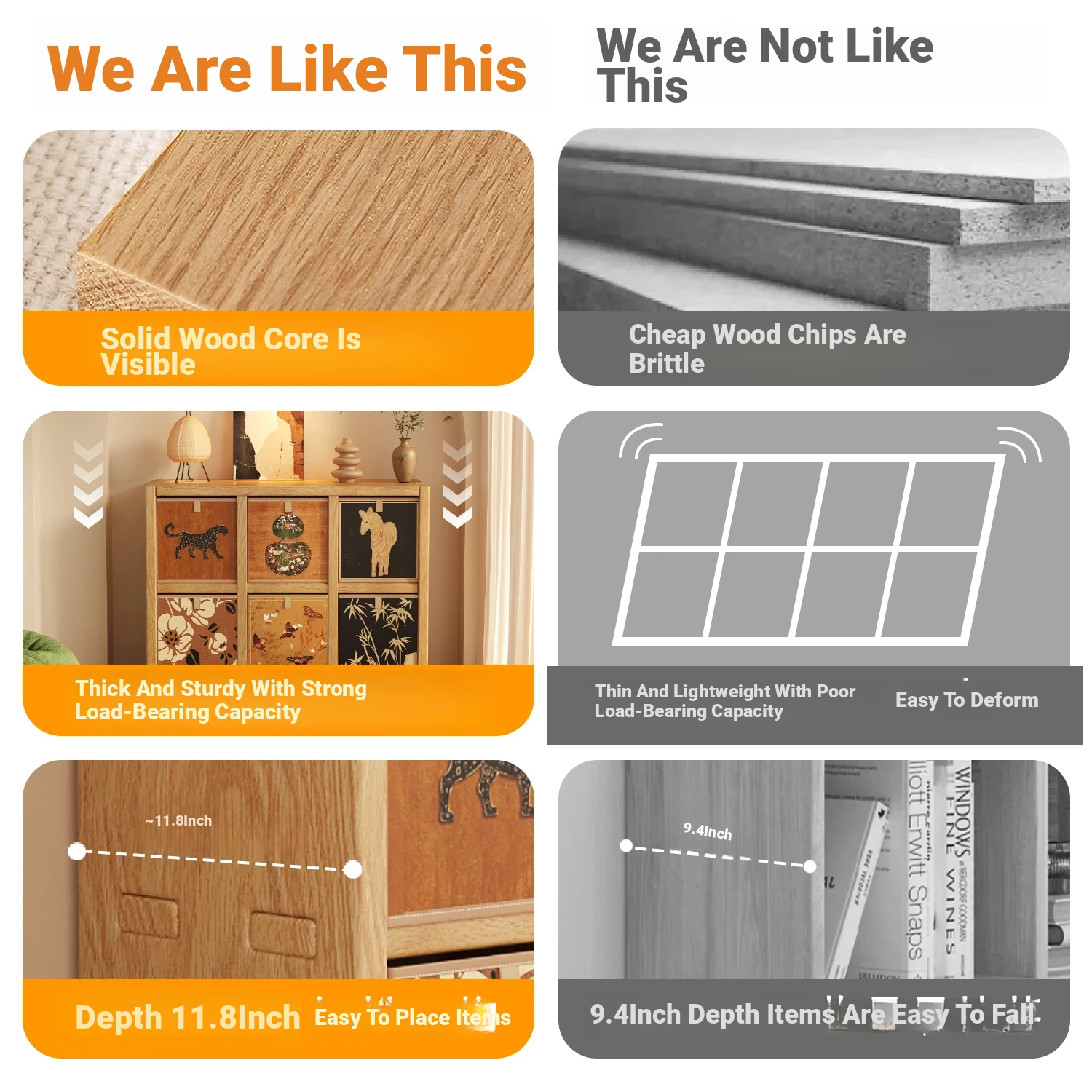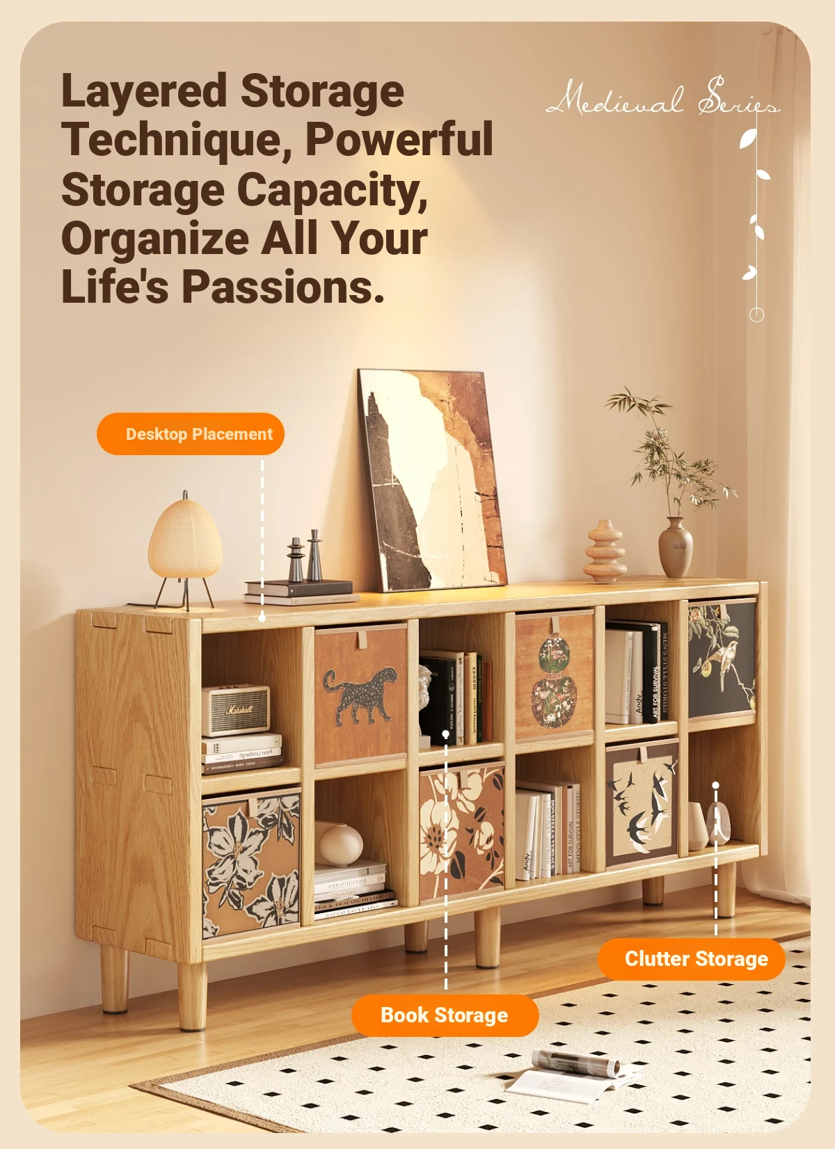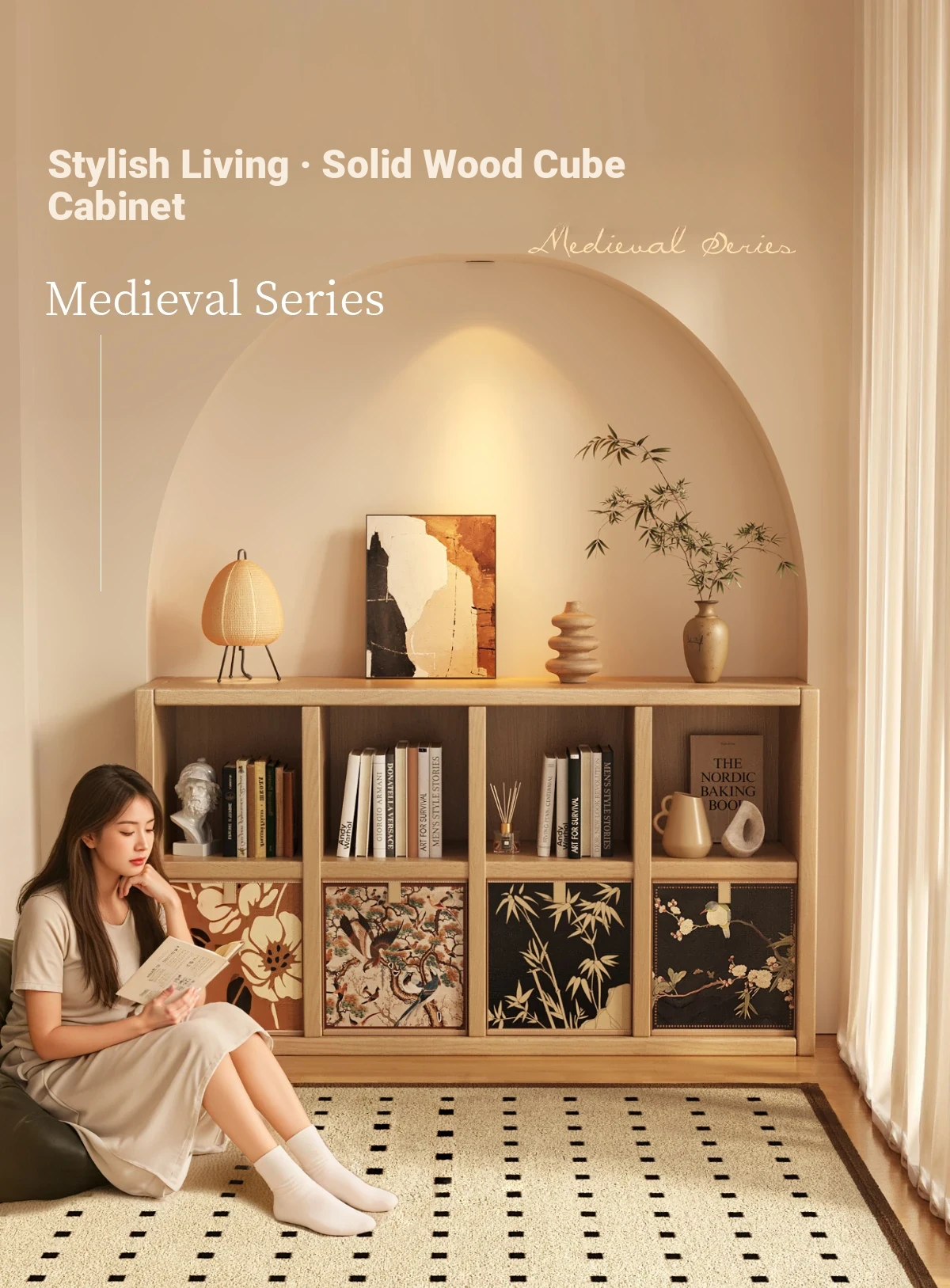 Solid Wood Grid Bookcase - Versatile Floor-standing Storage Shelf for Living Room, Multi-layered Organizer, Wall-mounted Design, Customizable Book Cabinet for Home Use