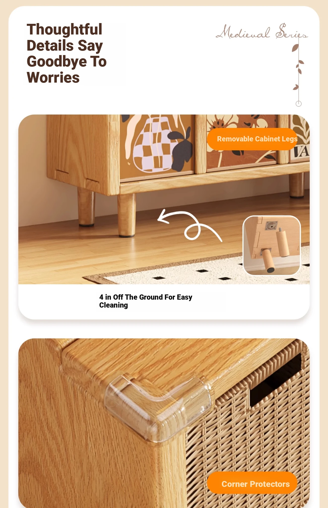 With cabinet legs⭐Double 6/35.43in*11.81in*27.56in/log color