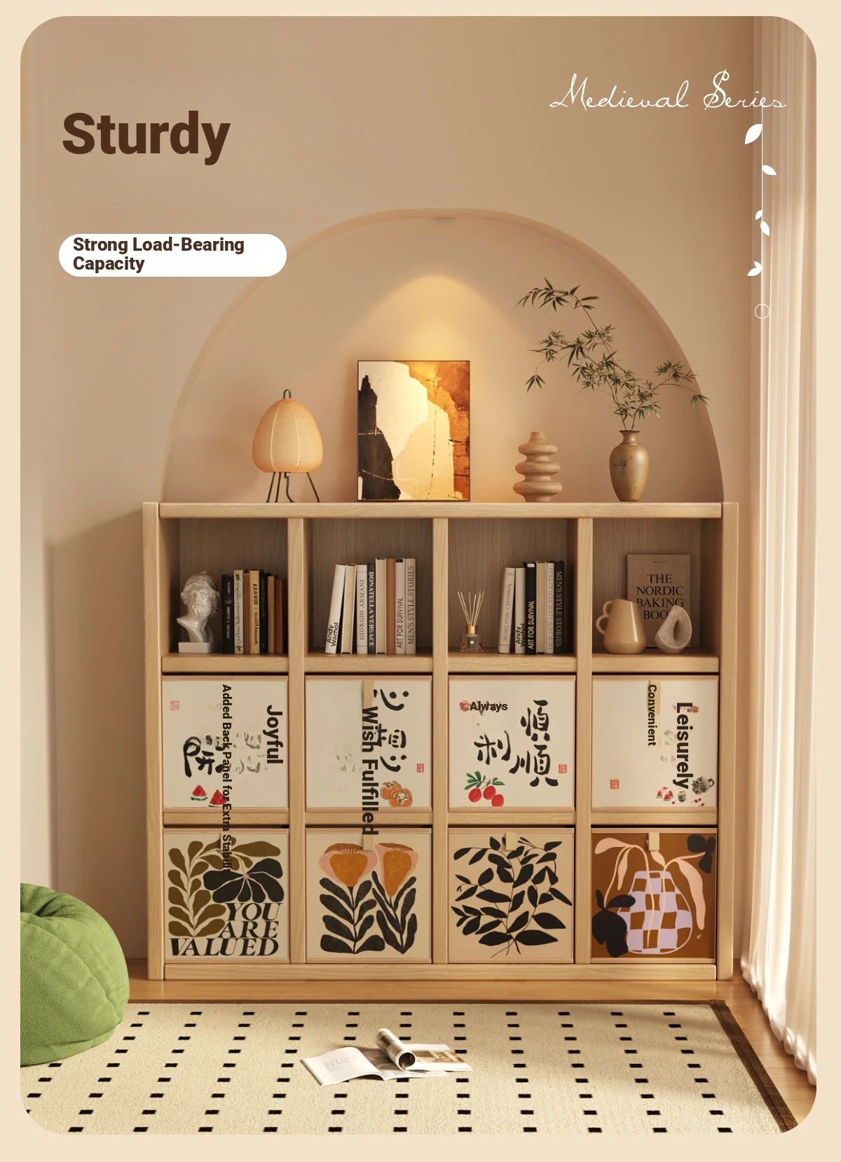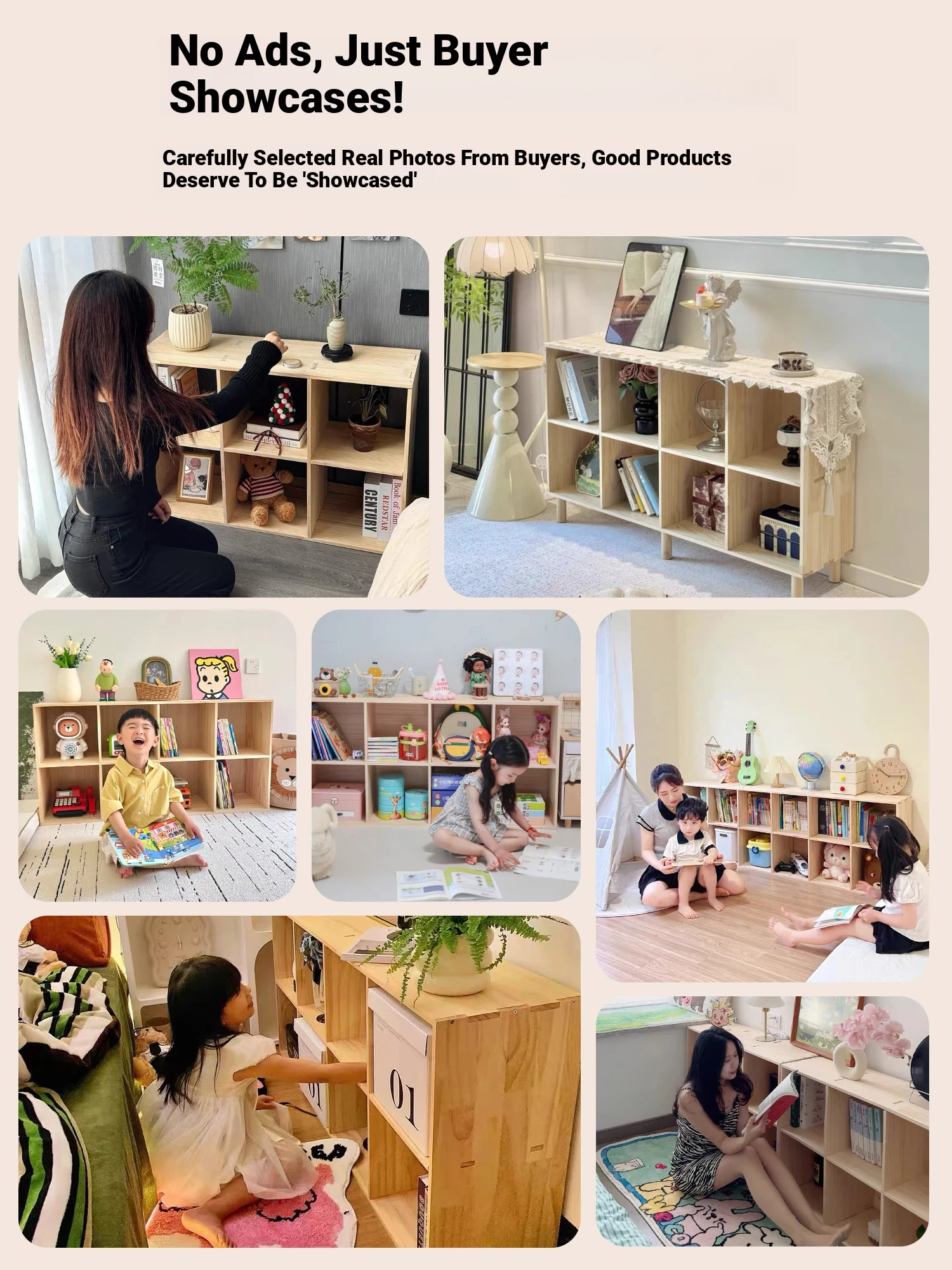 Solid Wood Grid Bookshelf - Freestanding Storage Rack with 8 Cubes, Perfect for Kindergarten! Wall-Mounted, Simple Design for Easy Organization and Storage. Ideal for Kids' Rooms and Play Areas!