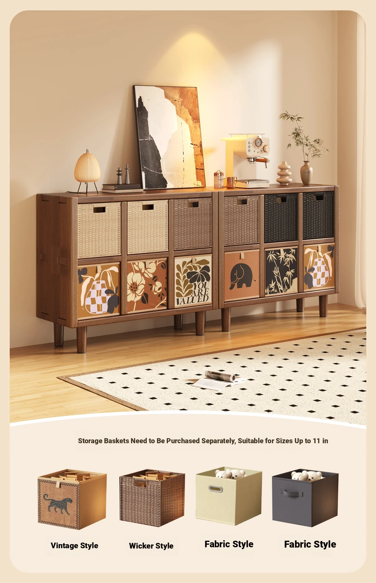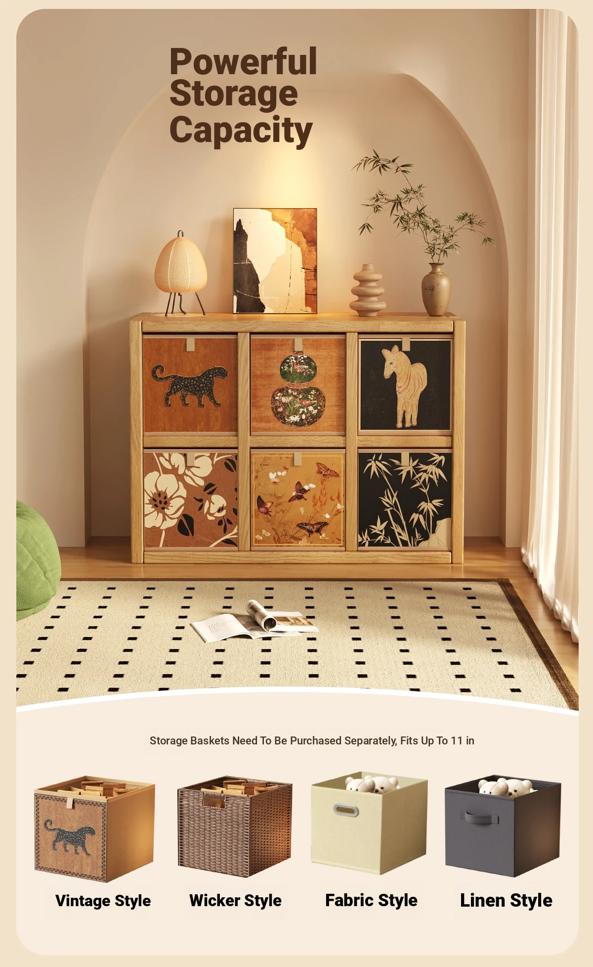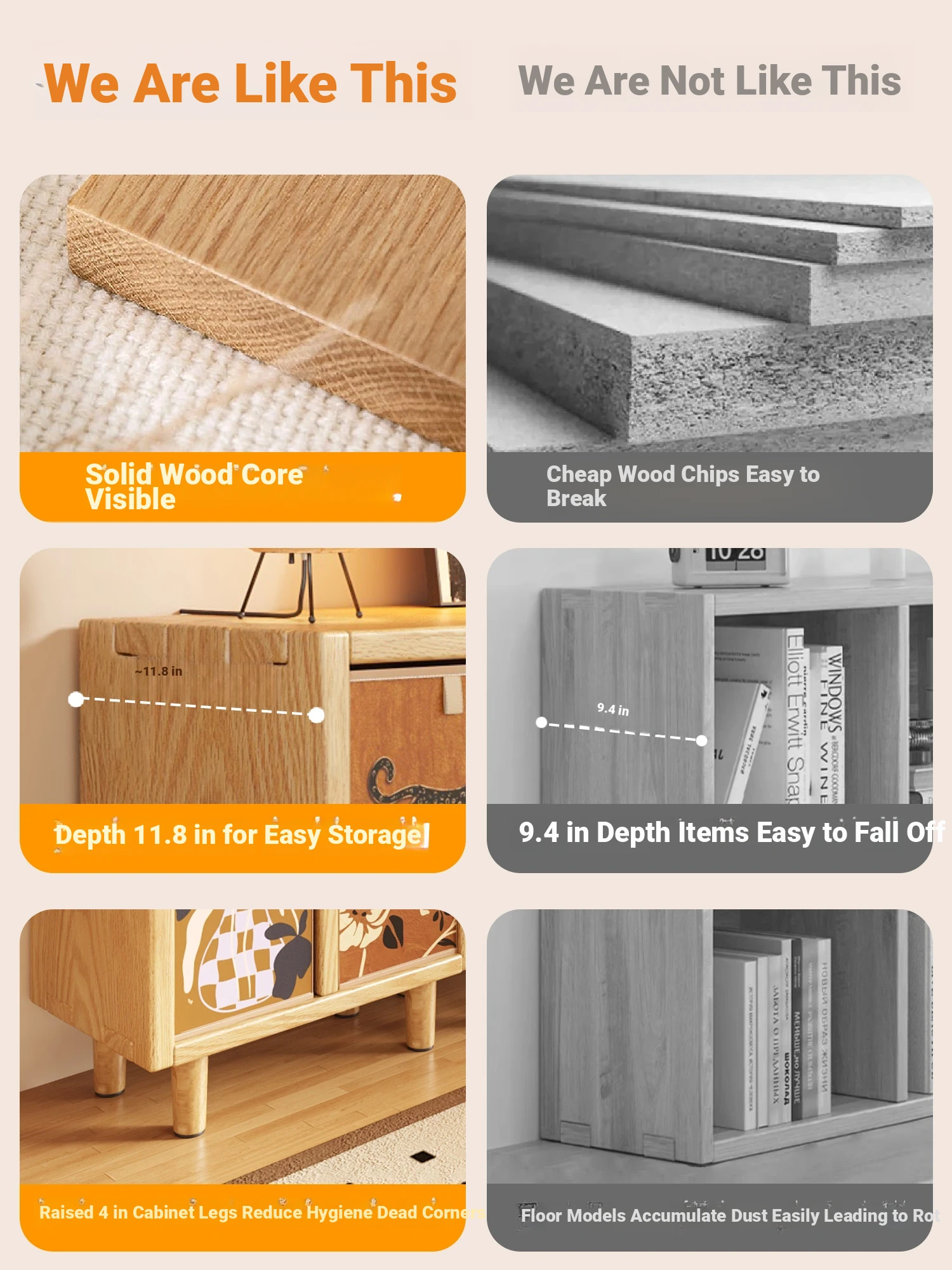 2 layers plus Cabinet legs⭐All solid wood 6 grid/35.43in*11.81in*27.56in/anti-collision angle cover