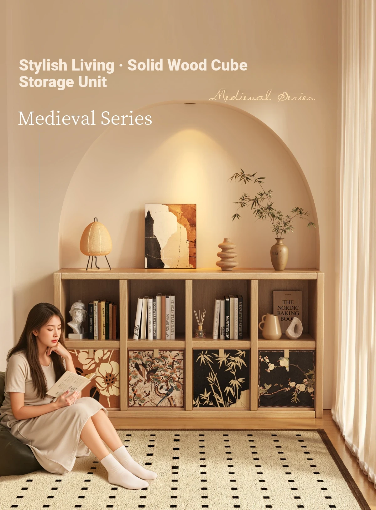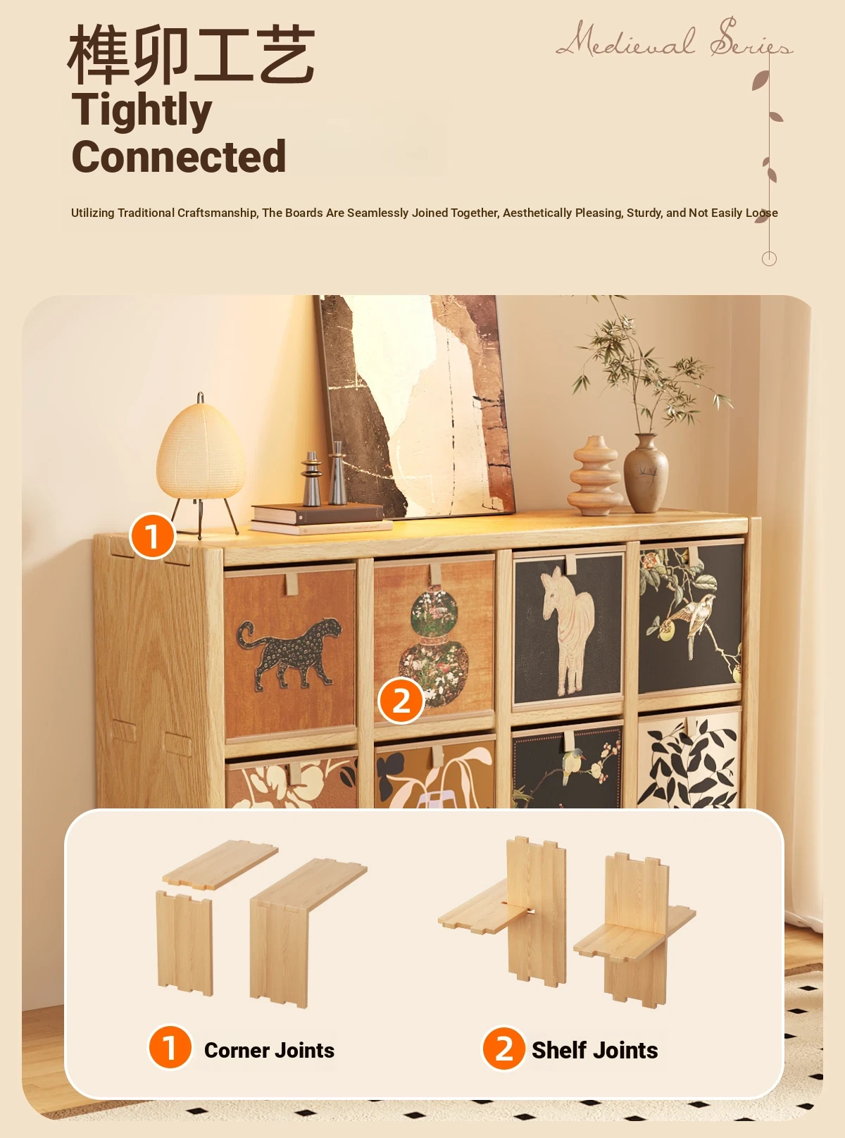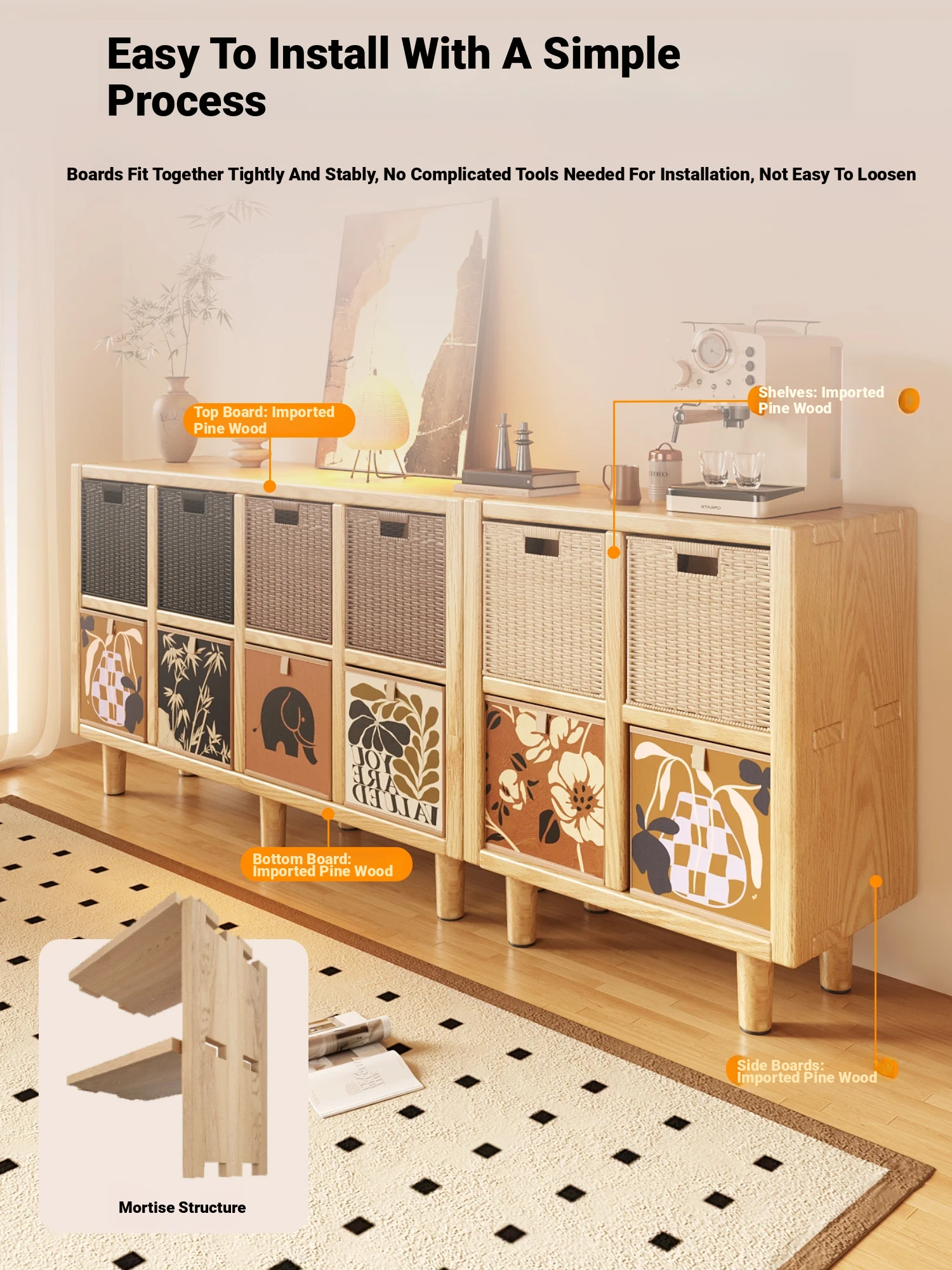 2 layers plus Cabinet legs⭐All solid wood 8 grid/47.24in*11.81in*27.56in/send anti-collision angle cover