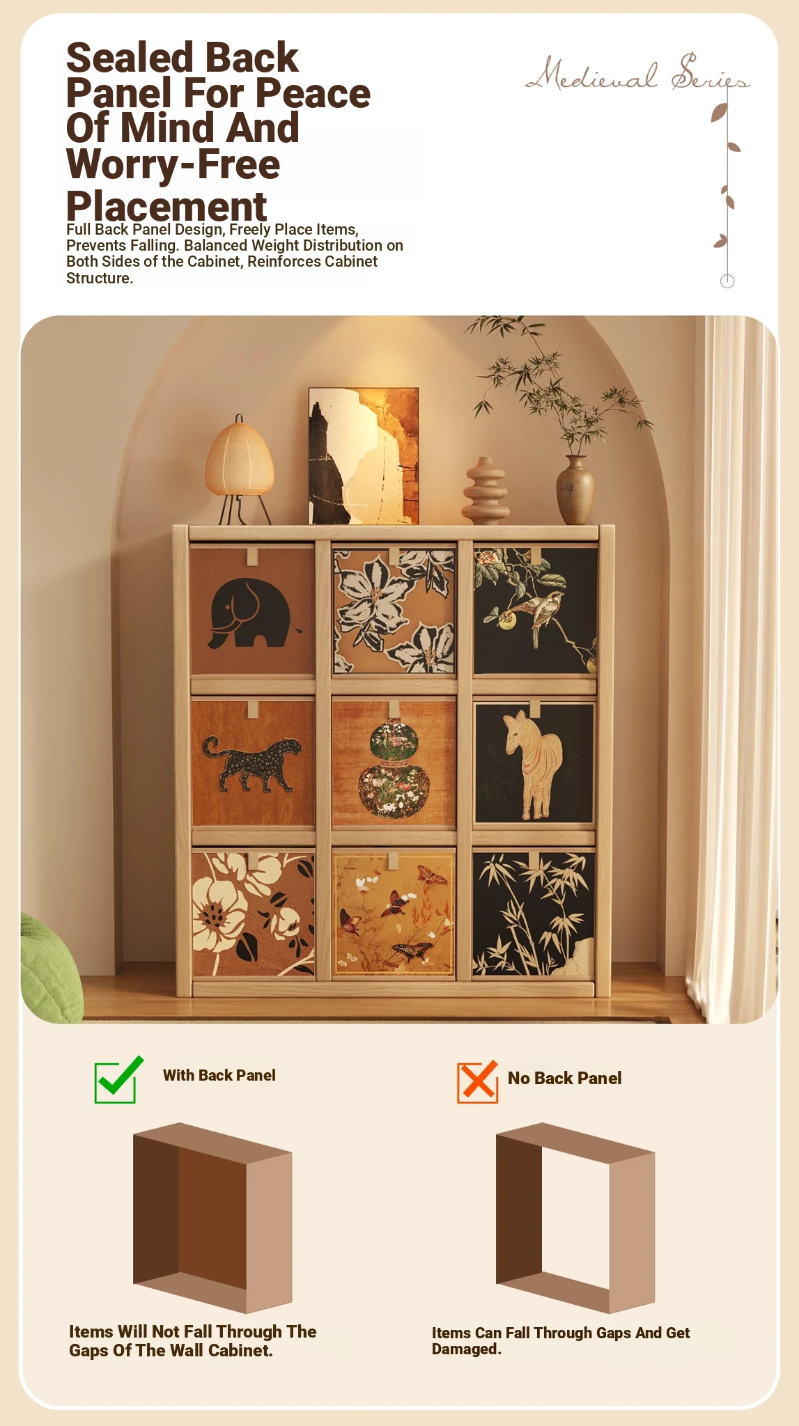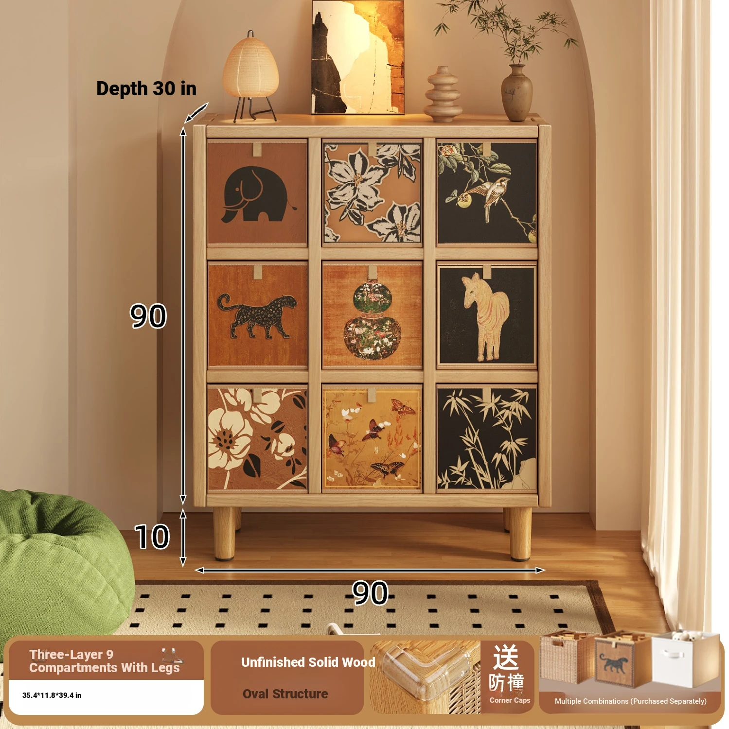 3 layers plus Cabinet legs⭐All solid wood 9 grid/35.43in*11.81in*39.37in/send anti-collision angle cover