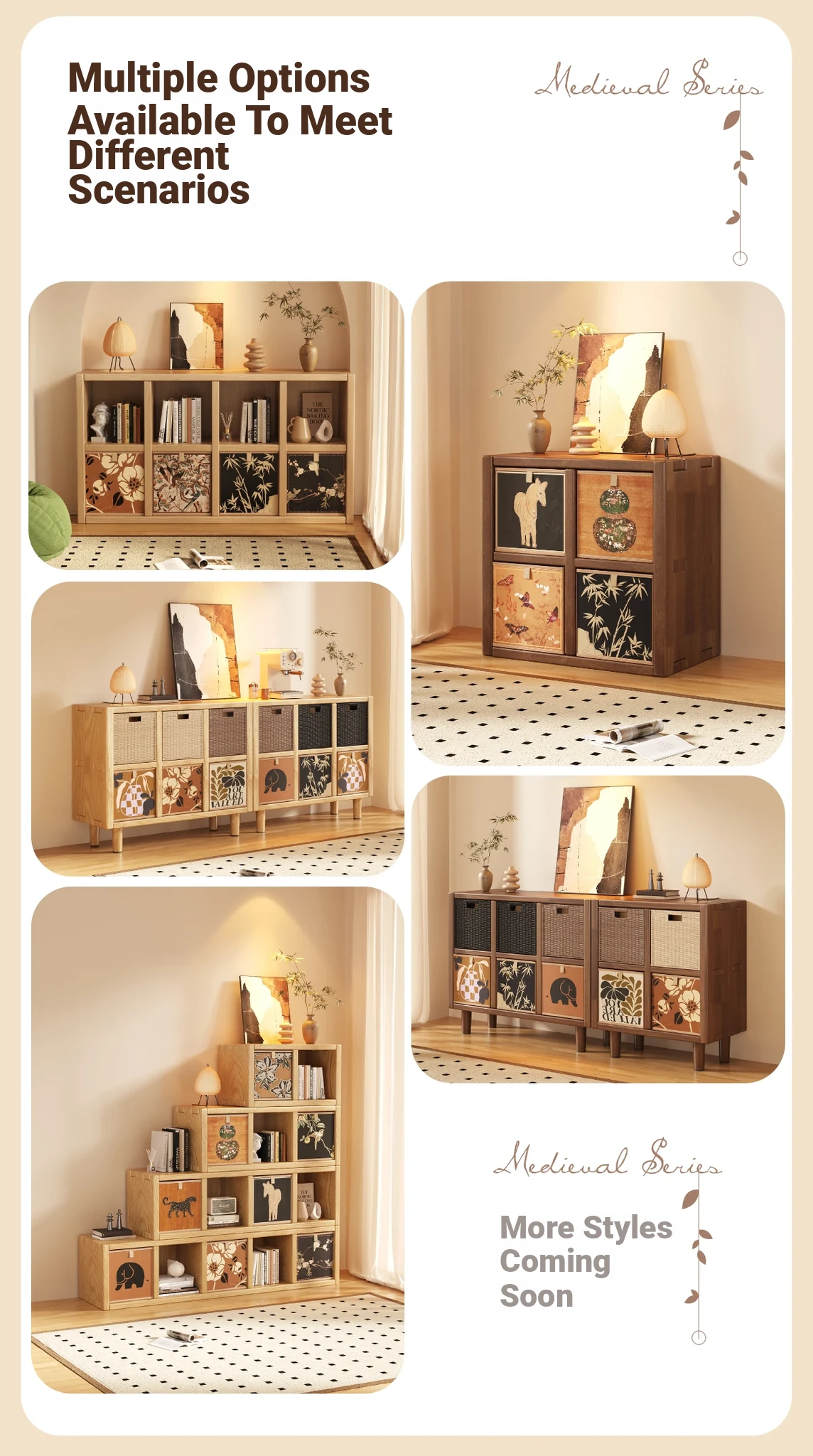 3 layers plus Cabinet legs⭐All solid wood 15 grid/59.06in*11.81in*39.37in/send anti-collision corner cover
