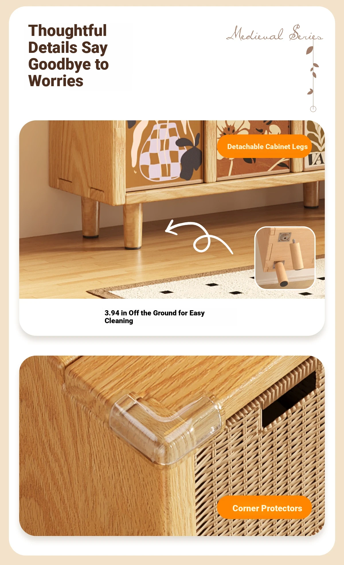 Benefits⭐All solid wood [2 layers plus Cabinet legs 6] 35.43in*11.81in*27.56in/anti-collision corner cover