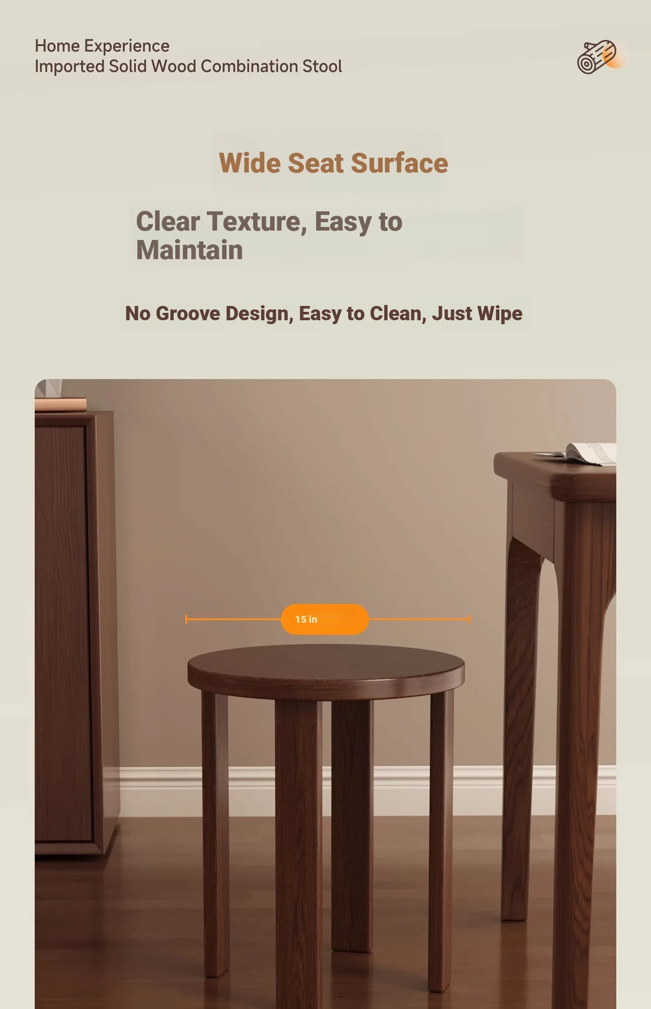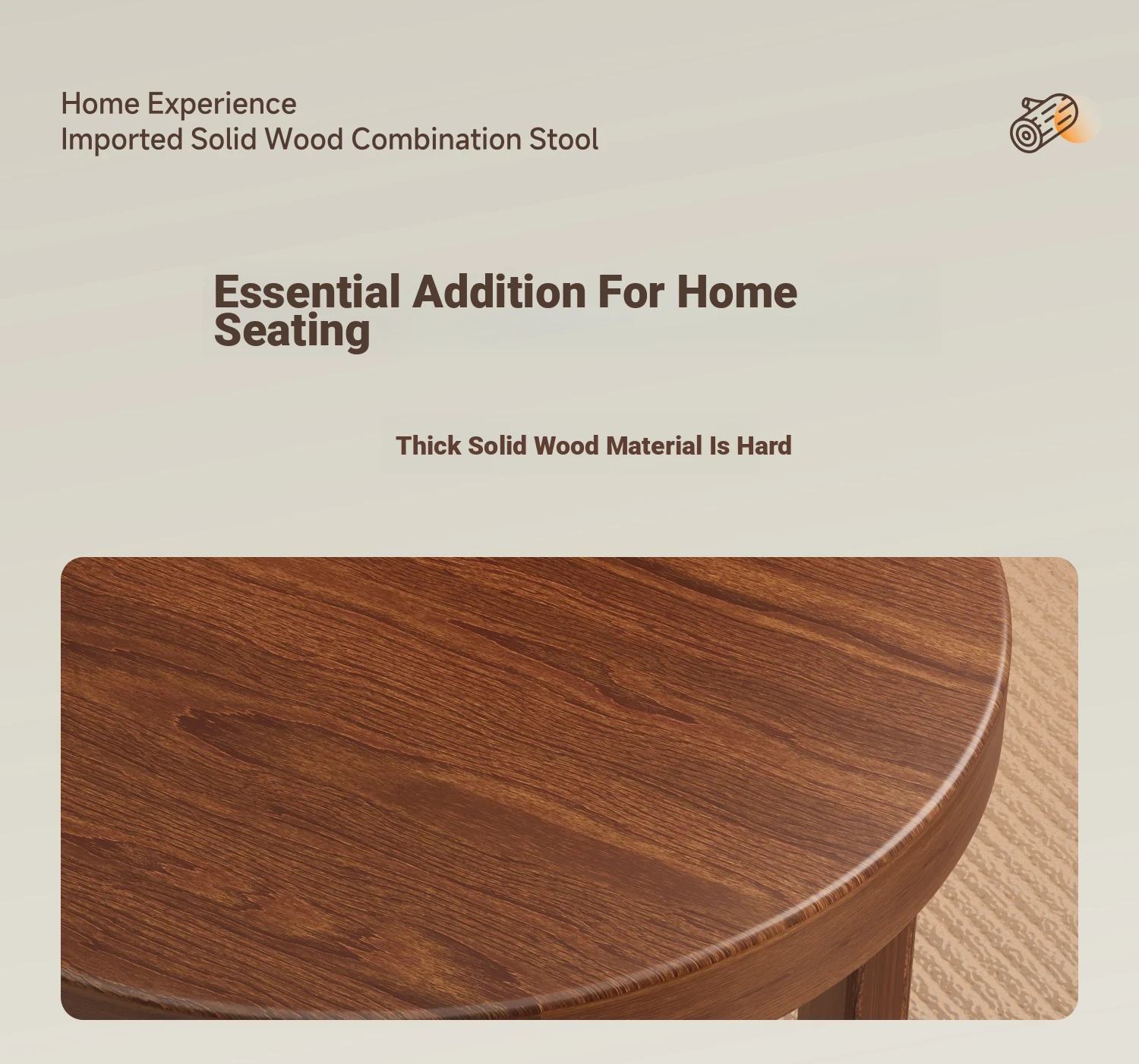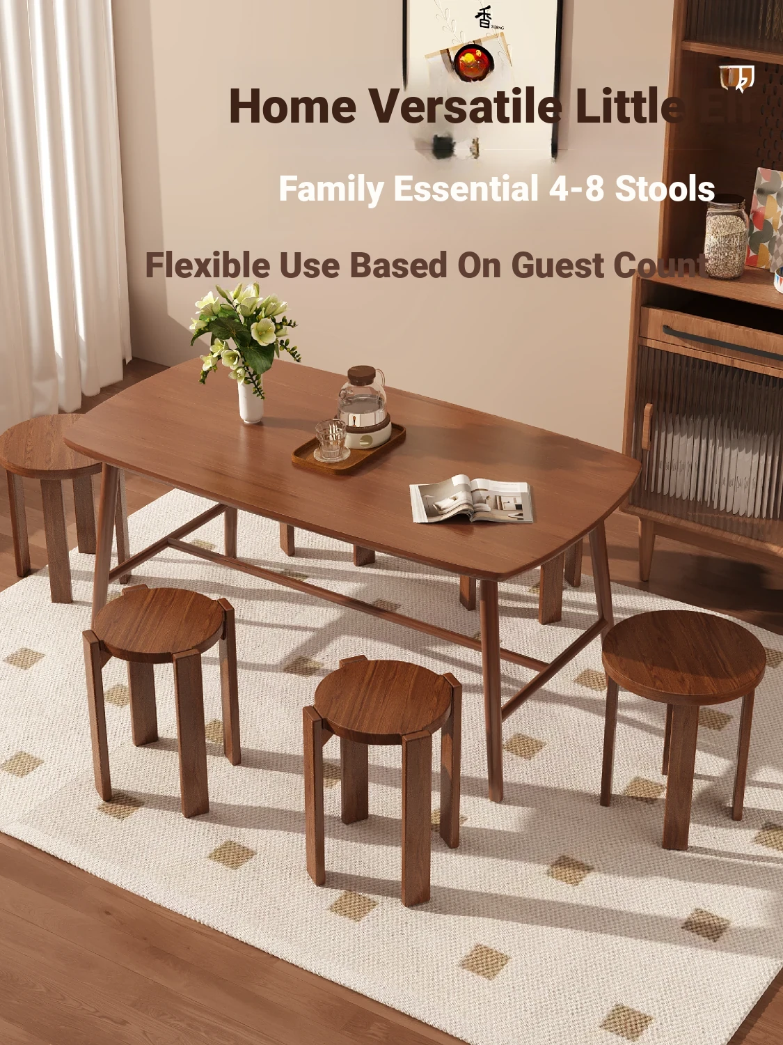 Solid Wood Round Stool - New Chinese Style Stackable Dining Stool, Elegant and Luxurious Design for Home Use, Perfect as Extra Seating for Guests in Dining Rooms