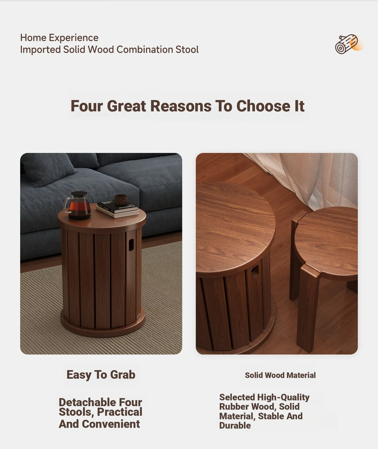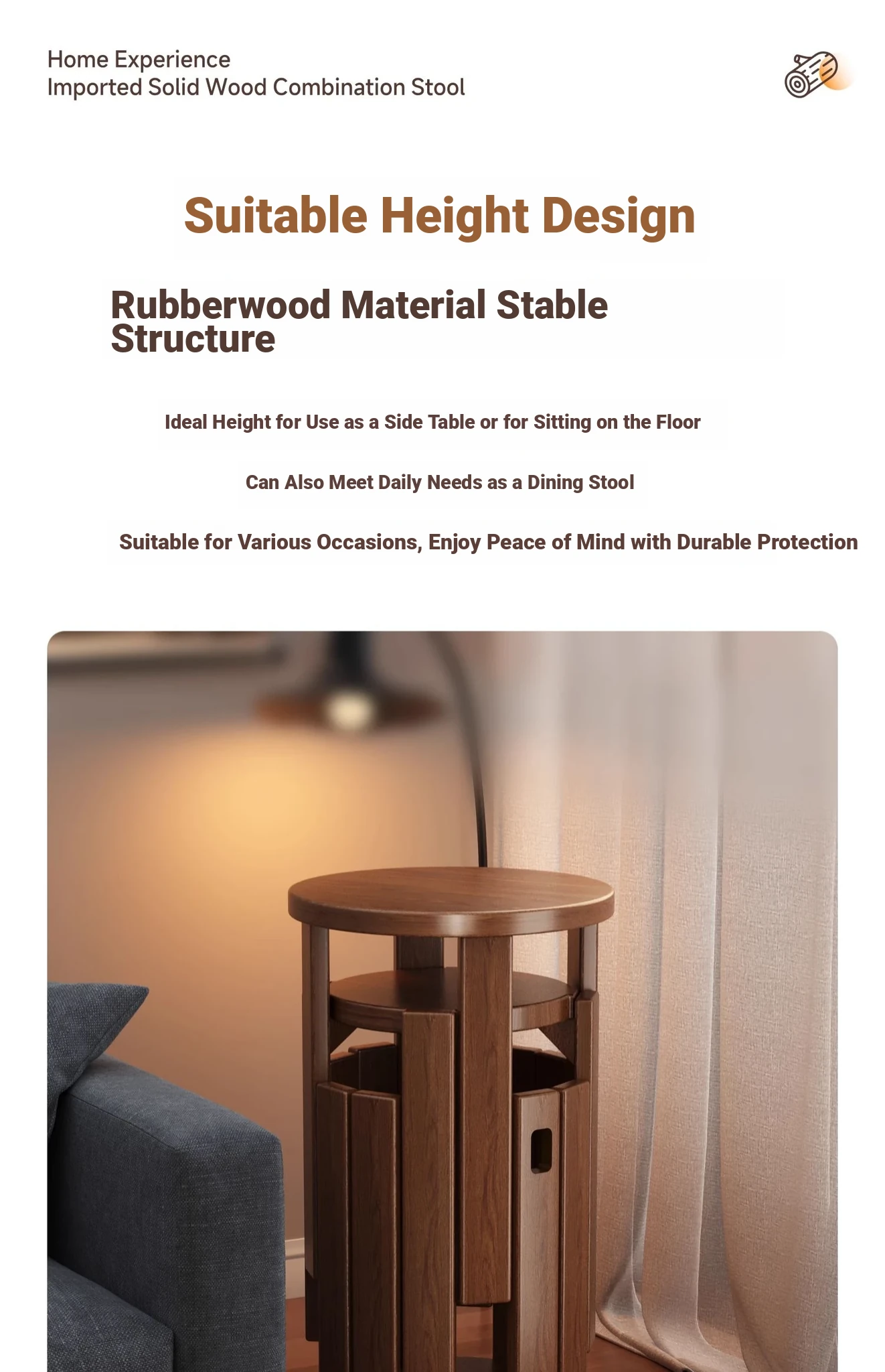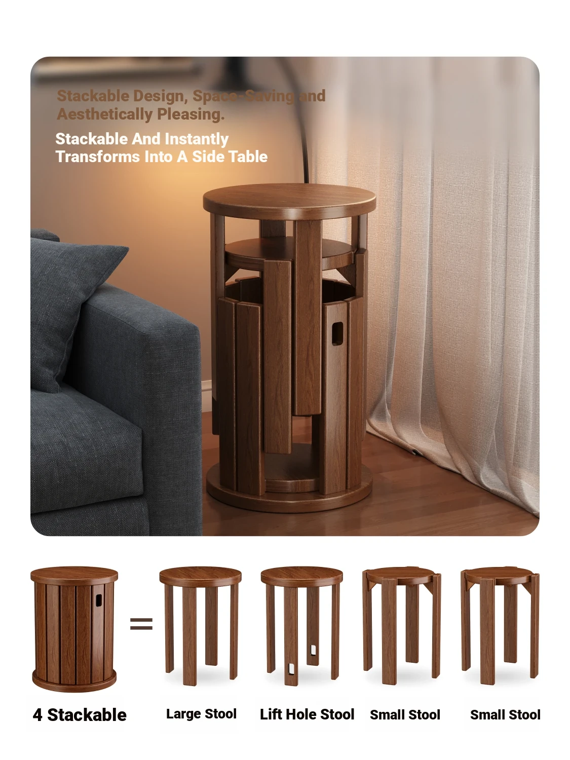 Solid Wood Round Stool - New Chinese Style Stackable Dining Stool, Elegant and Luxurious Design for Home Use, Perfect as Extra Seating for Guests in Dining Rooms