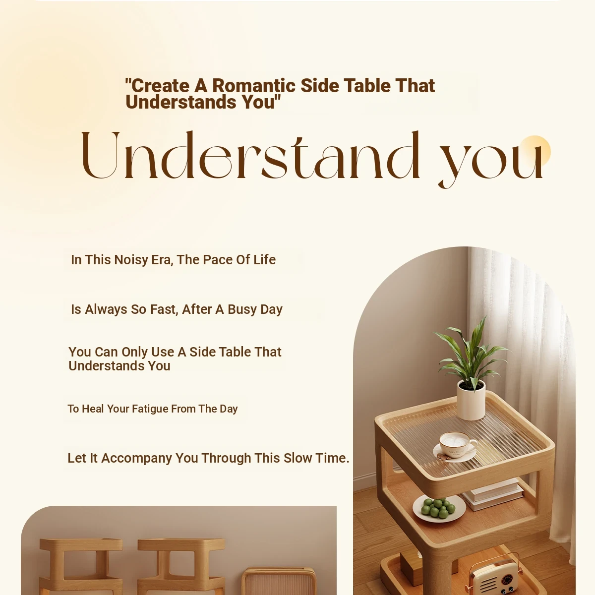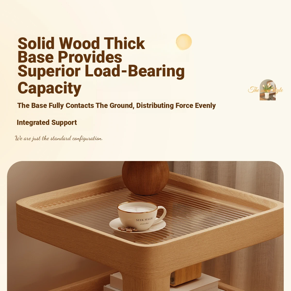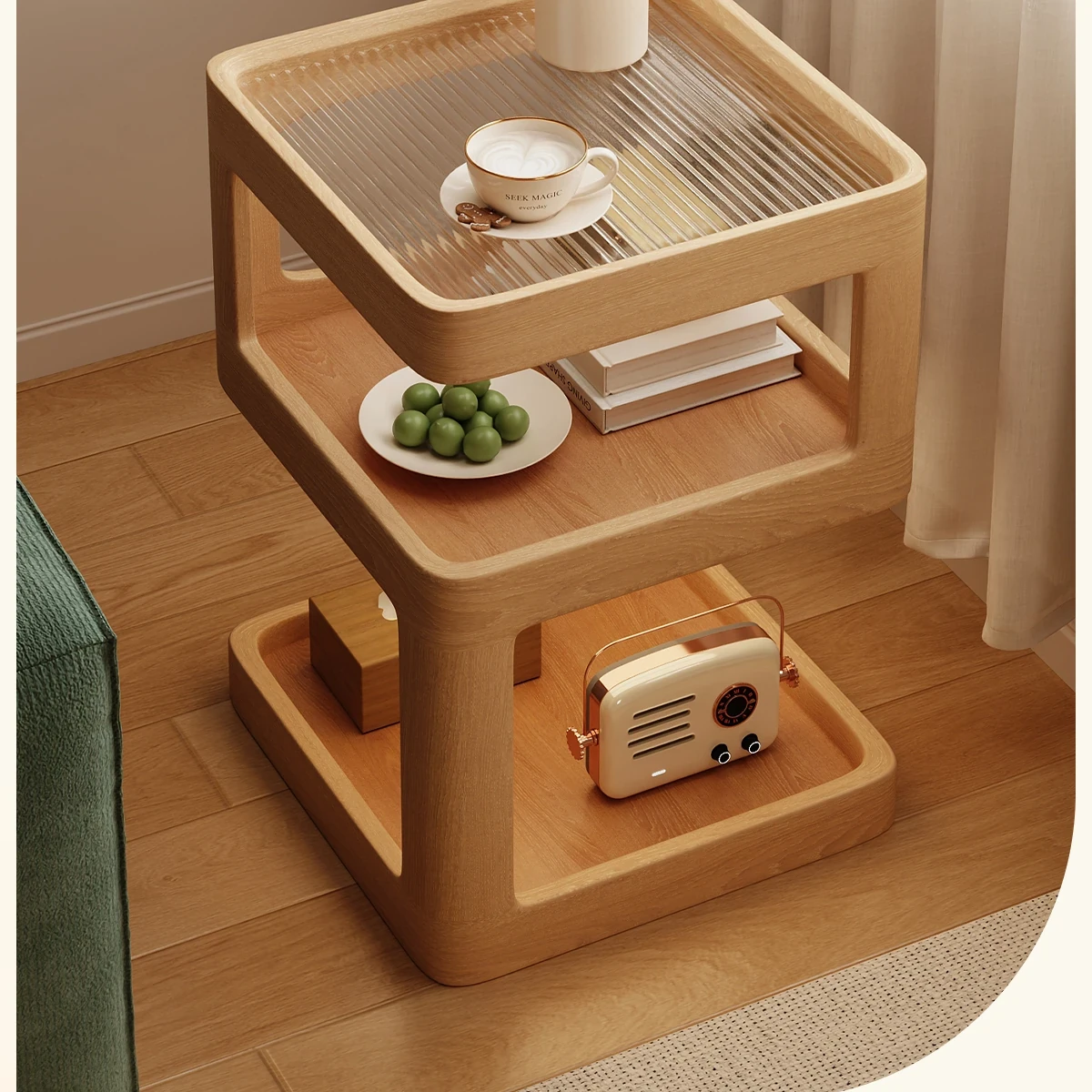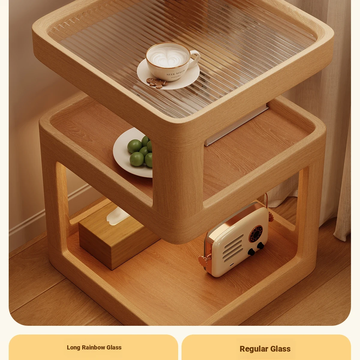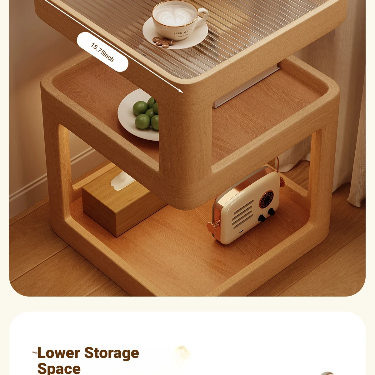 Solid Wood Side Table - Mobile Coffee Table for Living Room, Nightstand for Bedroom, Storage Rack, Stylish and Functional End Table