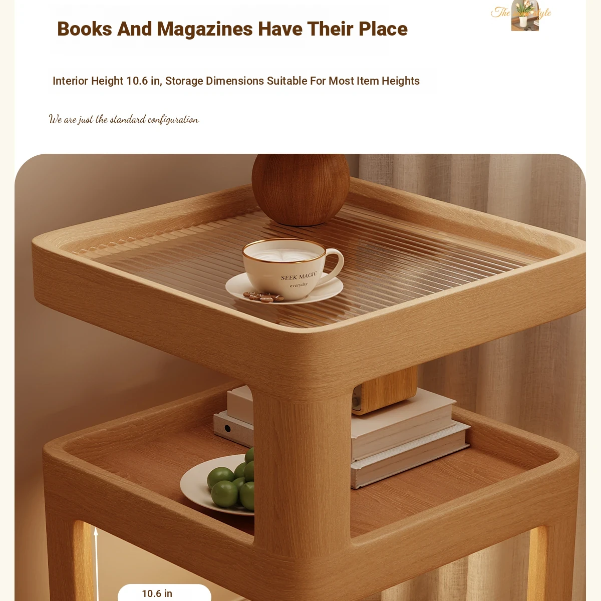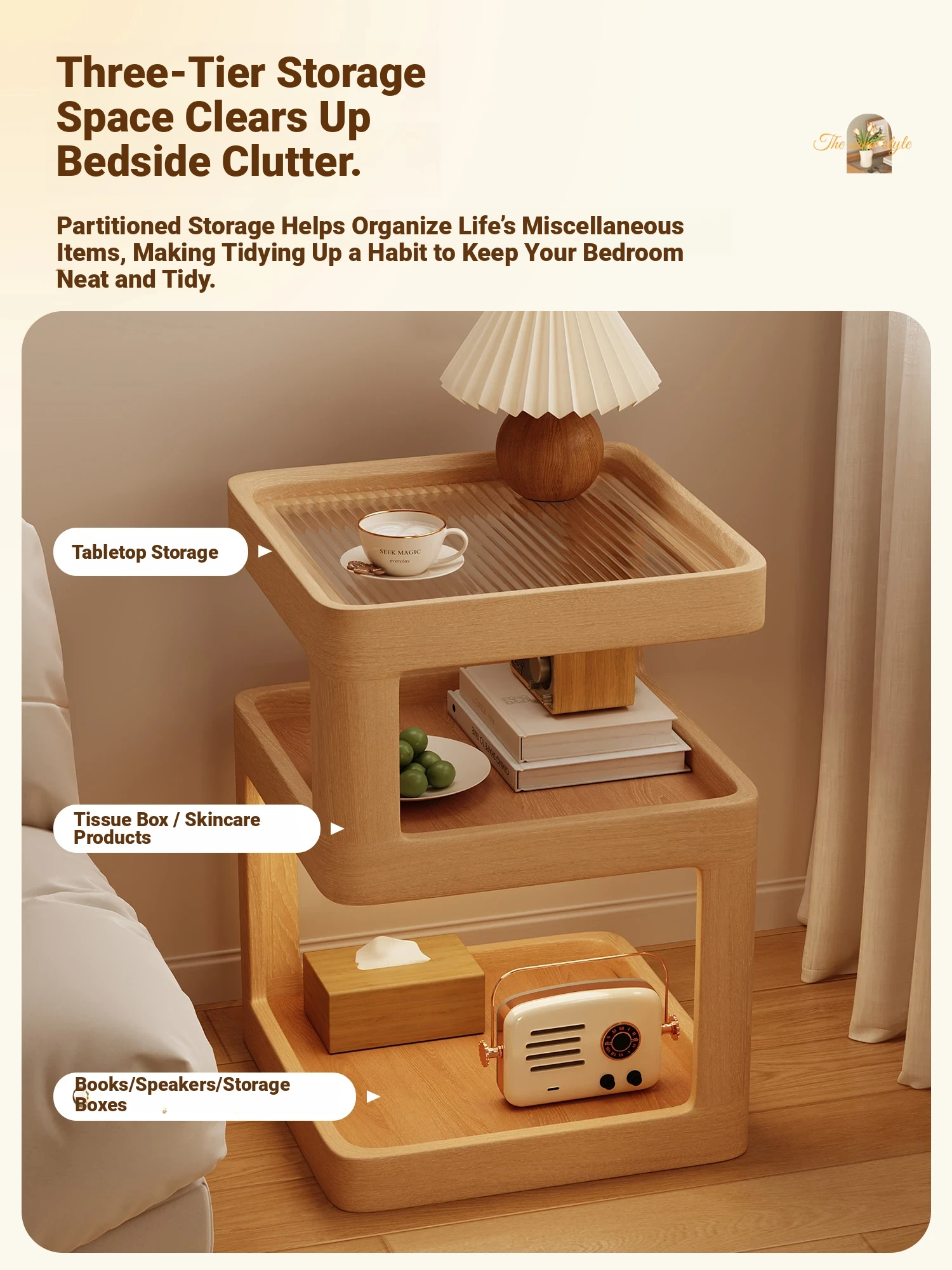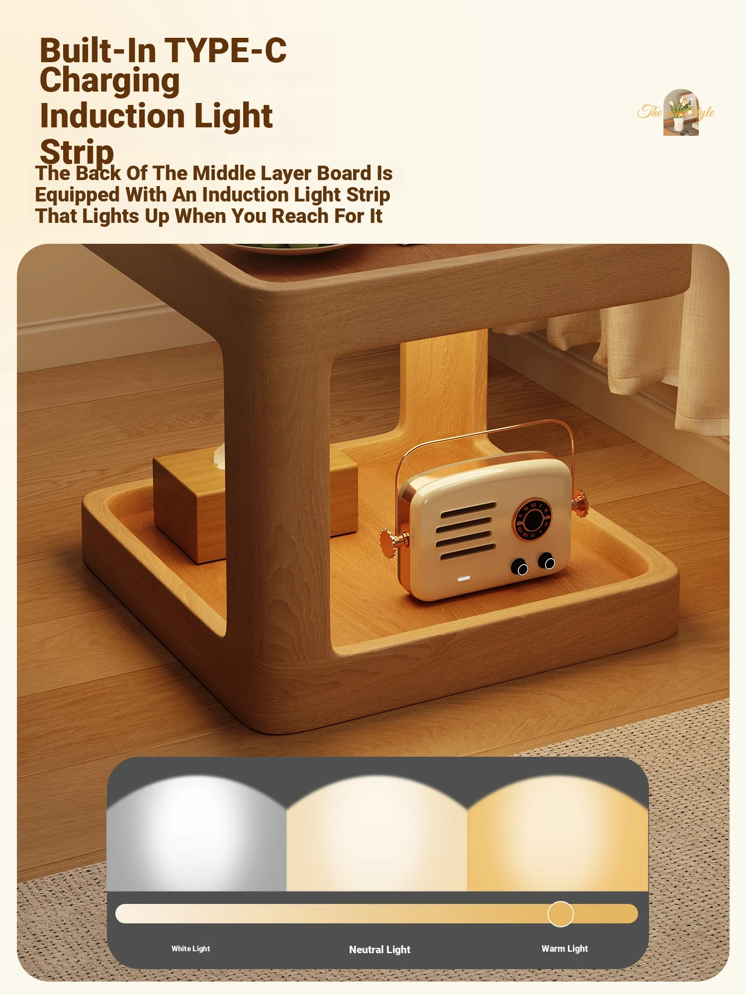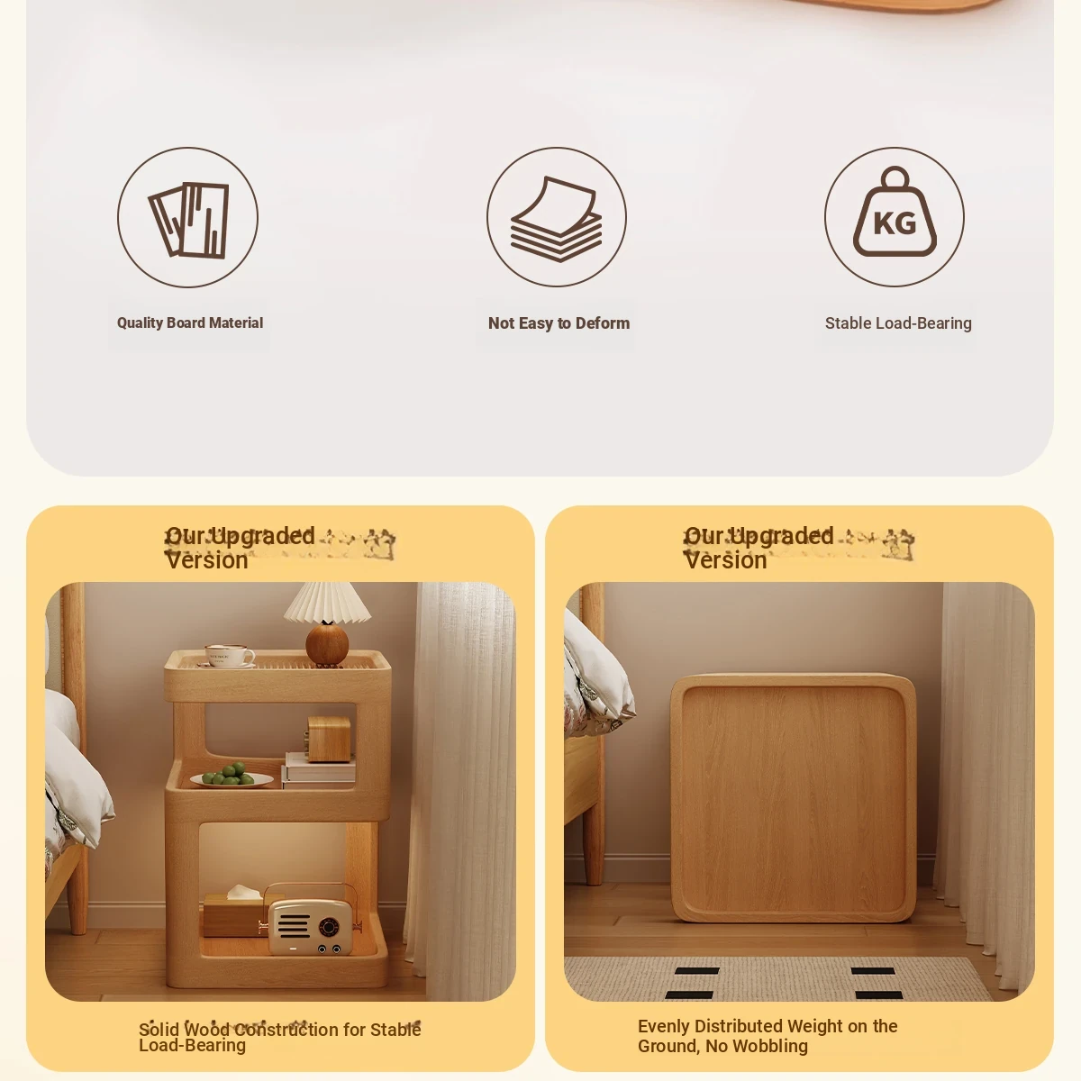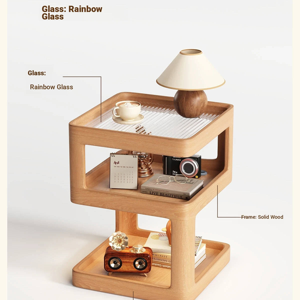 Solid Wood Side Table - Mobile Coffee Table for Living Room, Nightstand for Bedroom, Storage Rack, Stylish and Functional End Table