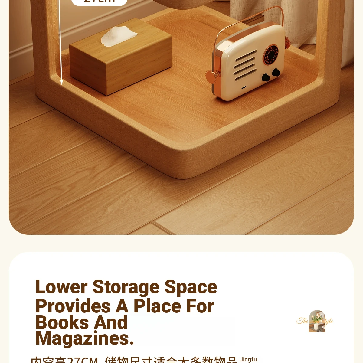(Rubber Wood Log Color) 13.78 in Side + Light Strip (13.78in*13.78in*21.26in)