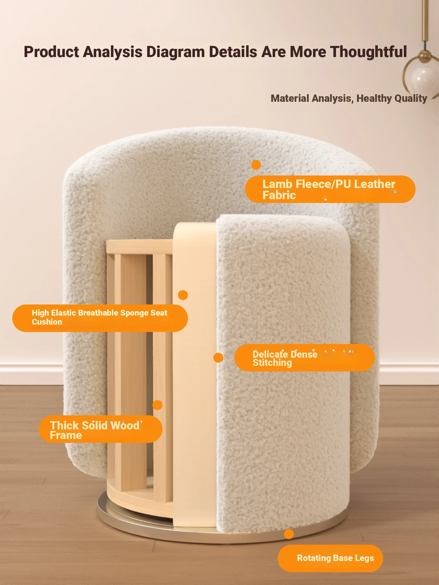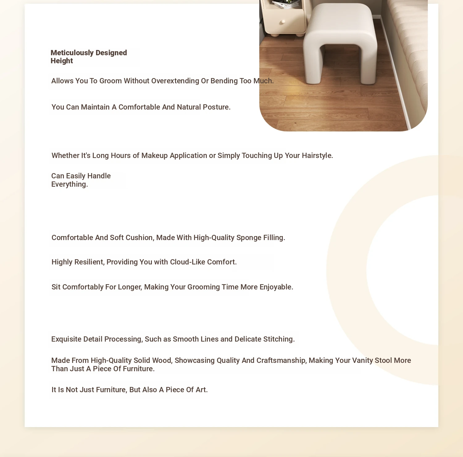 Stylish Compact Stool with Soft Cushion for Adults - Perfect for Living Room, Elegant Design, Space-Saving Round Bench for Tea Table or Extra Seating