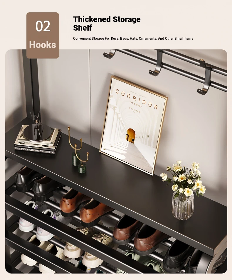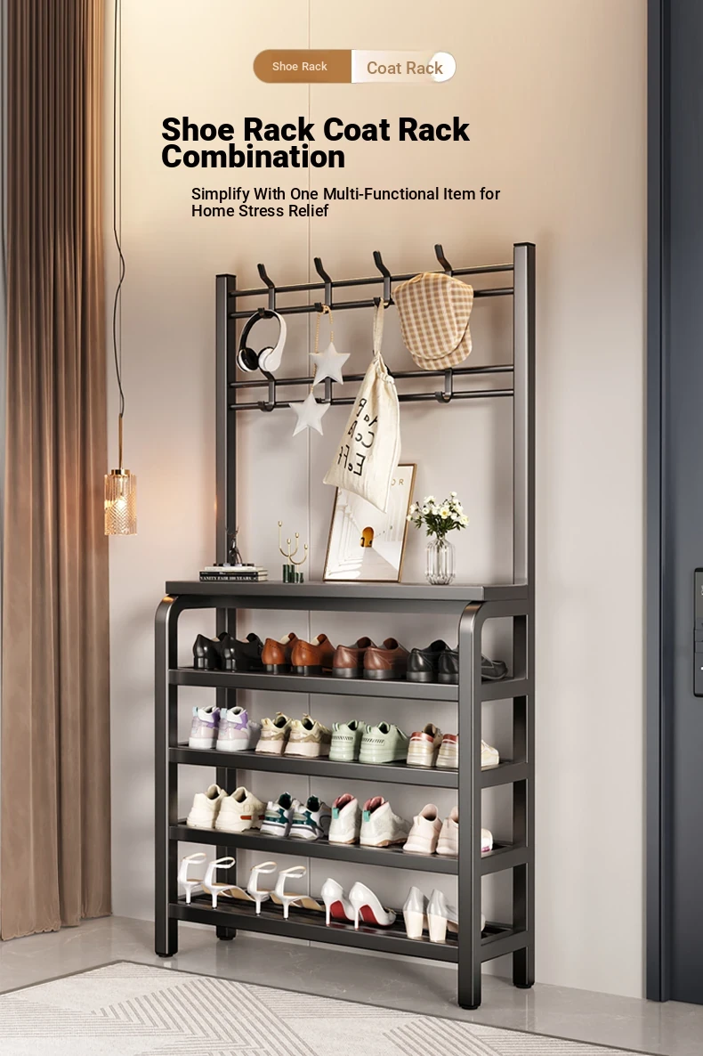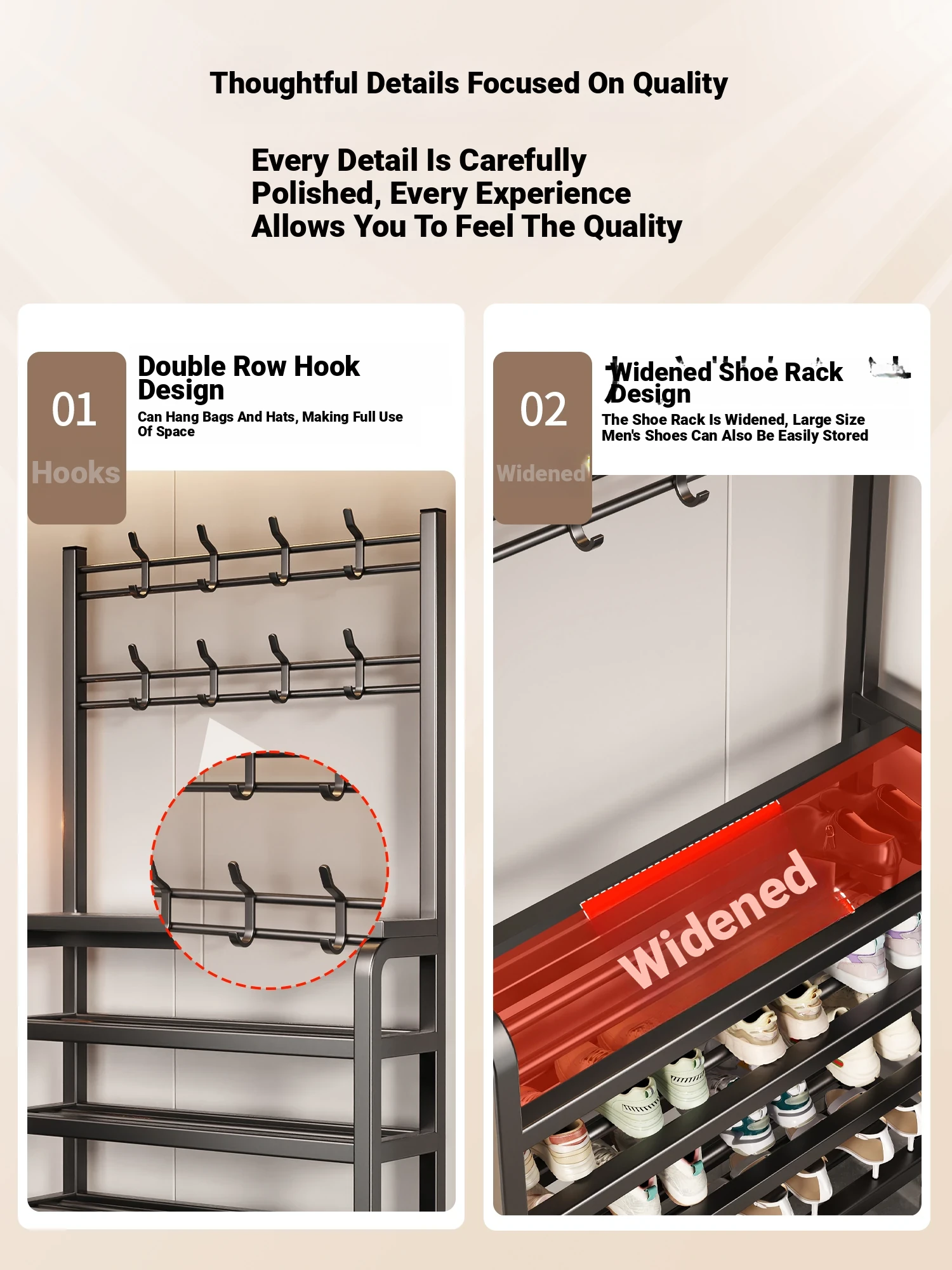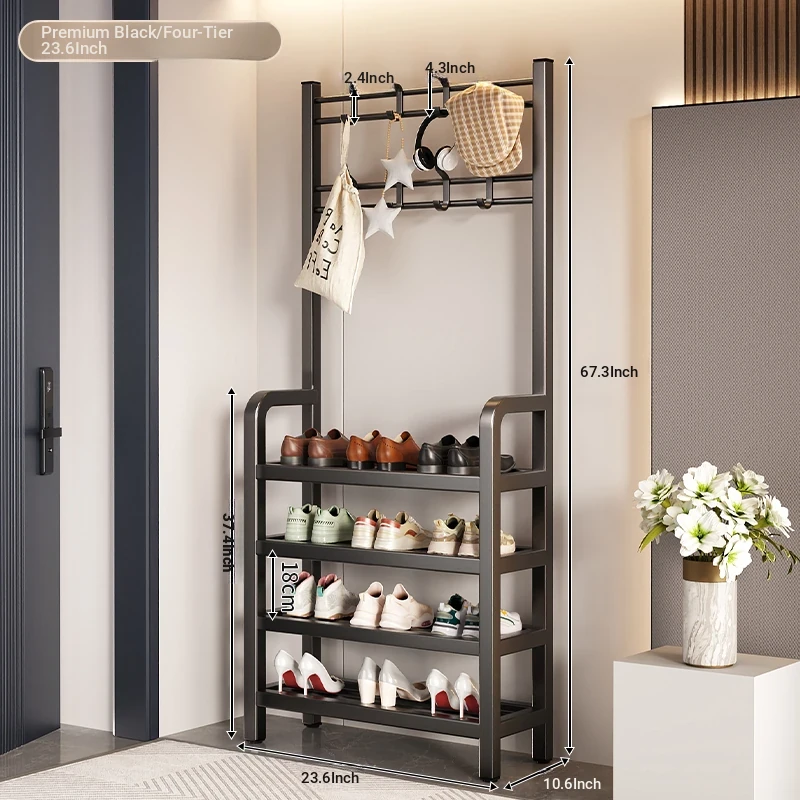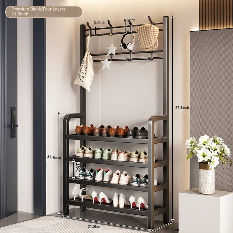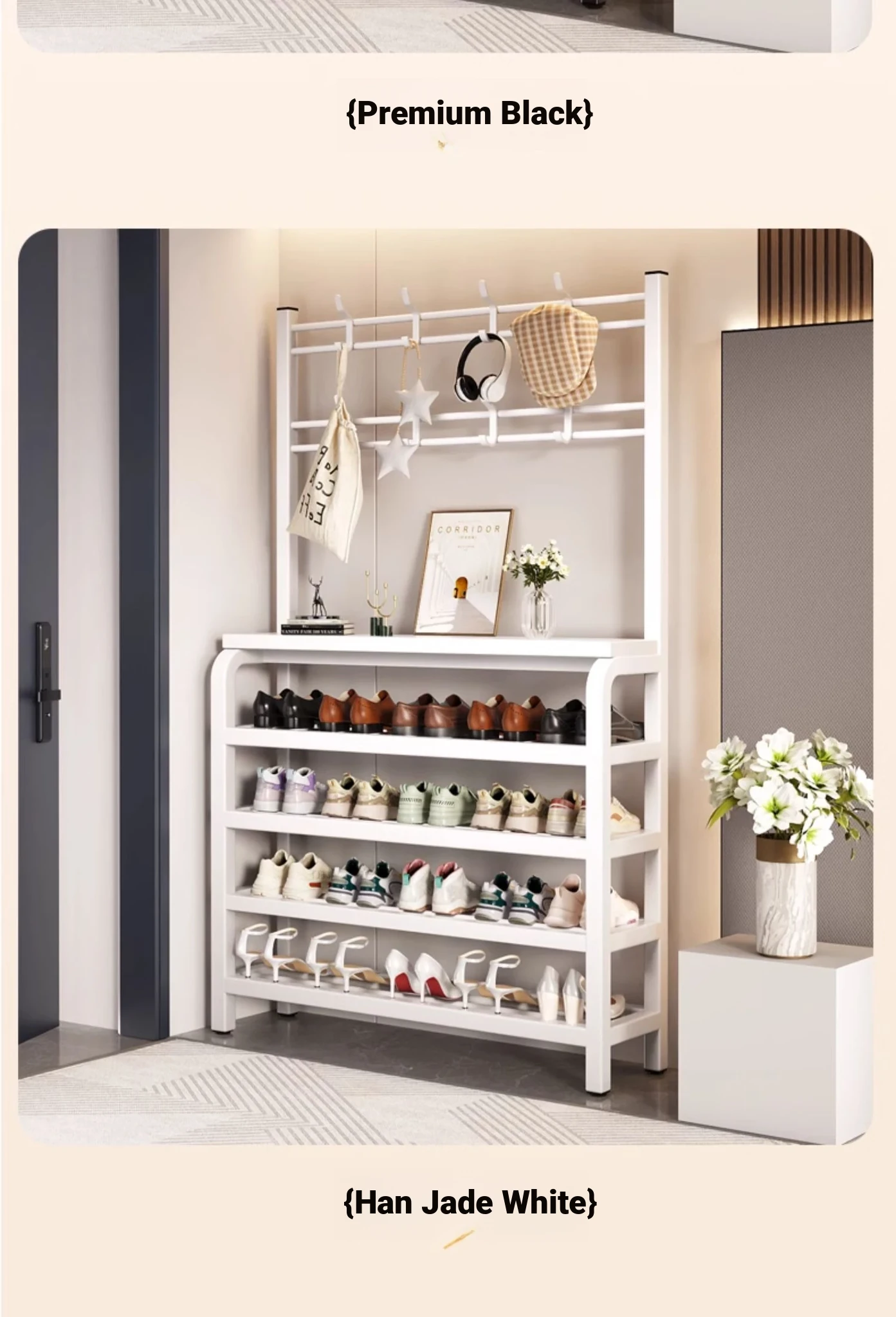 Stylish Entryway Shoe Rack and Coat Hanger Combo - New Model 204, Best Seller! Durable Multi-Layer Stainless Steel Shoe Storage Solution for Home, Space-Saving Design for Easy Organization.