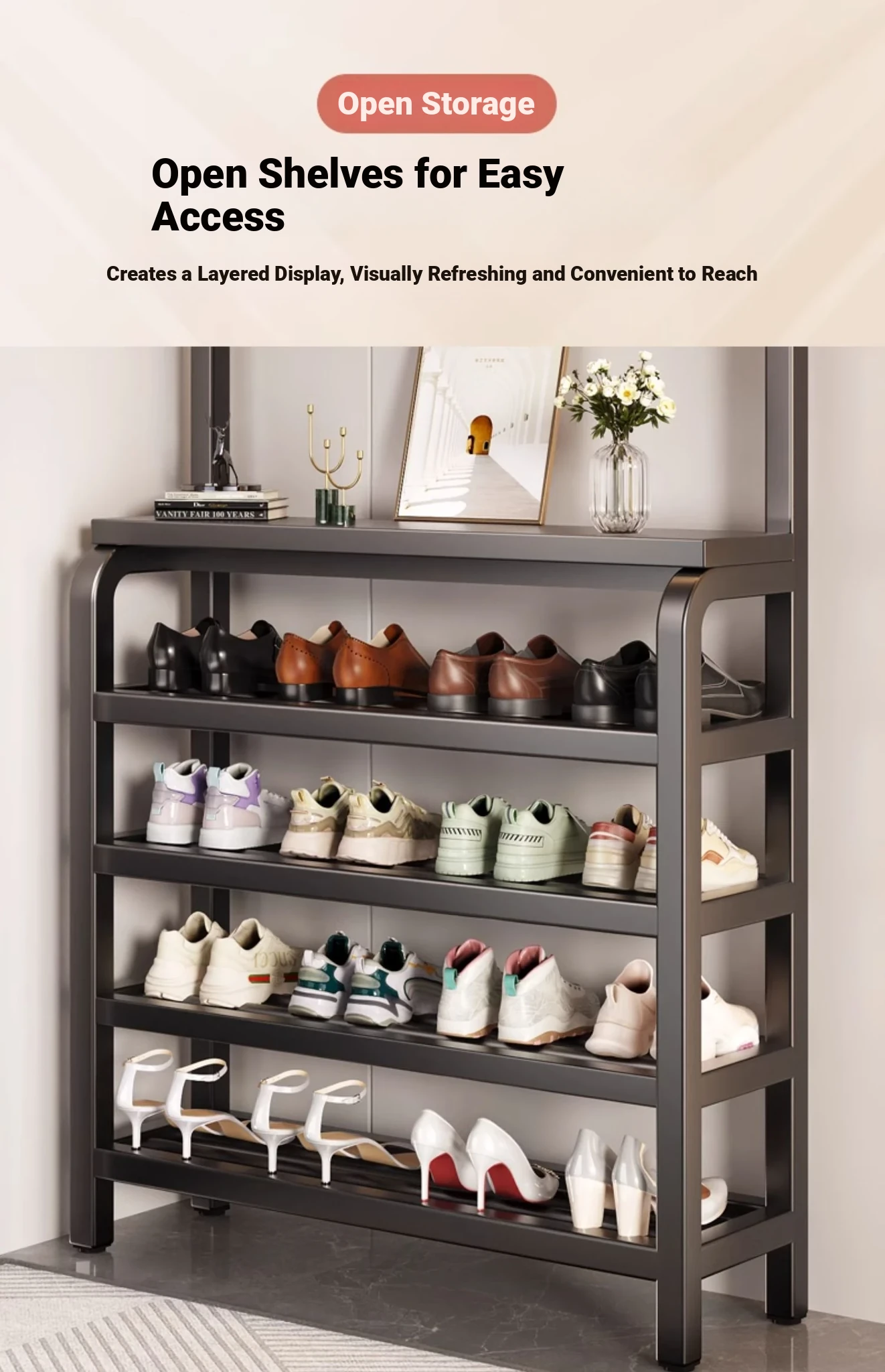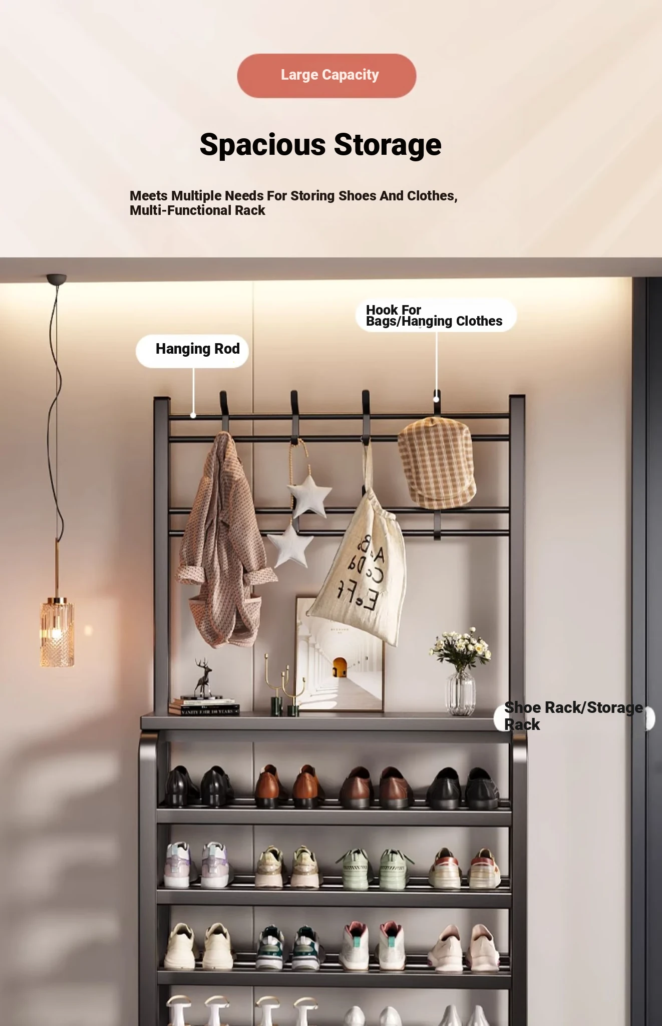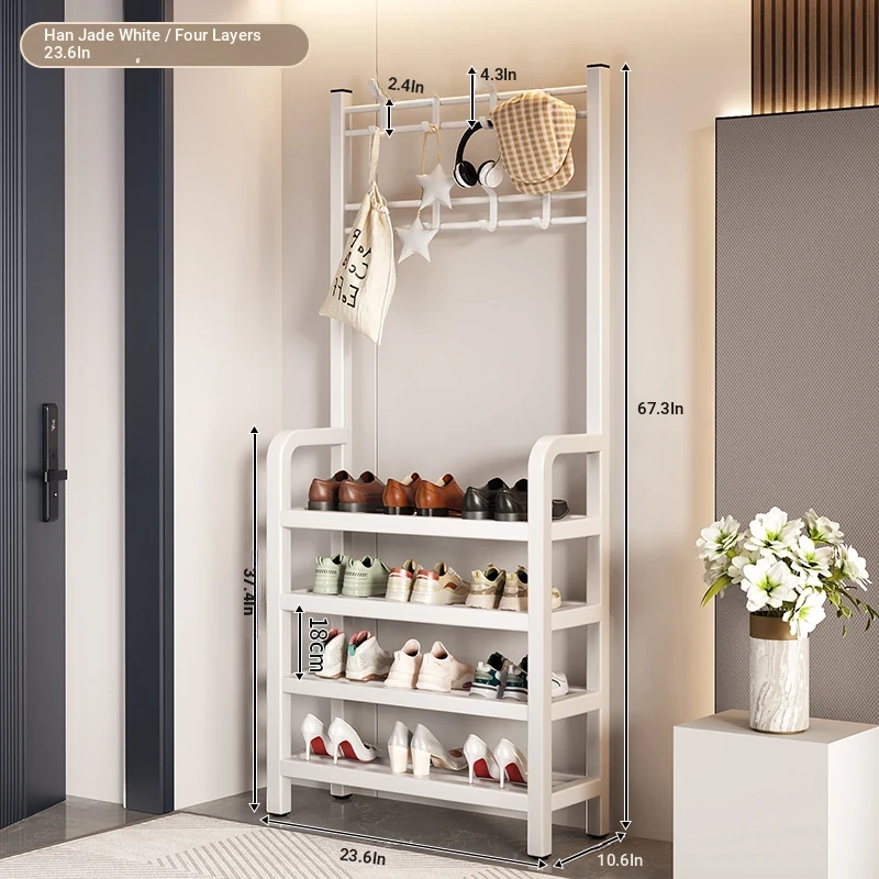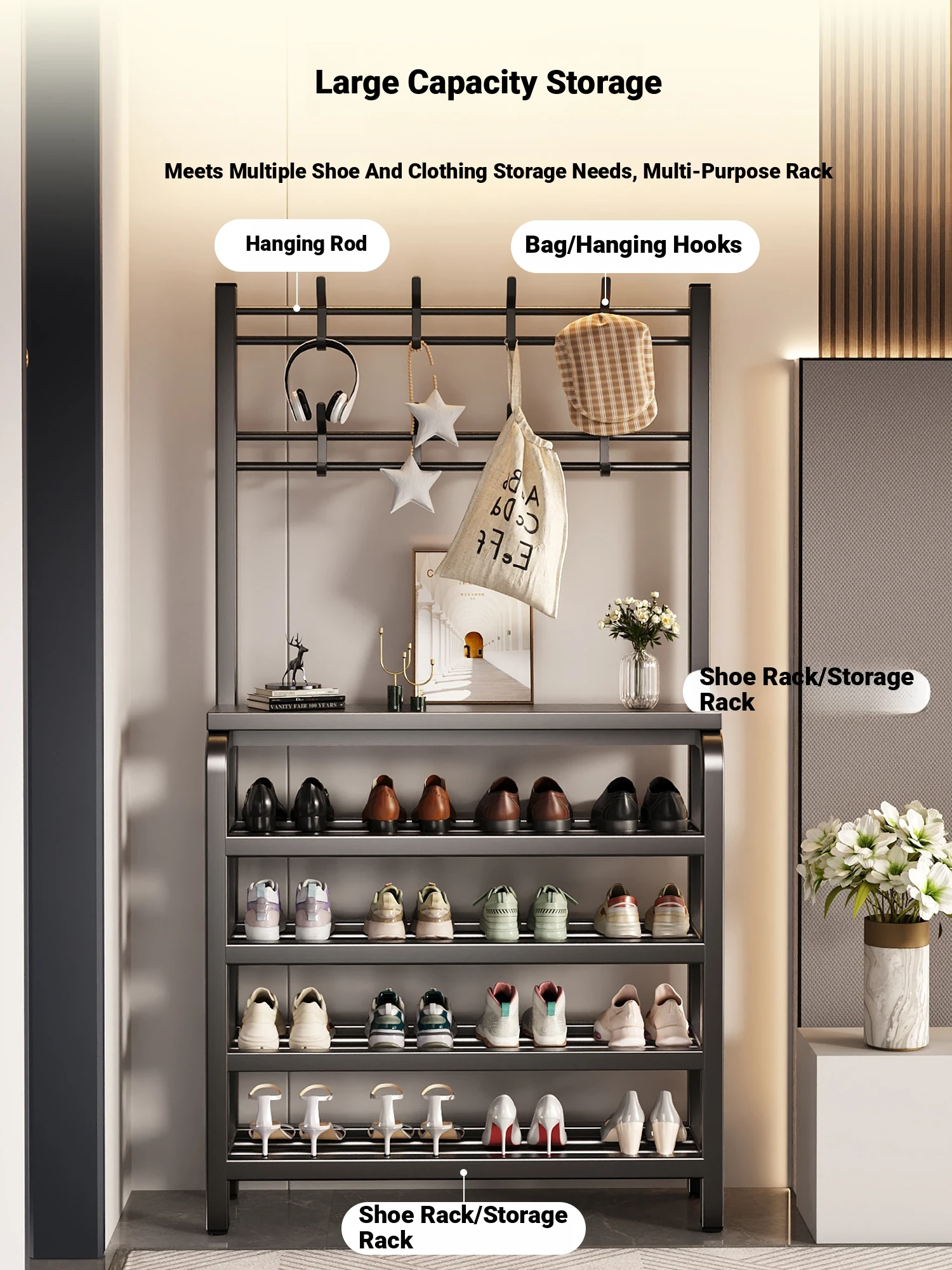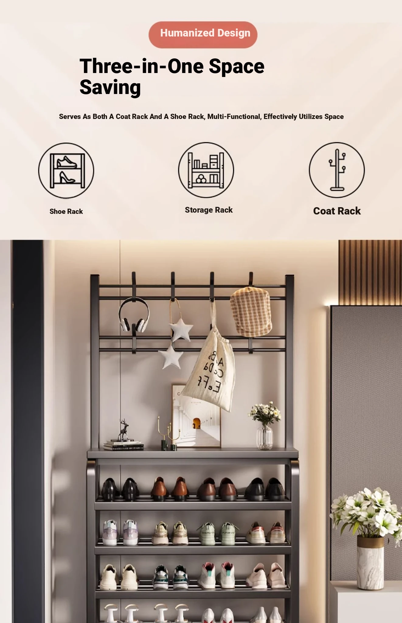 Stylish Entryway Shoe Rack and Coat Hanger Combo - New Model 204, Best Seller! Durable Multi-Layer Stainless Steel Shoe Storage Solution for Home, Space-Saving Design for Easy Organization.