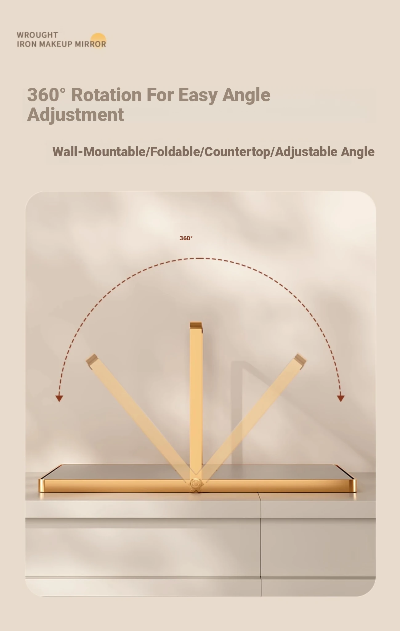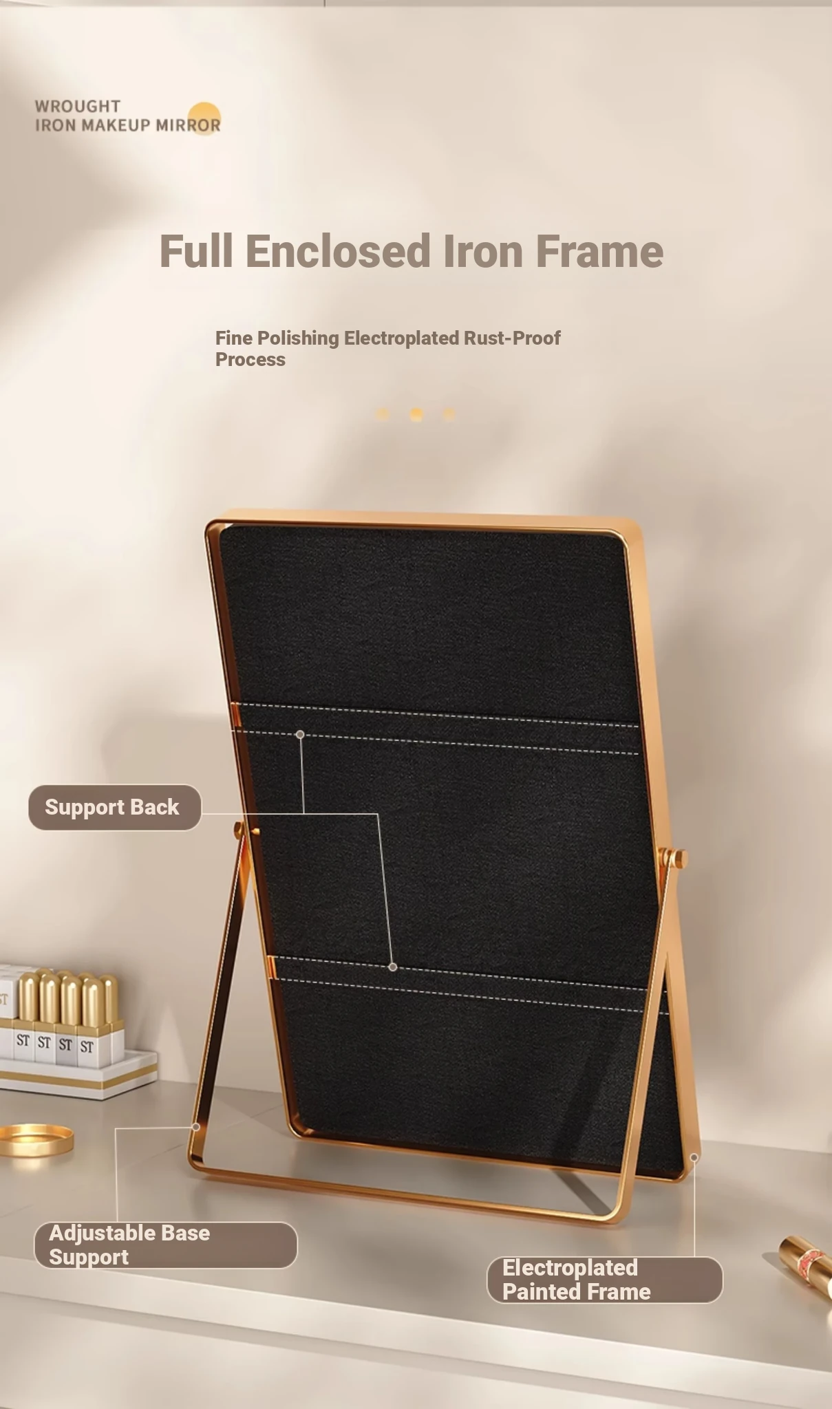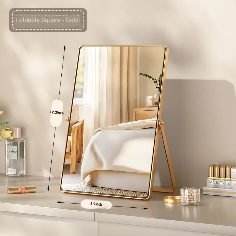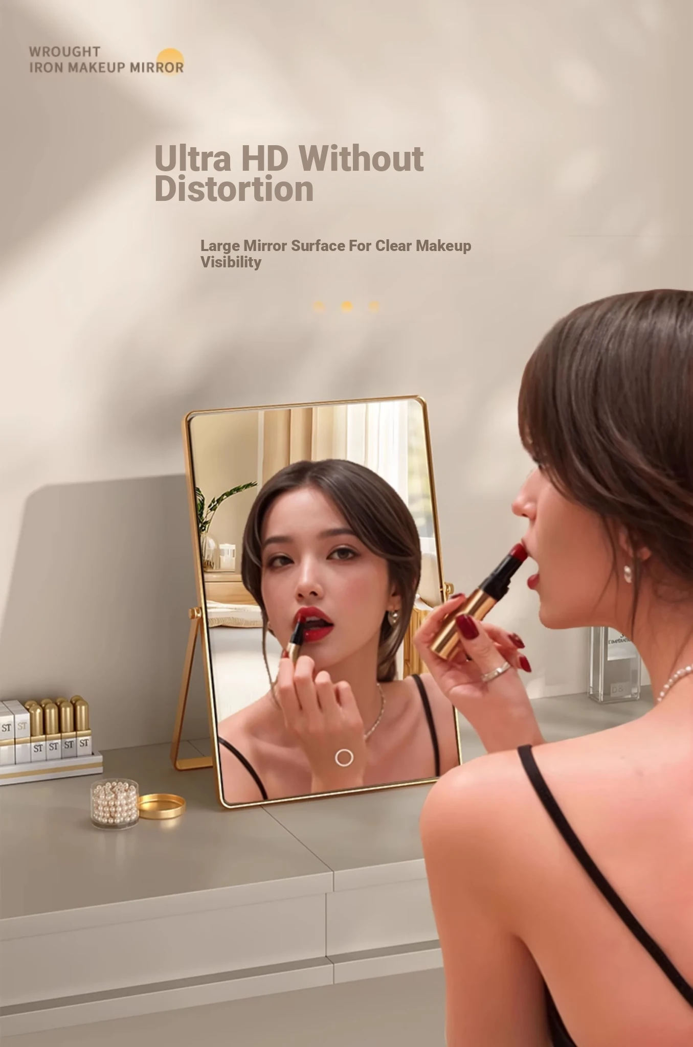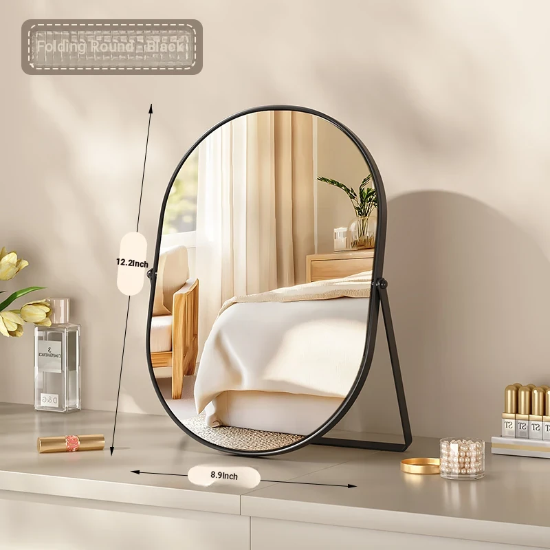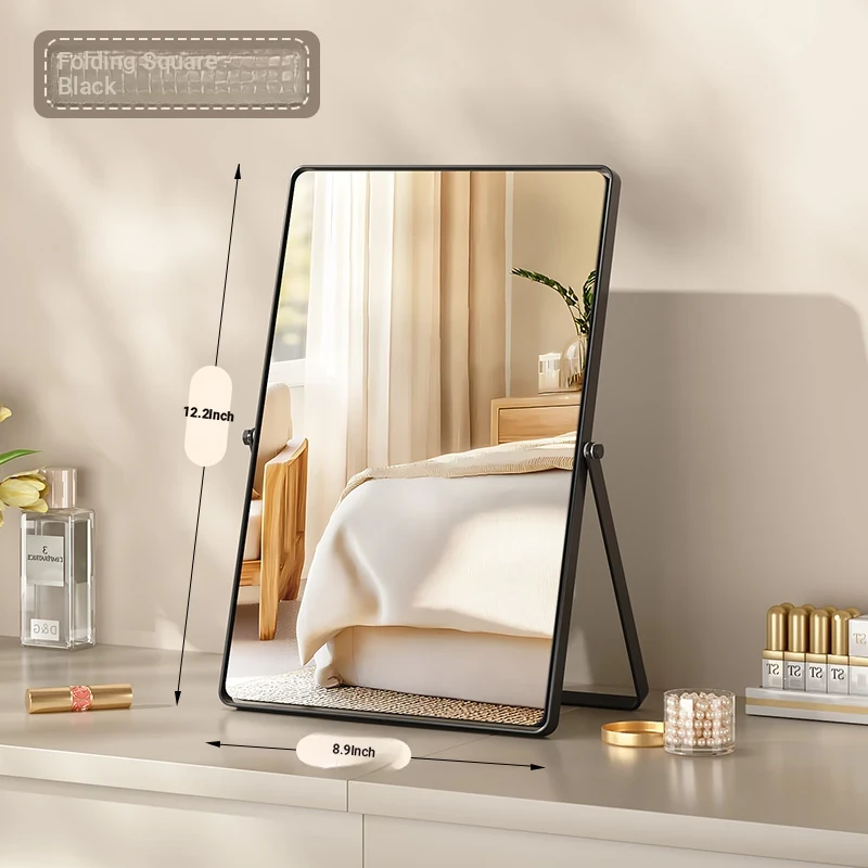 Stylish Folding Makeup Mirror for Students - Elegant Desktop Vanity Mirror for Home and Bedroom, Iron Frame Design, Perfect for Your Dressing Table