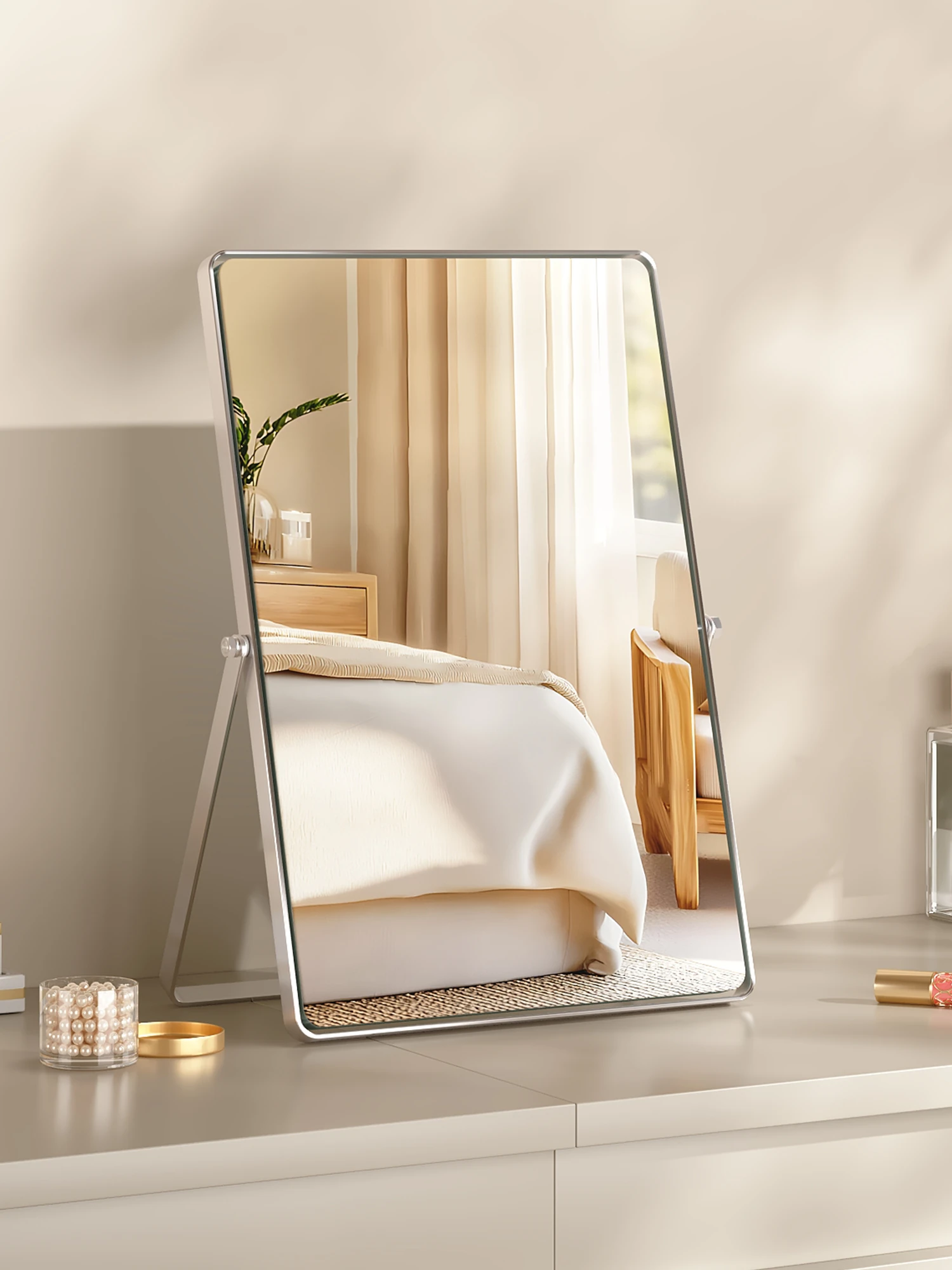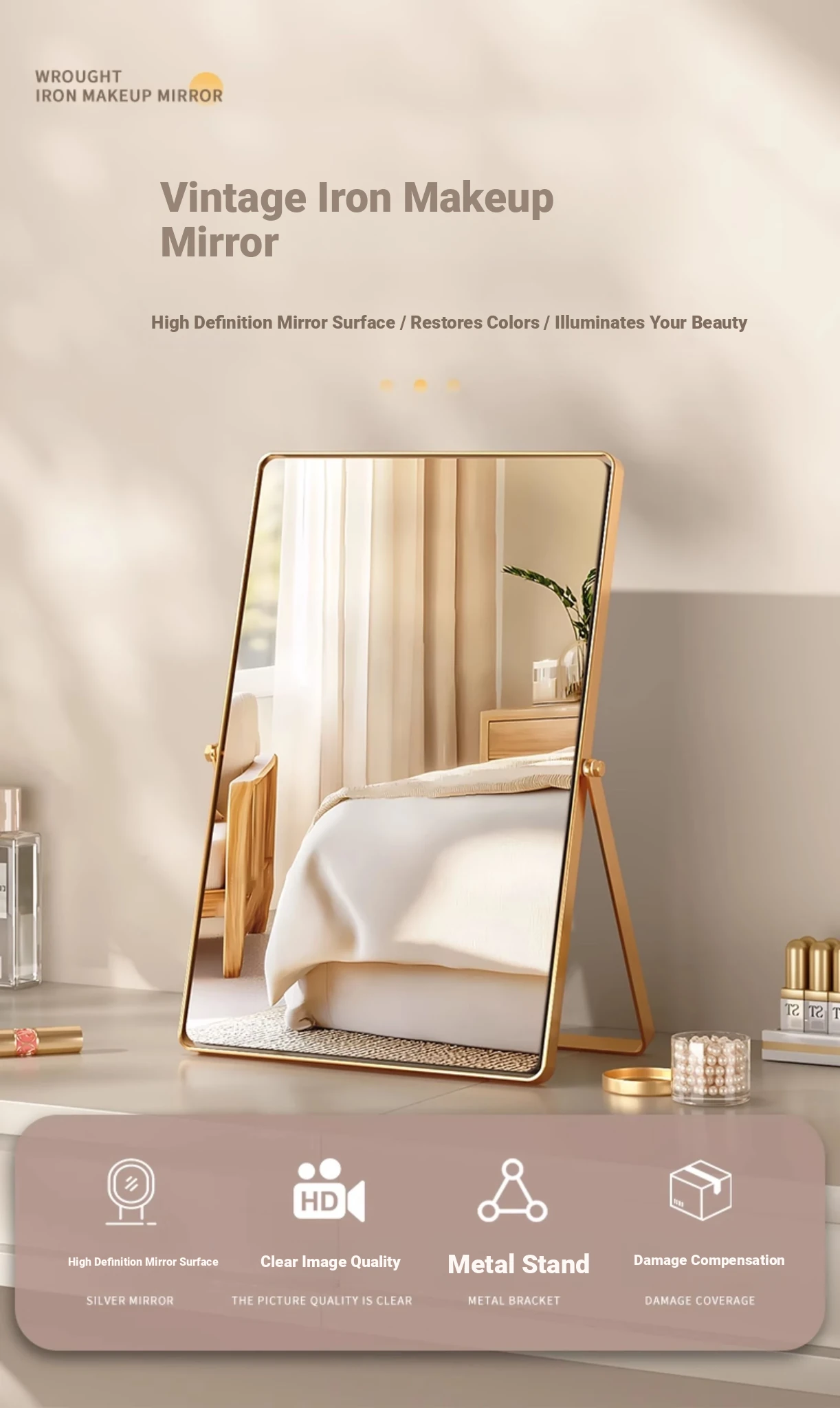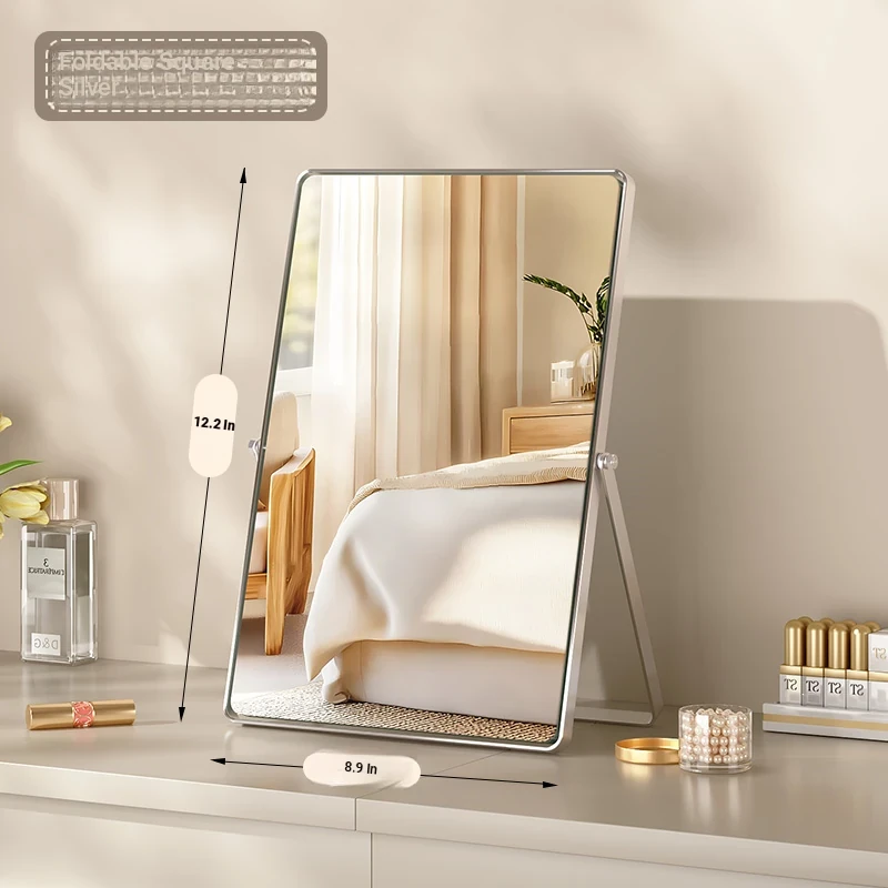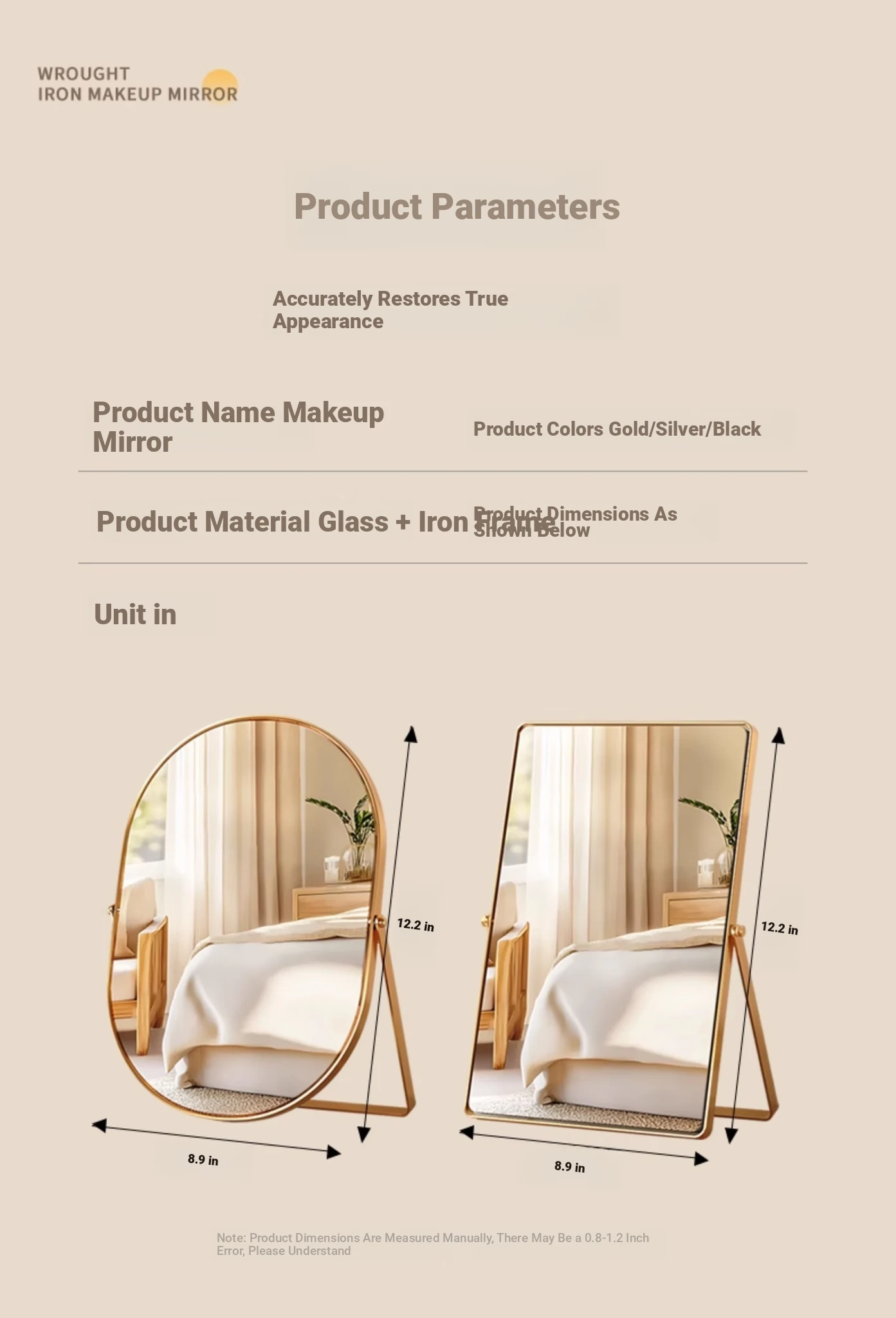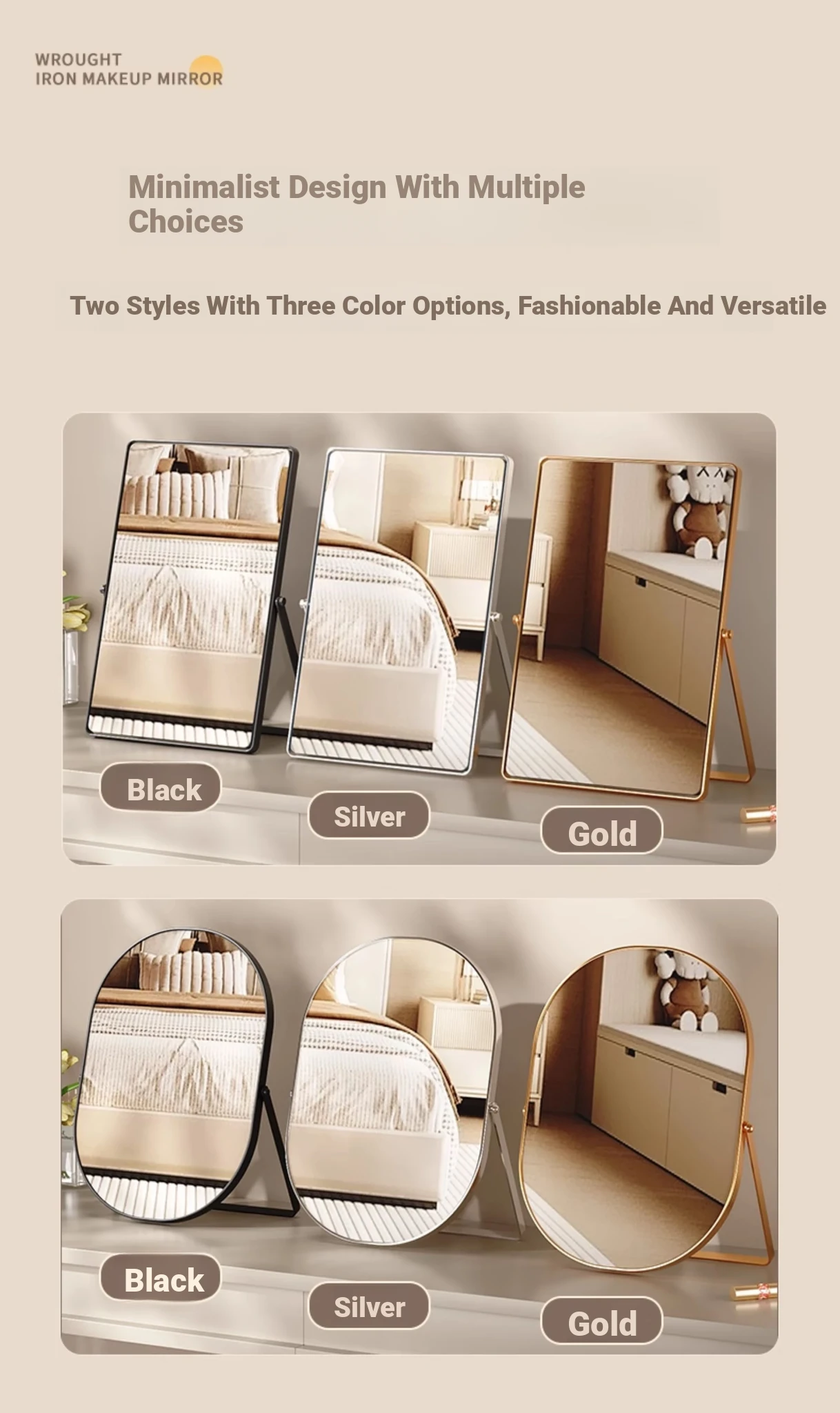 Stylish Folding Makeup Mirror for Students - Elegant Desktop Vanity Mirror for Home and Bedroom, Iron Frame Design, Perfect for Your Dressing Table